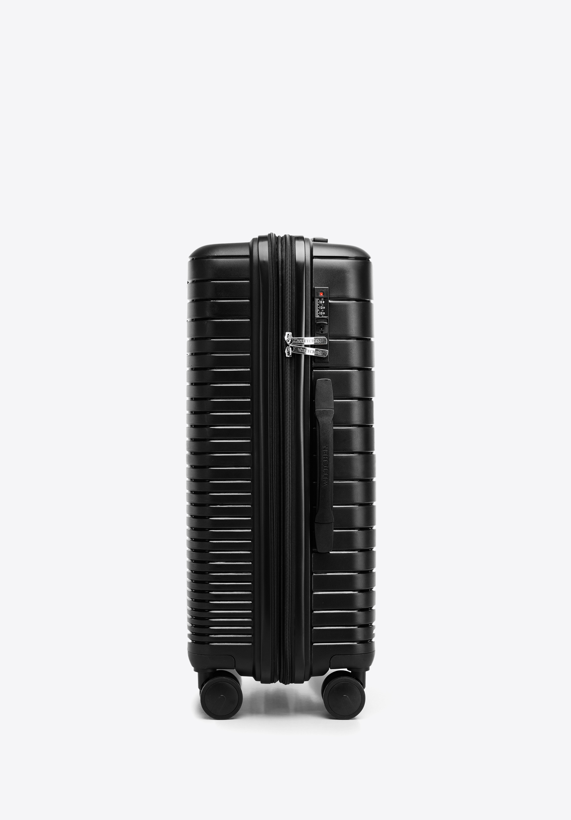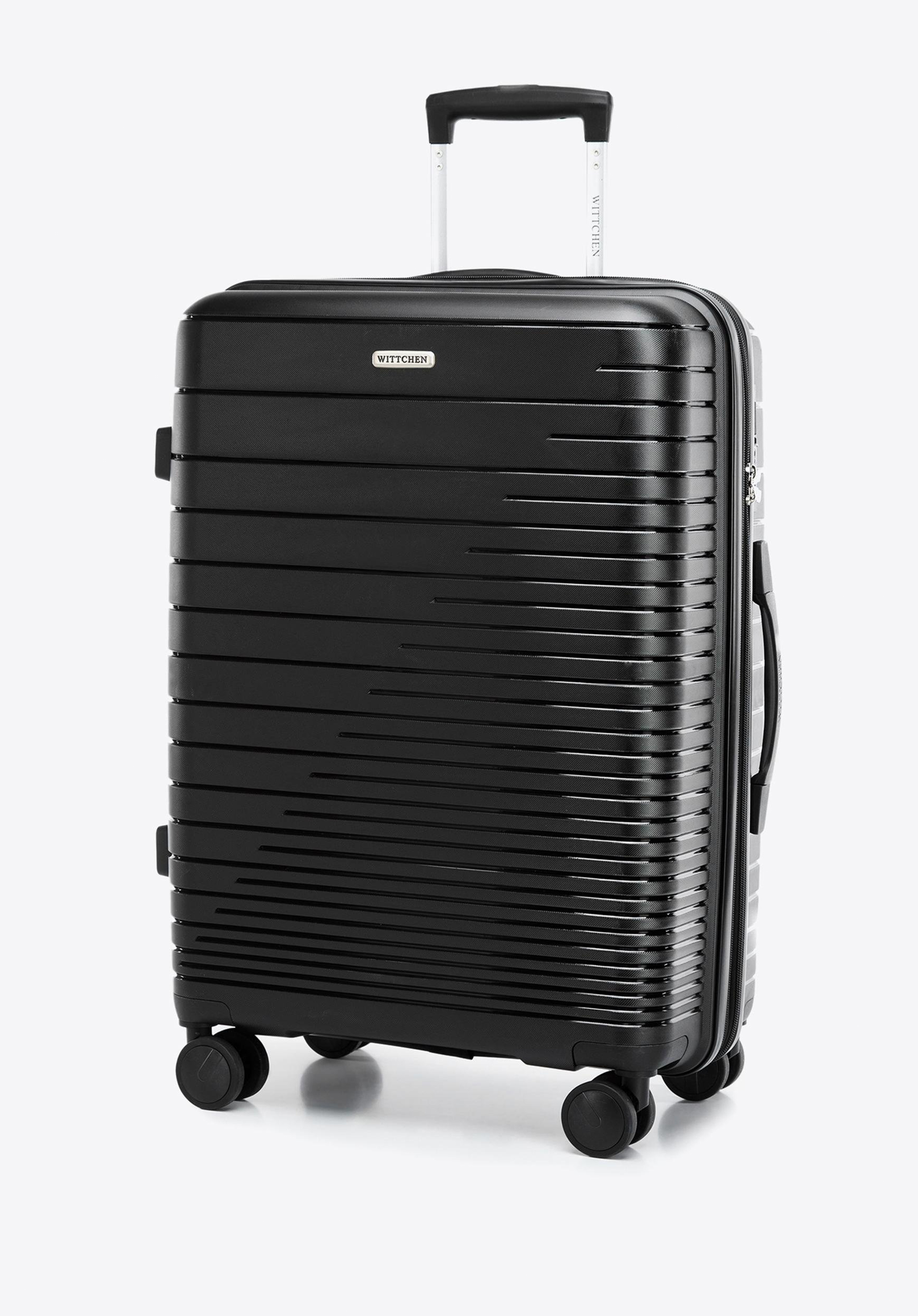 Ці валізи стануть зручним і стильним вибором для будь-якого любителя подорожей. Вони виготовлені з високоякісного поліпропілену, тому вони легкі та дуже гнучкі. Матовий корпус прикрашений блискучими горизонтальними смужками, які надають їм сучасний вигляд. Середню та велику валізи можна розширити, тому ви можете легко пристосувати їх до своїх потреб під час кожної подорожі. Всередині вони мають два відділення, де можна легко стежити за порядком і зручно спакувати речі в дорогу. Завдяки висувній телескопічній ручці та чотирьом подвійним поворотним колесам їх буде зручно переміщати. Набір поліпропіленових валіз з блискучими смужками - відмінний вибір для будь-якої подорожі.