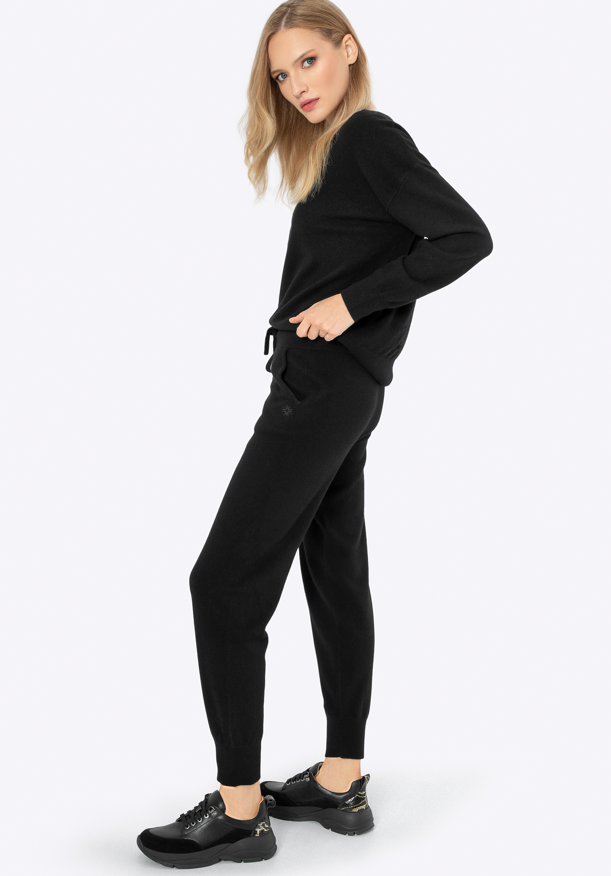 Подбайте про свій комфорт і стиль з нашим розкішним одягом з вовни. Цей унікальний комплект, що складається з м’якого светра та джоггерів, є ідеальним поєднанням елегантності та комфорту. Ніжний вовняний матеріал огорне Вас теплом, а універсальний колір дозволить виглядати модно та стильно в будь-якій ситуації. Незалежно від того, де ви знаходитесь і чим займаєтеся, цей набір забезпечить вам не тільки комфорт, але й неповторний вигляд. Відмінною деталлю є тонка вишита монограма на лівій кишені штанів і правому рукаві светра. Штани, оброблені злегка ребристими манжетами, гарантують ідеальну посадку, а еластична стрічка та шнурок на талії дозволяють регулювати розмір.