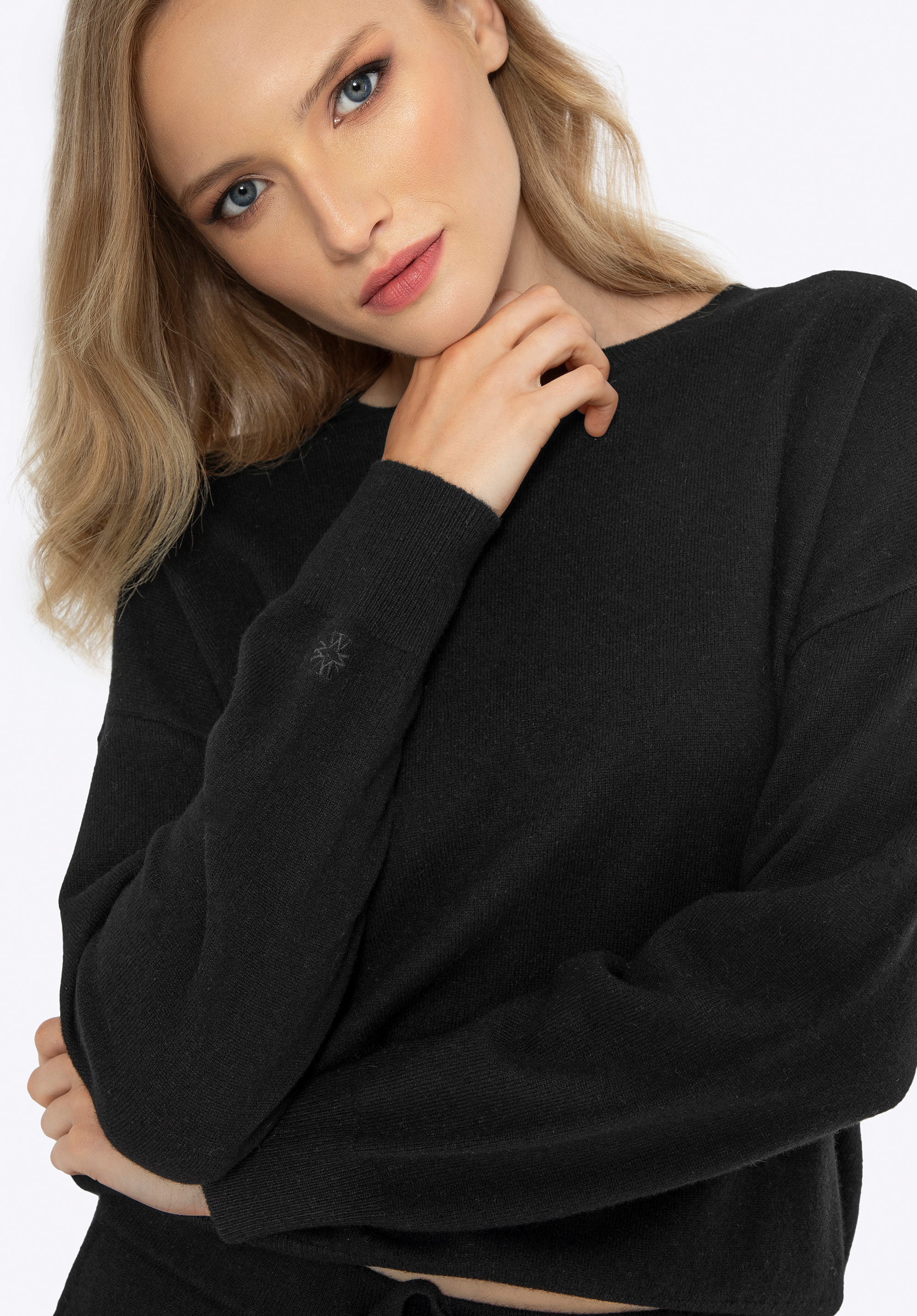 - Деталі: витончена монограма на лівій кишені штанів і правому рукаві светра додає унікального характеру та класу всьому.