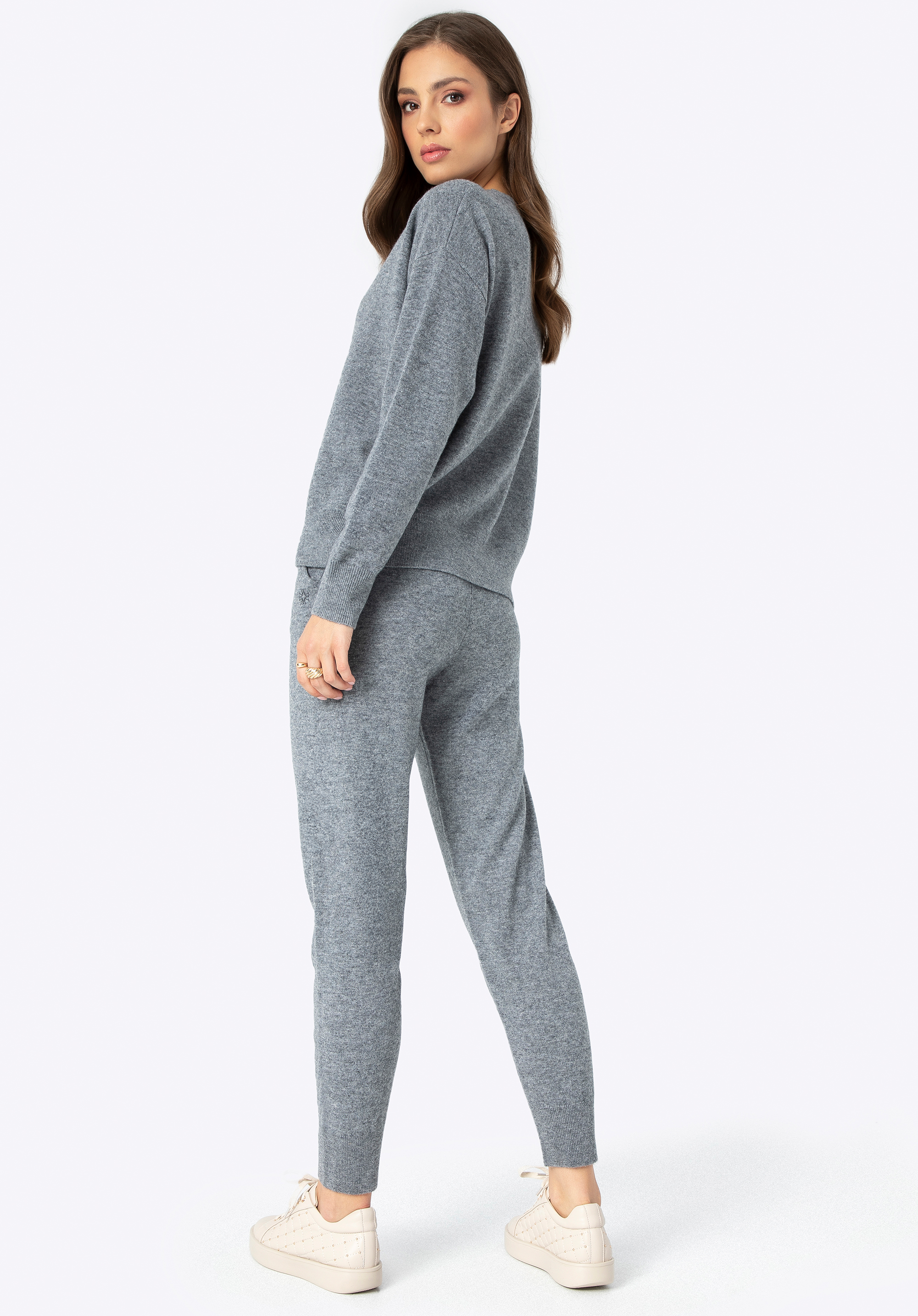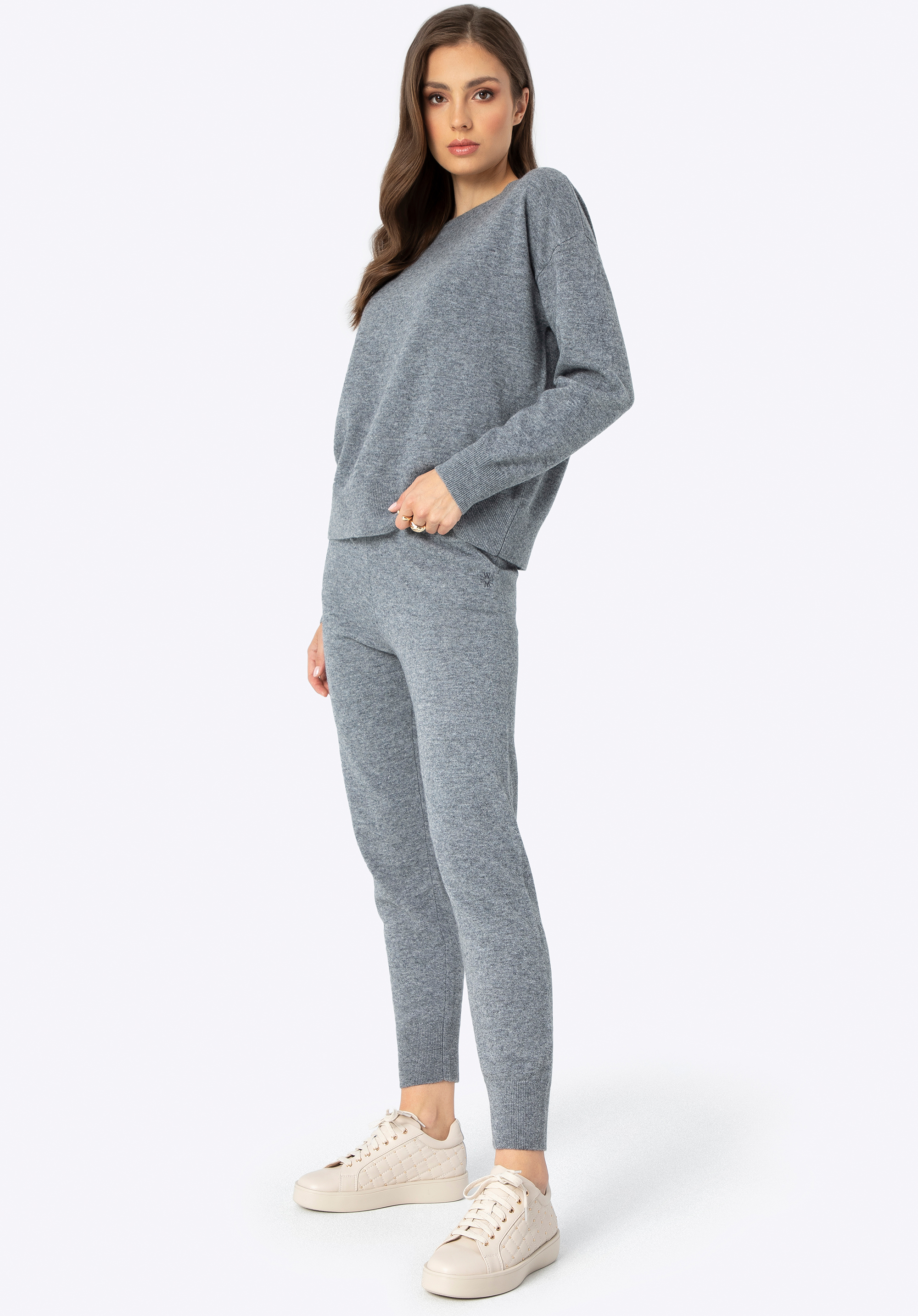 Подбайте про свій комфорт і стиль з нашим розкішним одягом з вовни. Цей унікальний комплект, що складається з м’якого светра та джоггерів, є ідеальним поєднанням елегантності та комфорту. Ніжний вовняний матеріал огорне Вас теплом, а універсальний колір дозволить виглядати модно та стильно в будь-якій ситуації. Незалежно від того, де ви знаходитесь і чим займаєтеся, цей набір забезпечить вам не тільки комфорт, але й неповторний вигляд. Відмінною деталлю є тонка вишита монограма на лівій кишені штанів і правому рукаві светра. Штани, оброблені злегка ребристими манжетами, гарантують ідеальну посадку, а еластична стрічка та шнурок на талії дозволяють регулювати розмір.