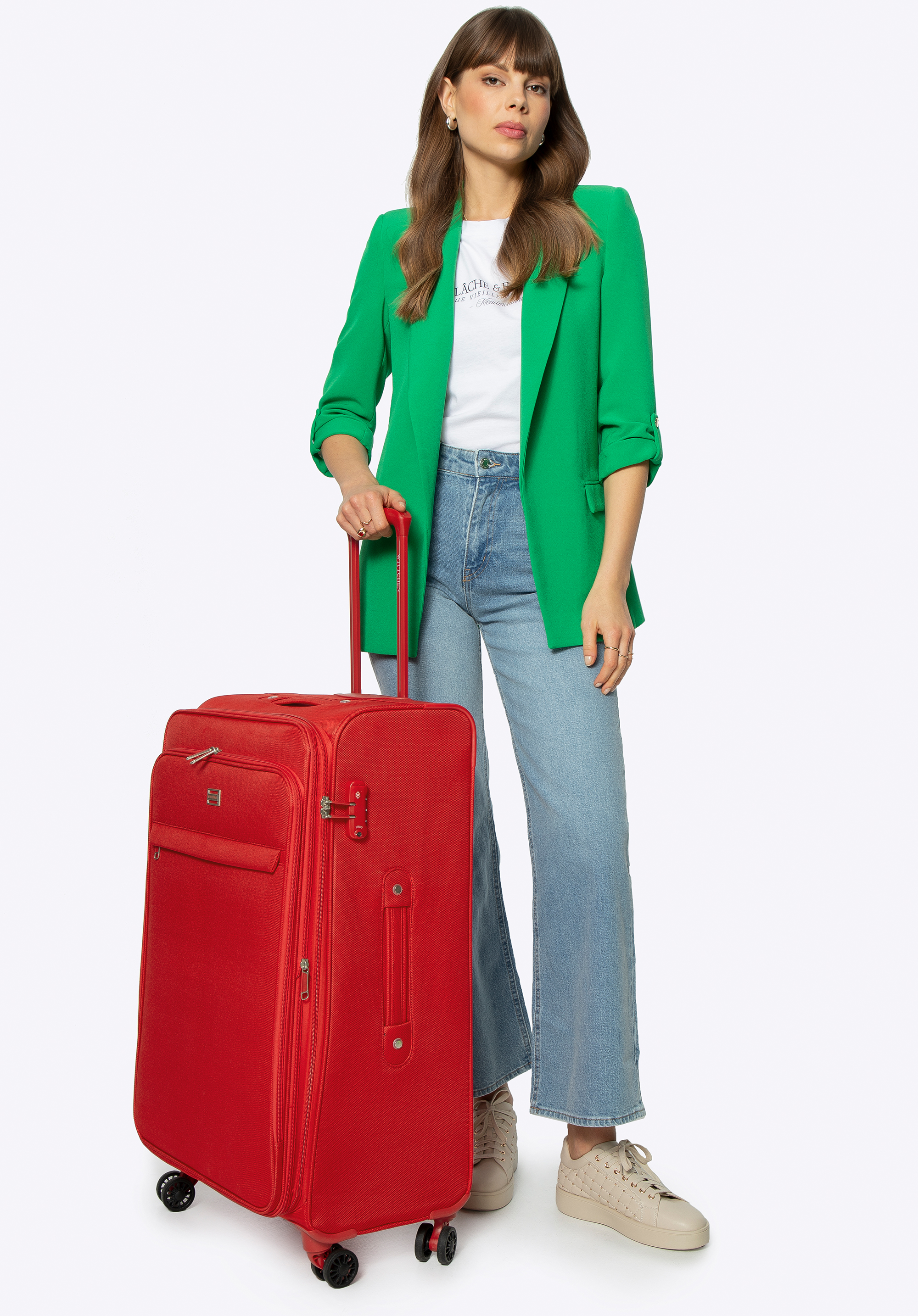 Ця велика валіза стане в нагоді для поїздки на кілька днів. Вона була виготовлена з високоякісного поліестеру. Сучасний характер підкреслюють підібрані за кольором вставки. Всередині вона дуже містка, а завдяки кишені на блискавці ви легко зможете тримати її в порядку. Має телескопічну ручку і чотири поворотних колеса. У цій моделі також є замок TSA, який забезпечить збереження вашого багажу. Однотонна велика валіза - зручний і стильний аксесуар для будь-якої подорожі.