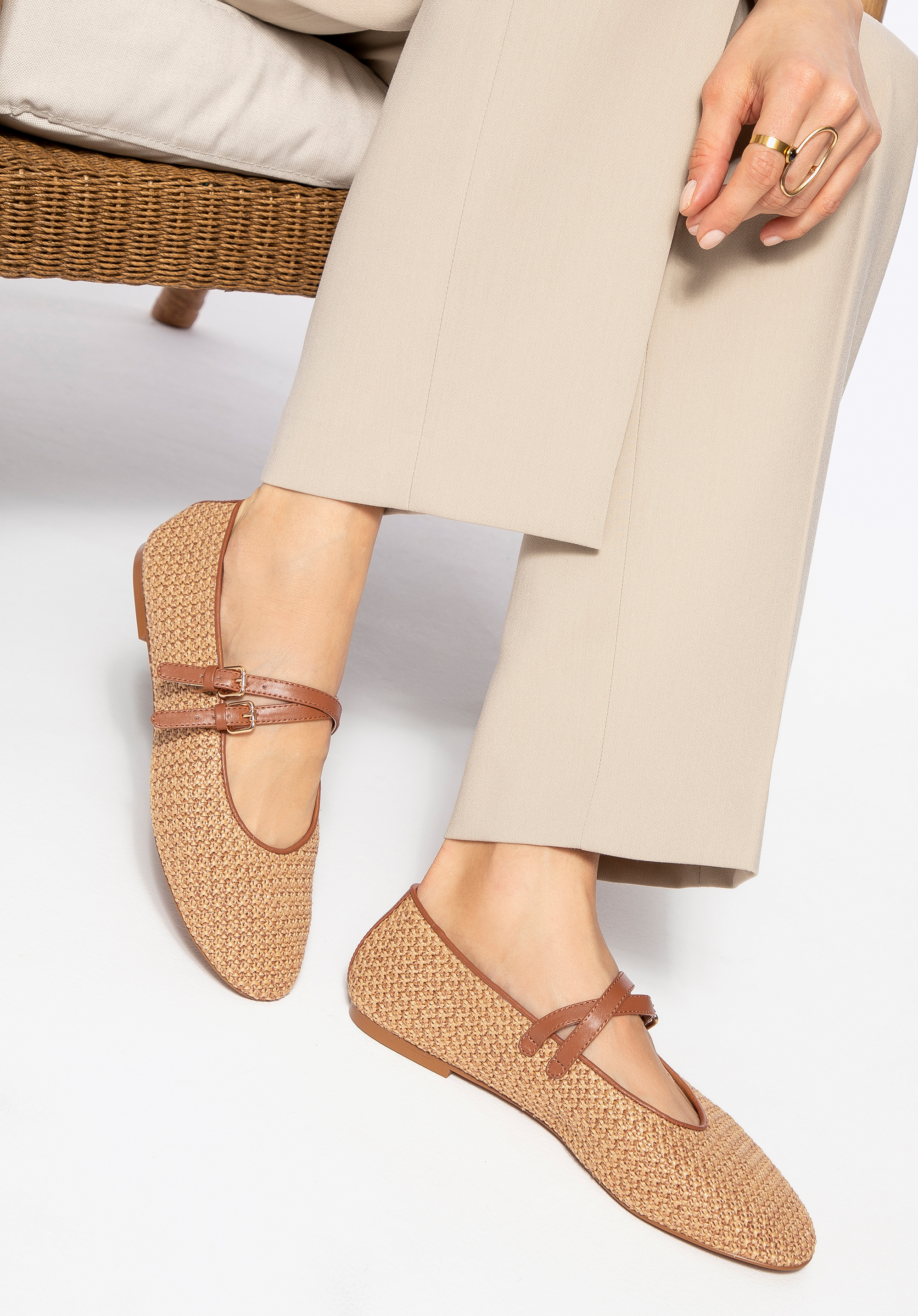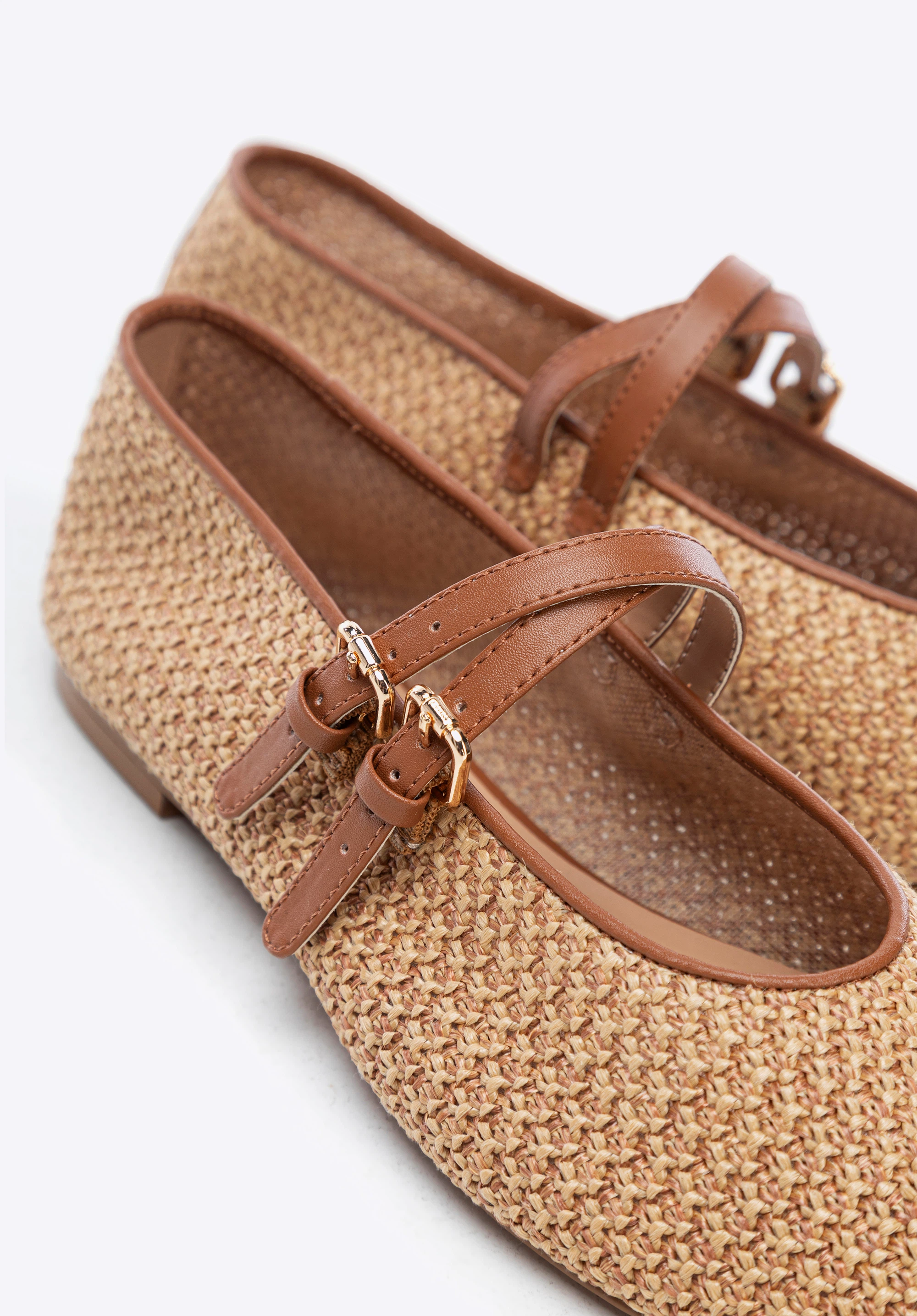 Зробіть крок у світ, де комфорт поєднується з елегантністю. Ці балетки з поліуретану стануть ідеальним доповненням до будь-якого літнього вбрання. Їхня легка конструкція забезпечує винятковий комфорт у теплі дні, а делікатні деталі, такі як два регульованих ремінця з пряжками, забезпечують ідеальну посадку та додають характеру. Ці балетки з округлим носком і плоским каблуком поєднують комфорт і стиль, що робить їх ідеальними як для повсякденного носіння, так і для особливих випадків.