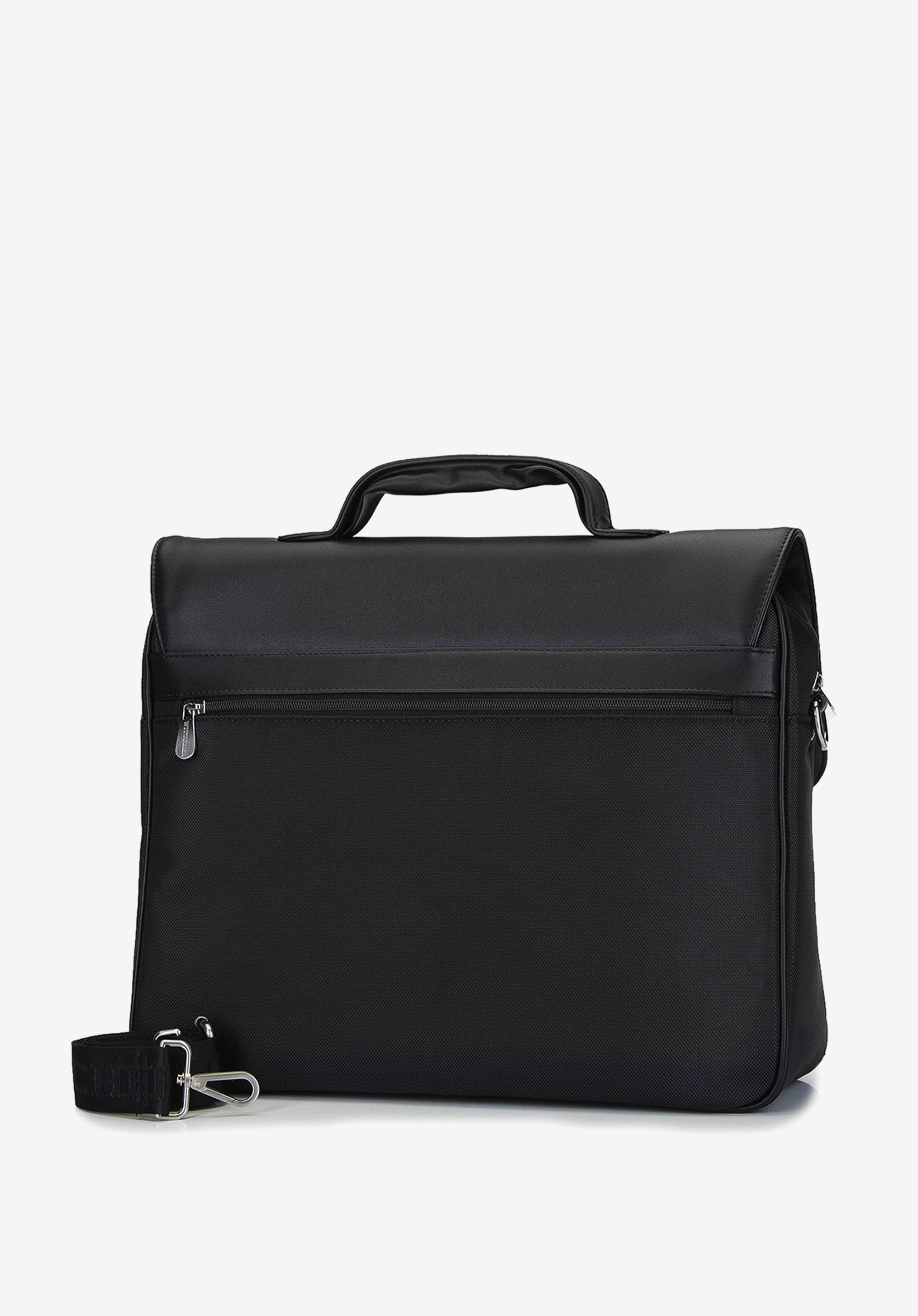 Цей простий портфель є чудовим доповненням до роботи для елегантної людини, а також для важливої зустрічі. Всередині він має окрему 15,6-дюймову м''яку кишеню для ноутбука і дві додаткових кишені, в тому числі одну для телефону. У просторому відсіку також помістяться папки та інші документи формату А4. З подвійною застібкою-пряжкою з ключем і замком ви можете бути впевнені, що його вміст буде добре захищен. Він зшитий з міцної тканини з додатковою панеллю і м''яким клапаном з екошкіри. Цей елегантний тканинний портфель з кишенею для ноутбука стане відмінним доповненням як до напівформального, так і до формального стилю.