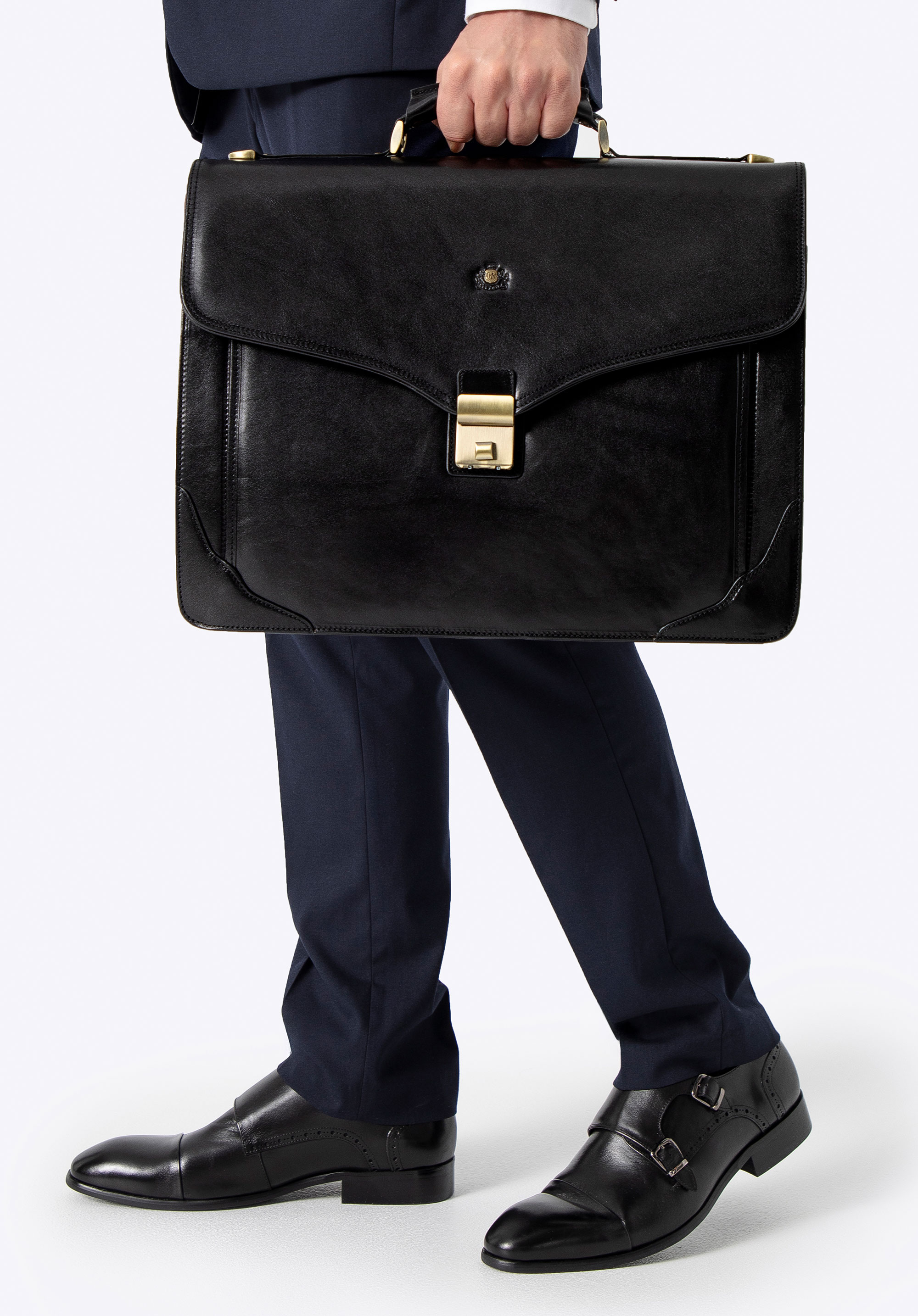 Місткий портфель з високоякісної телячої шкіри, що відрізняється винятковою міцністю, є елегантним і стильним доповненням. Класичний дизайн моделі, задовольнить смаки найвимогливіших людей.