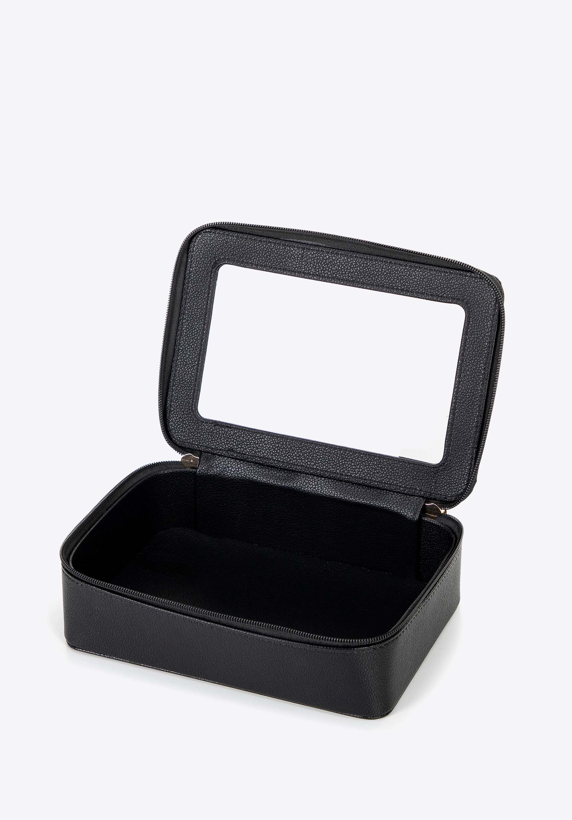 - Прозорий верх: Дозволяє швидко знайти потрібний продукт, не відкриваючи косметичку.