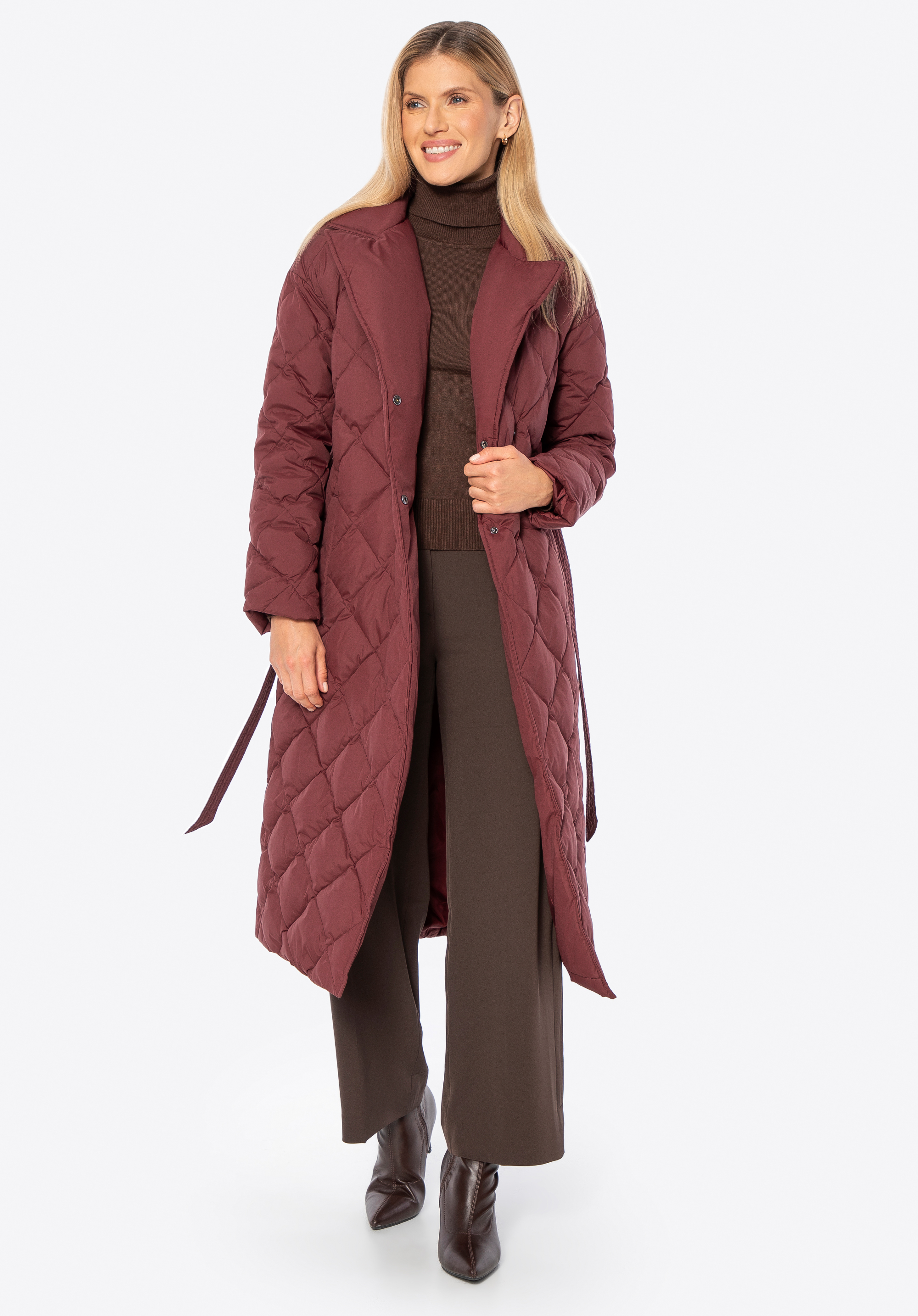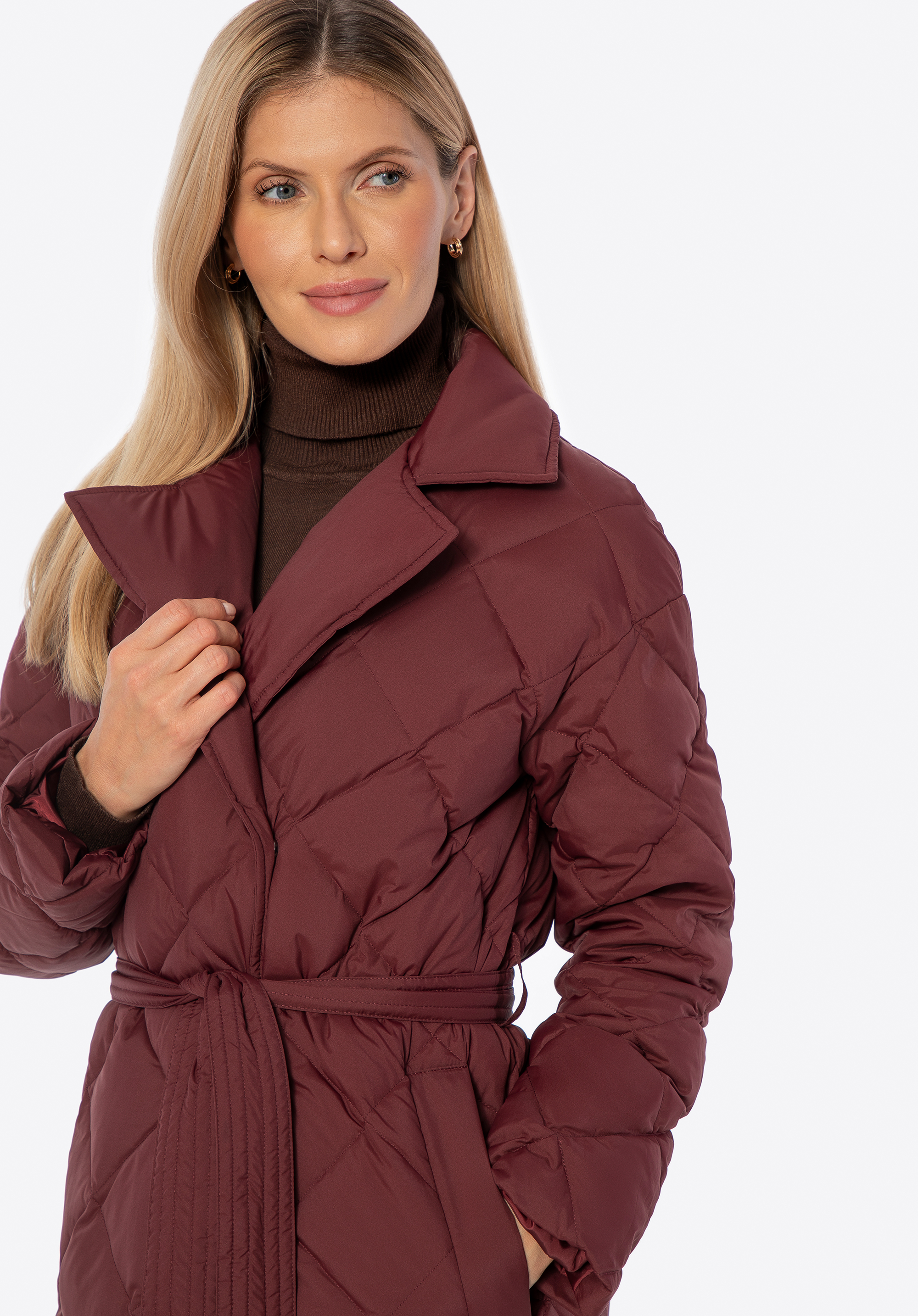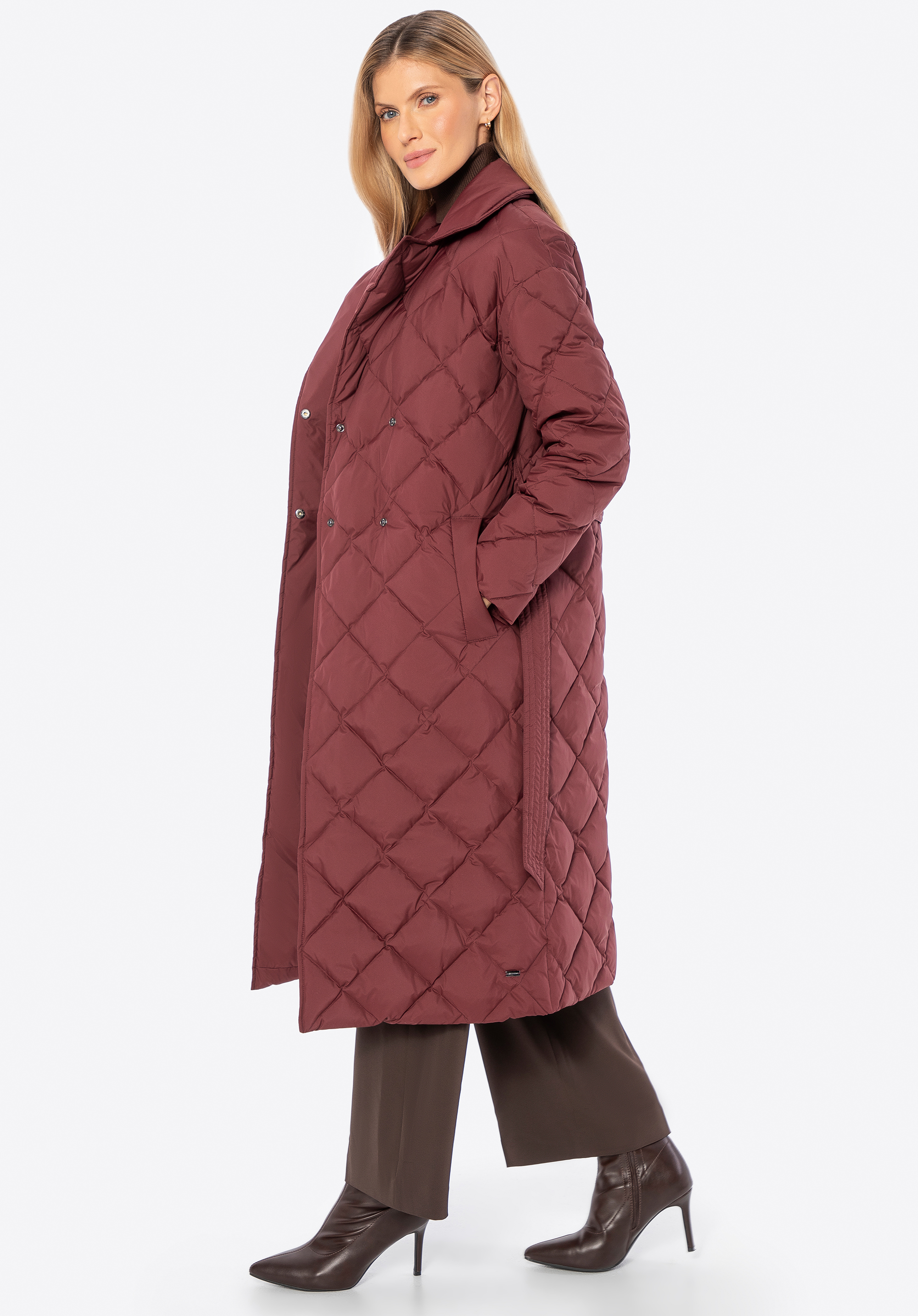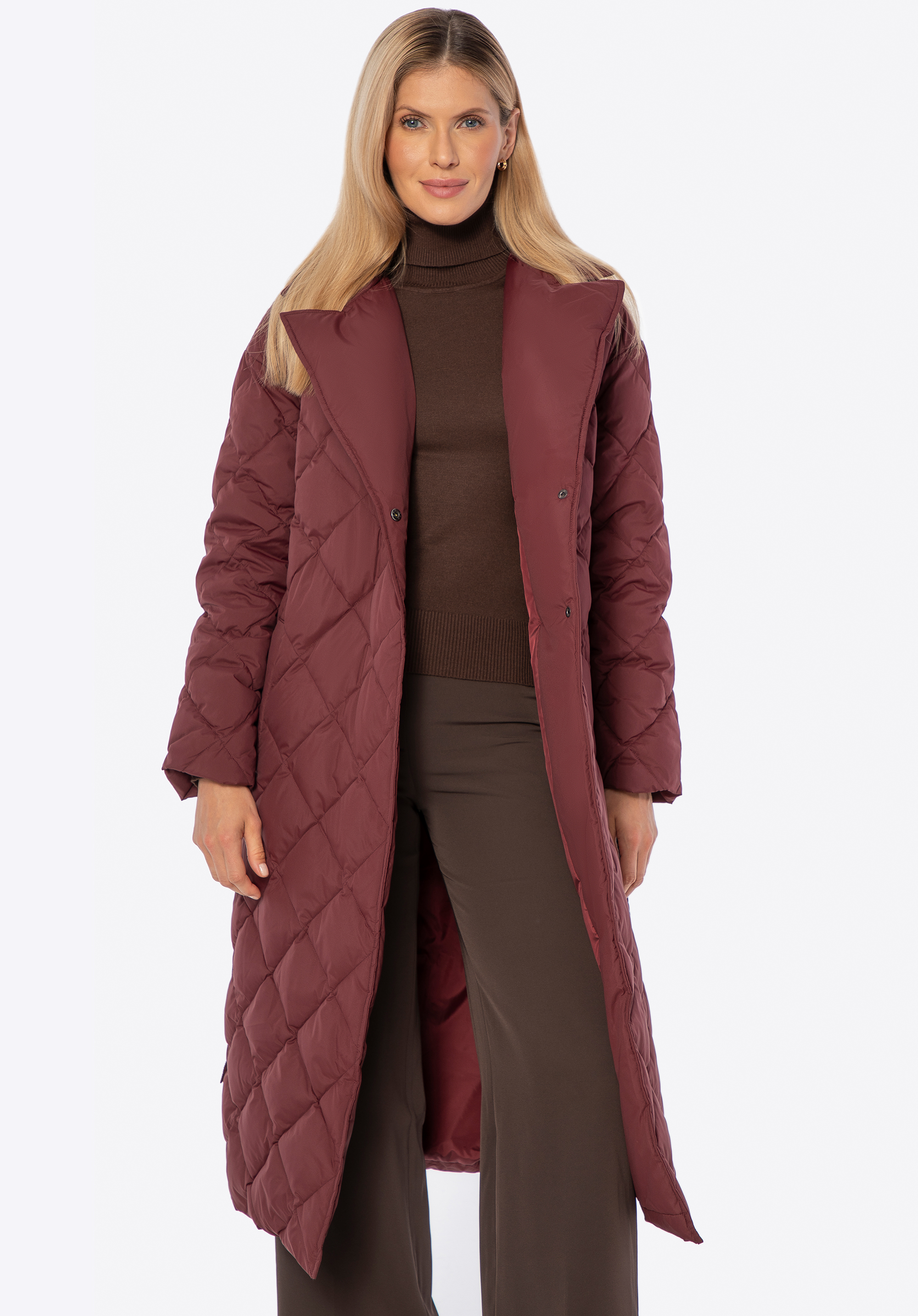 Пухове пальто з натуральним наповнювачем бордове