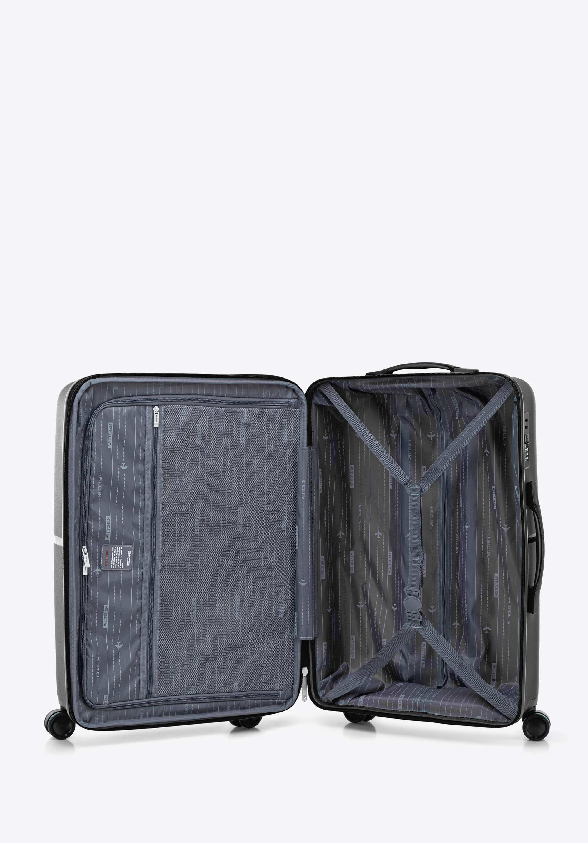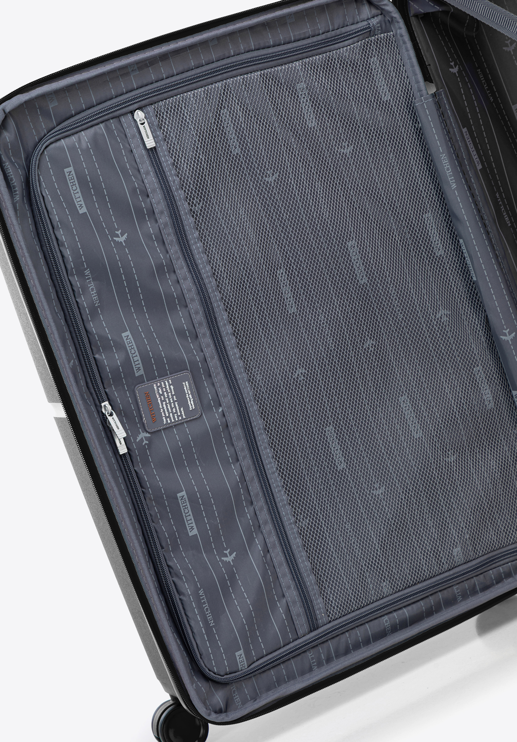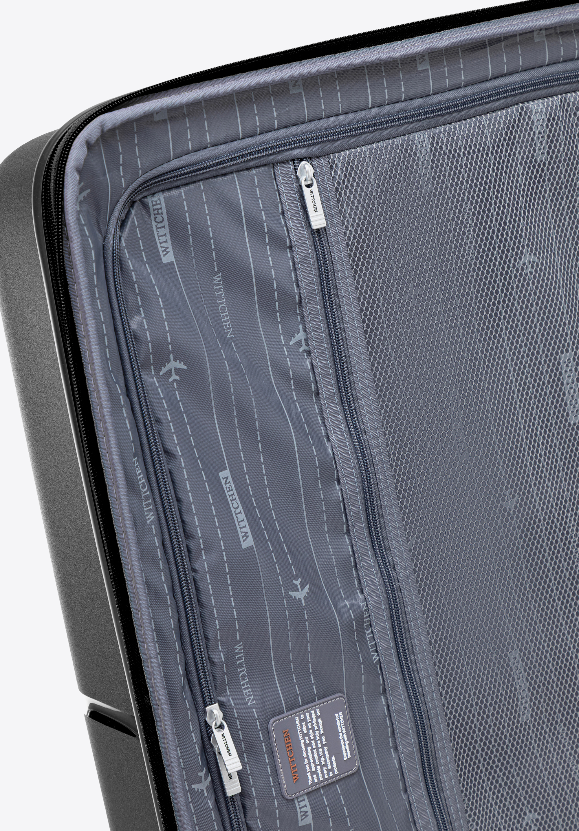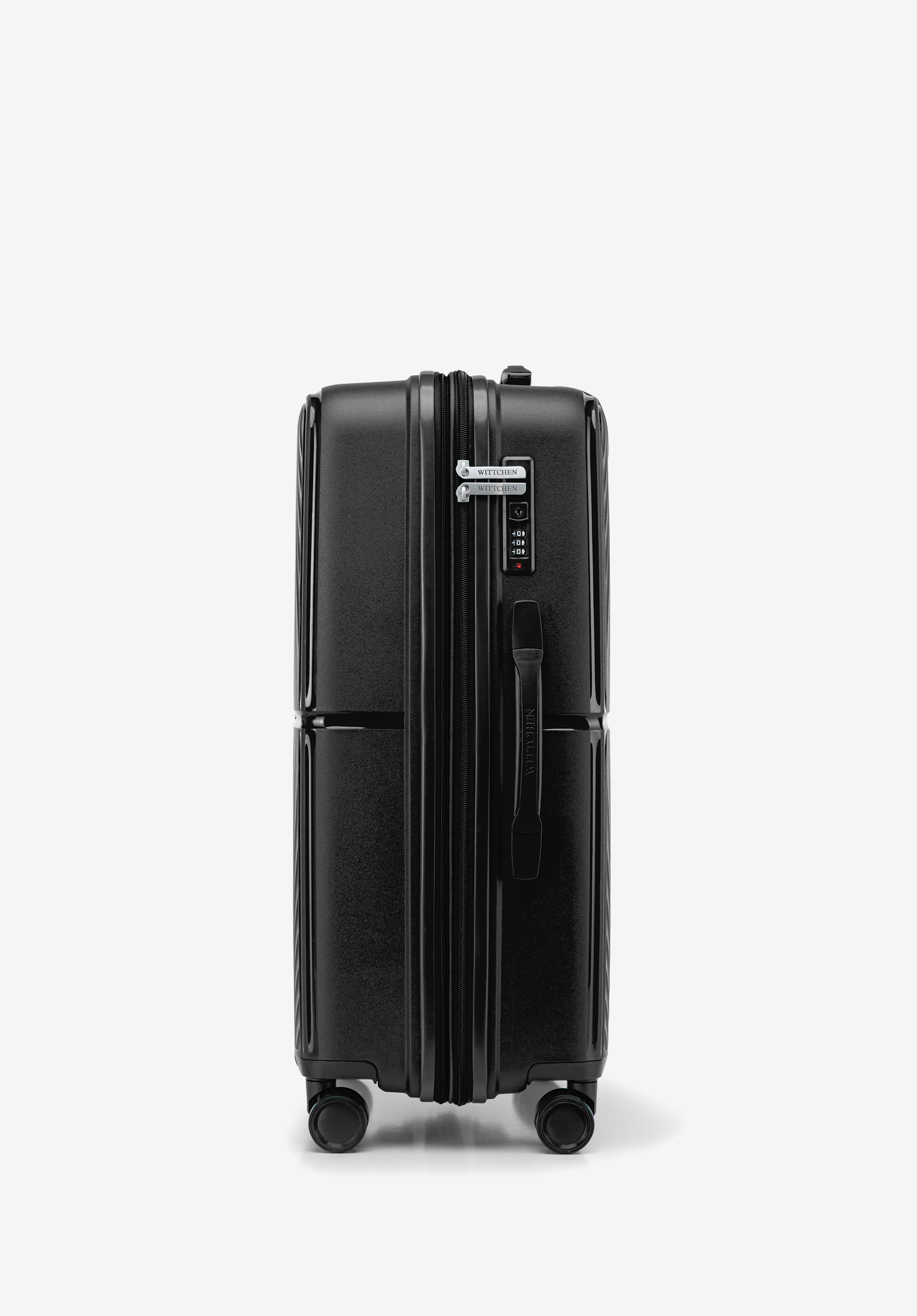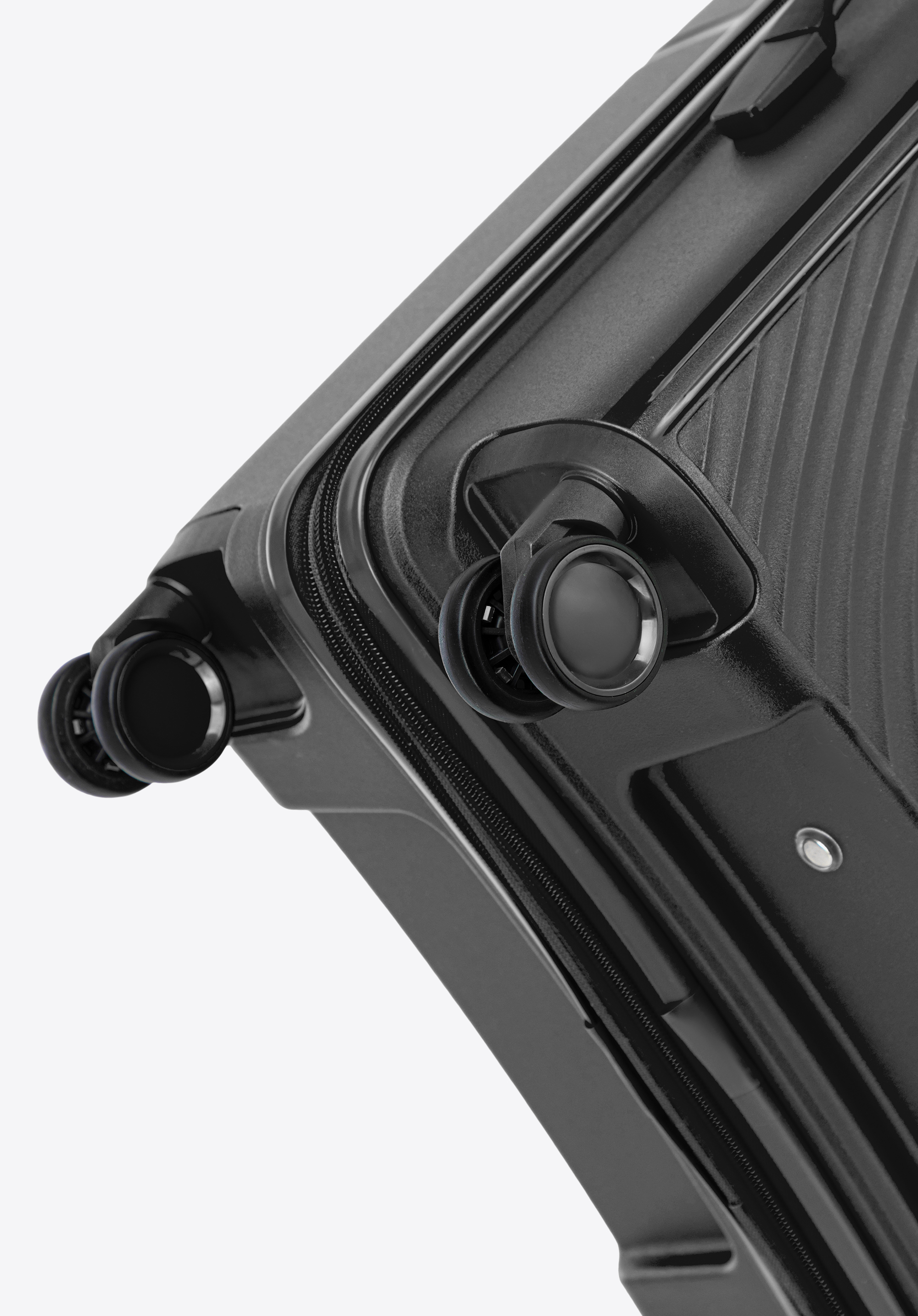 - Стійкість: 4 бічні ніжки забезпечують стійке положення валізи на боці.