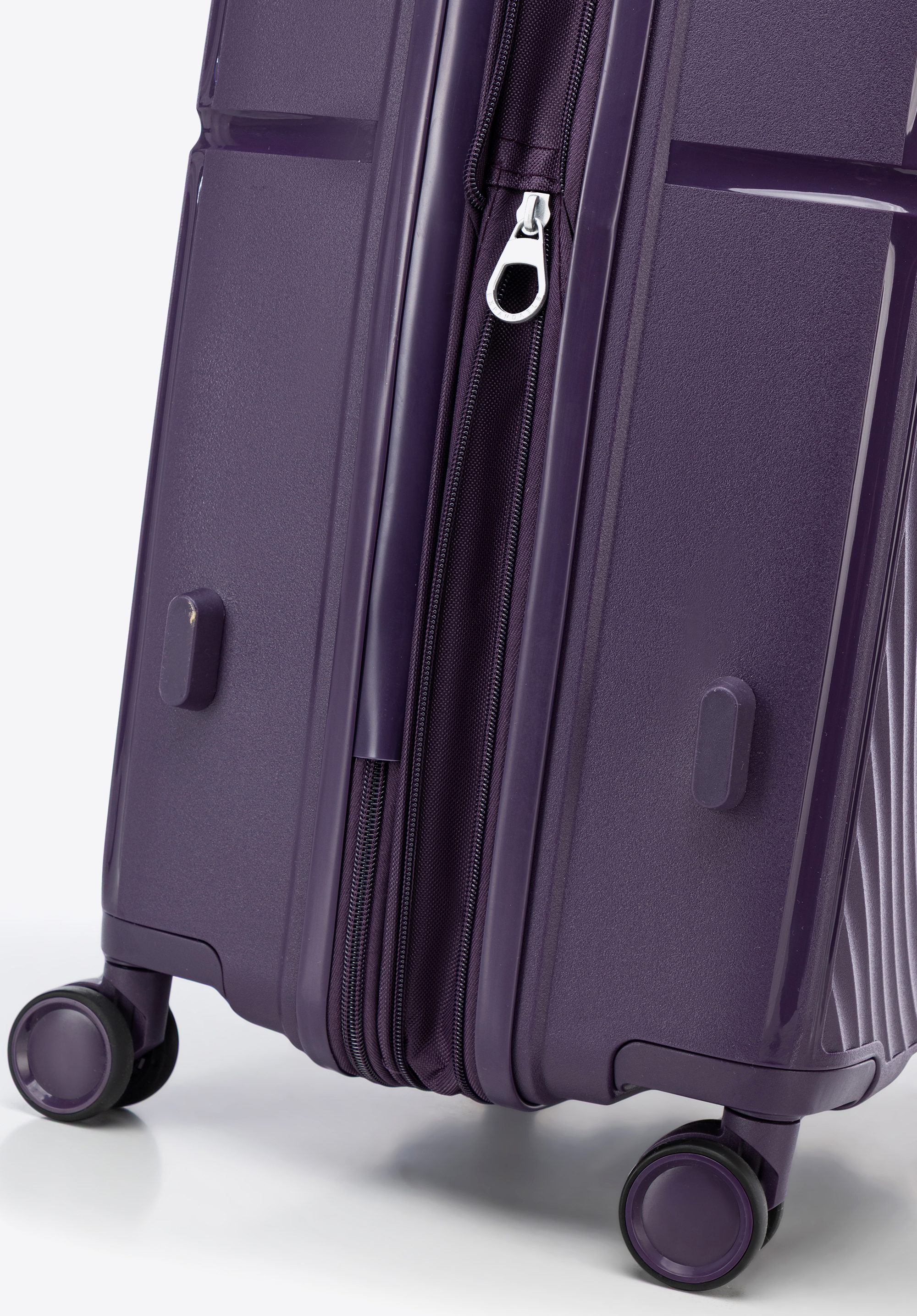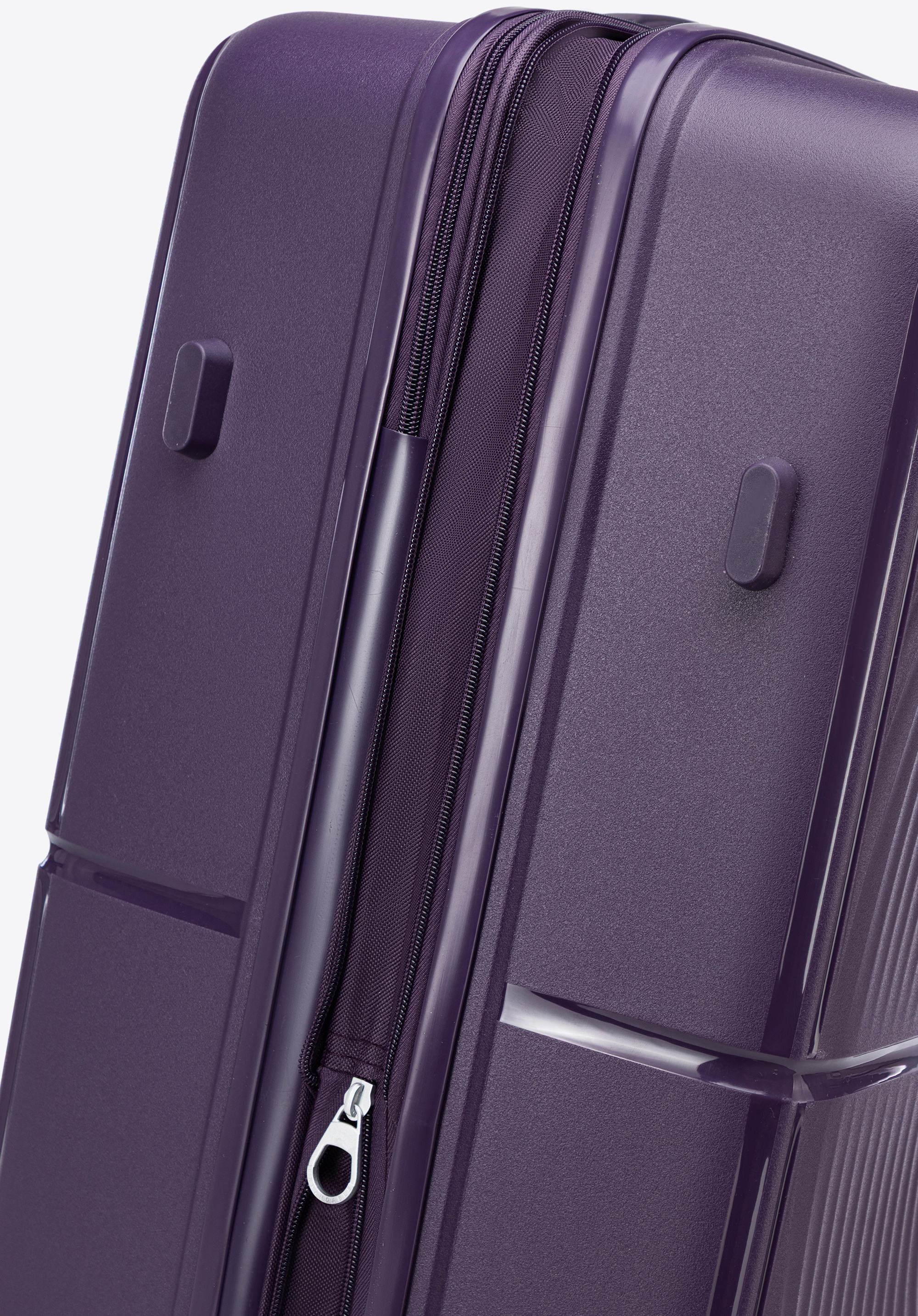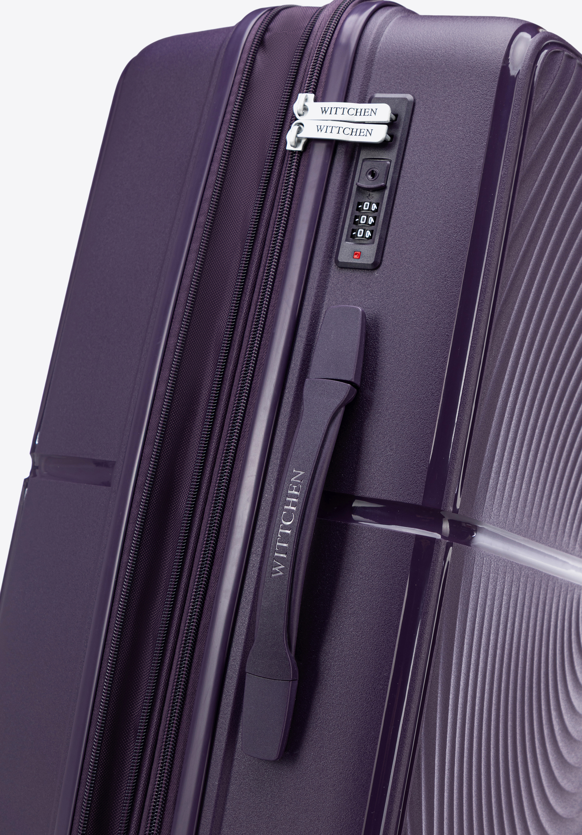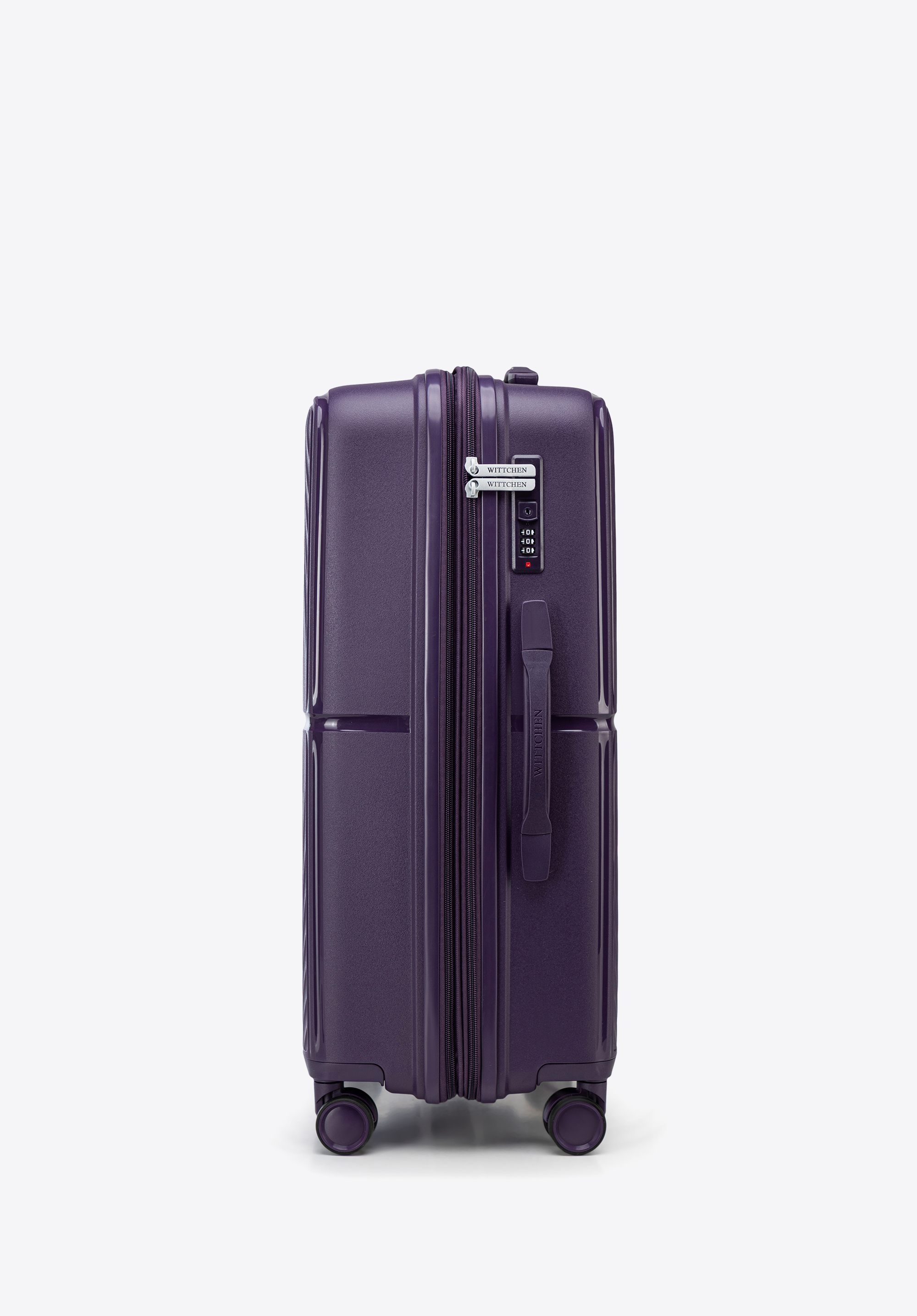 - Стійкість: 4 бічні ніжки забезпечують стійке положення валізи на боці.