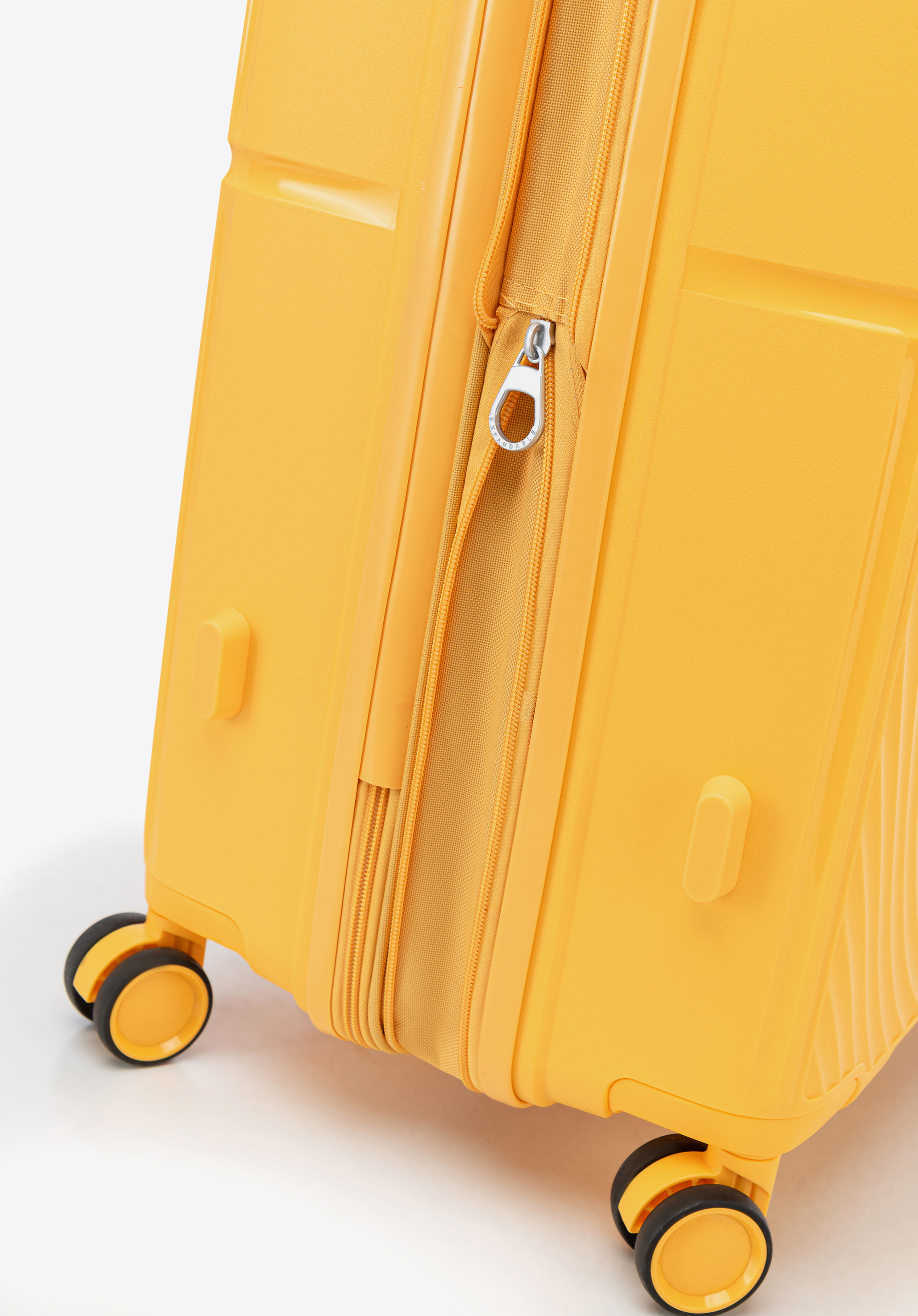 Ця валіза середнього розміру з колекції Circle Line – ідеальний вибір для тих, кому потрібно більше місця без шкоди для сучасного дизайну чи довговічності. Виготовлена з гнучкого та ударостійкого поліпропілену, вона чудово підходить для подорожей. Легка конструкція та елегантні деталі роблять її практичним та стильним супутником у подорожах.