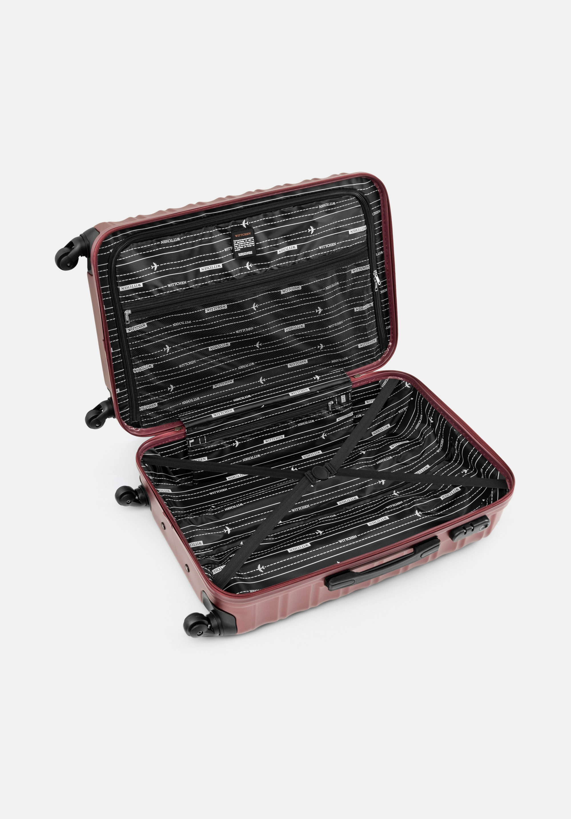 - Комфорт використання: Валіза оснащена чотирма коліщатками з повним обертанням на 360 градусів. Завдяки цьому вона рухається легко та тихо, що значно полегшує маневрування у людних місцях, таких як аеропорти, вокзали або вузькі готельні коридори.