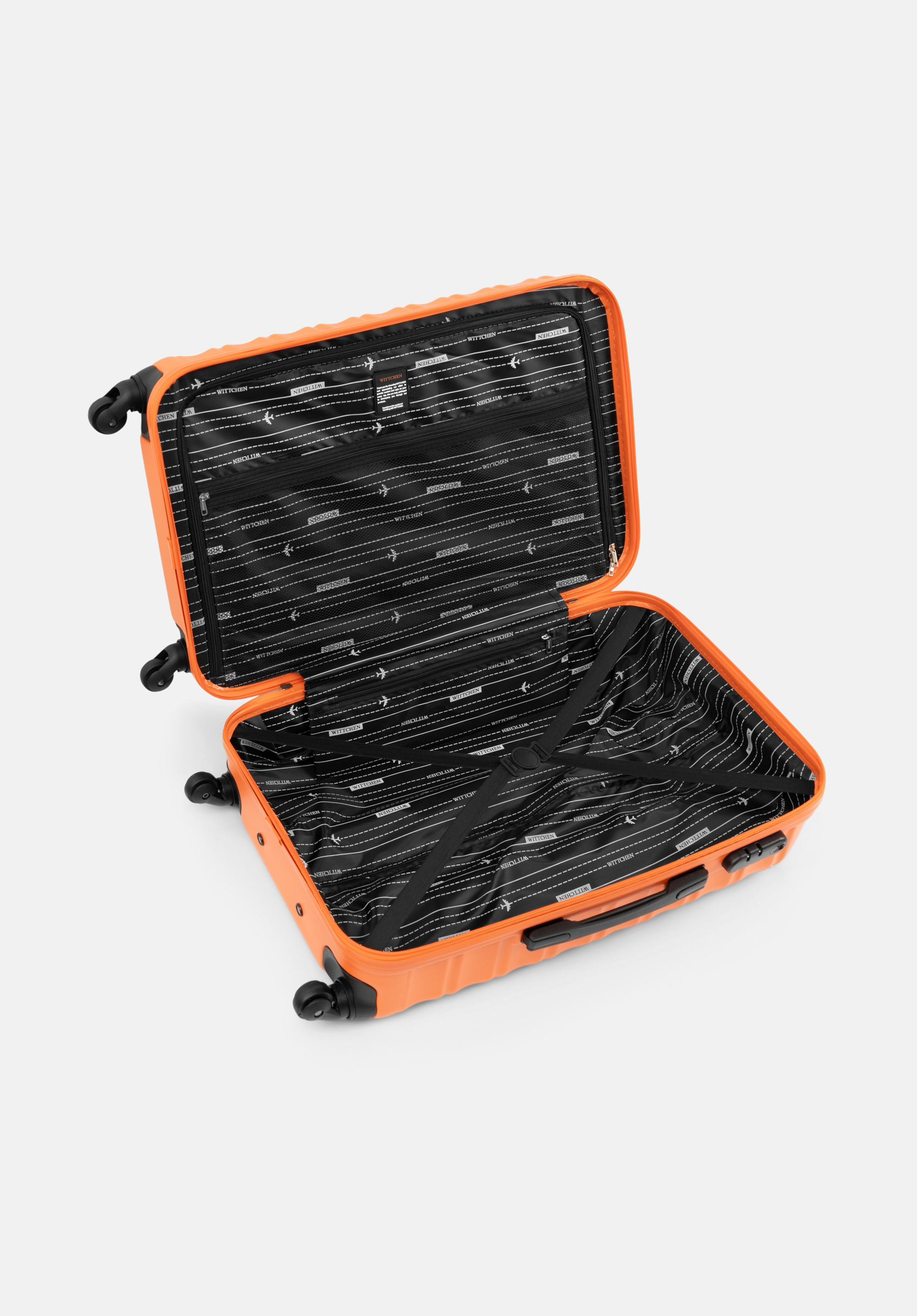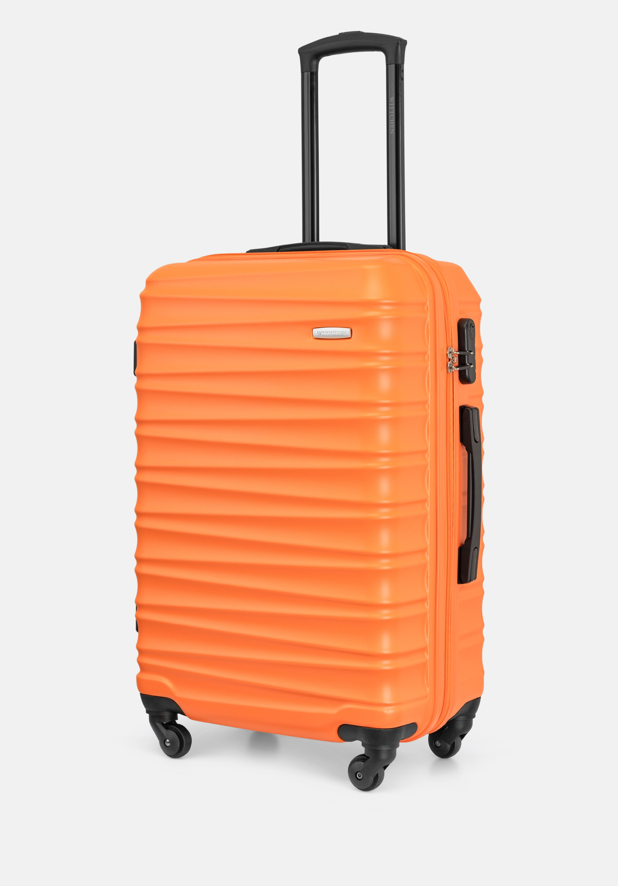 - Комфорт використання: Валіза оснащена чотирма коліщатками з повним обертанням на 360 градусів. Завдяки цьому вона рухається легко та тихо, що значно полегшує маневрування у людних місцях, таких як аеропорти, вокзали або вузькі готельні коридори.