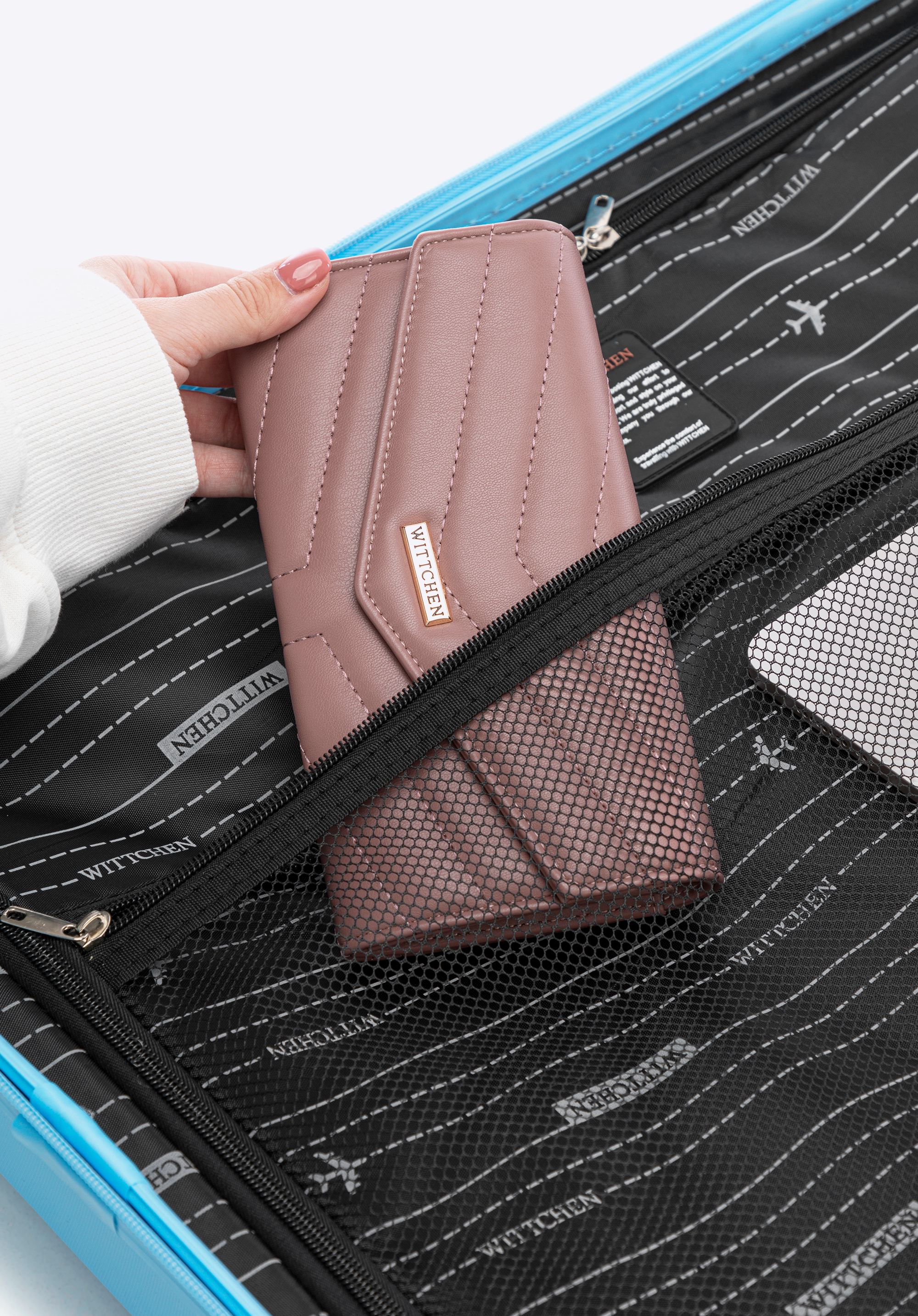 - Додаткові кишені: Валіза має практичну сітчасту кишеню, а посередині — невелику додаткову кишеню на блискавці, ідеальну для дрібних речей.