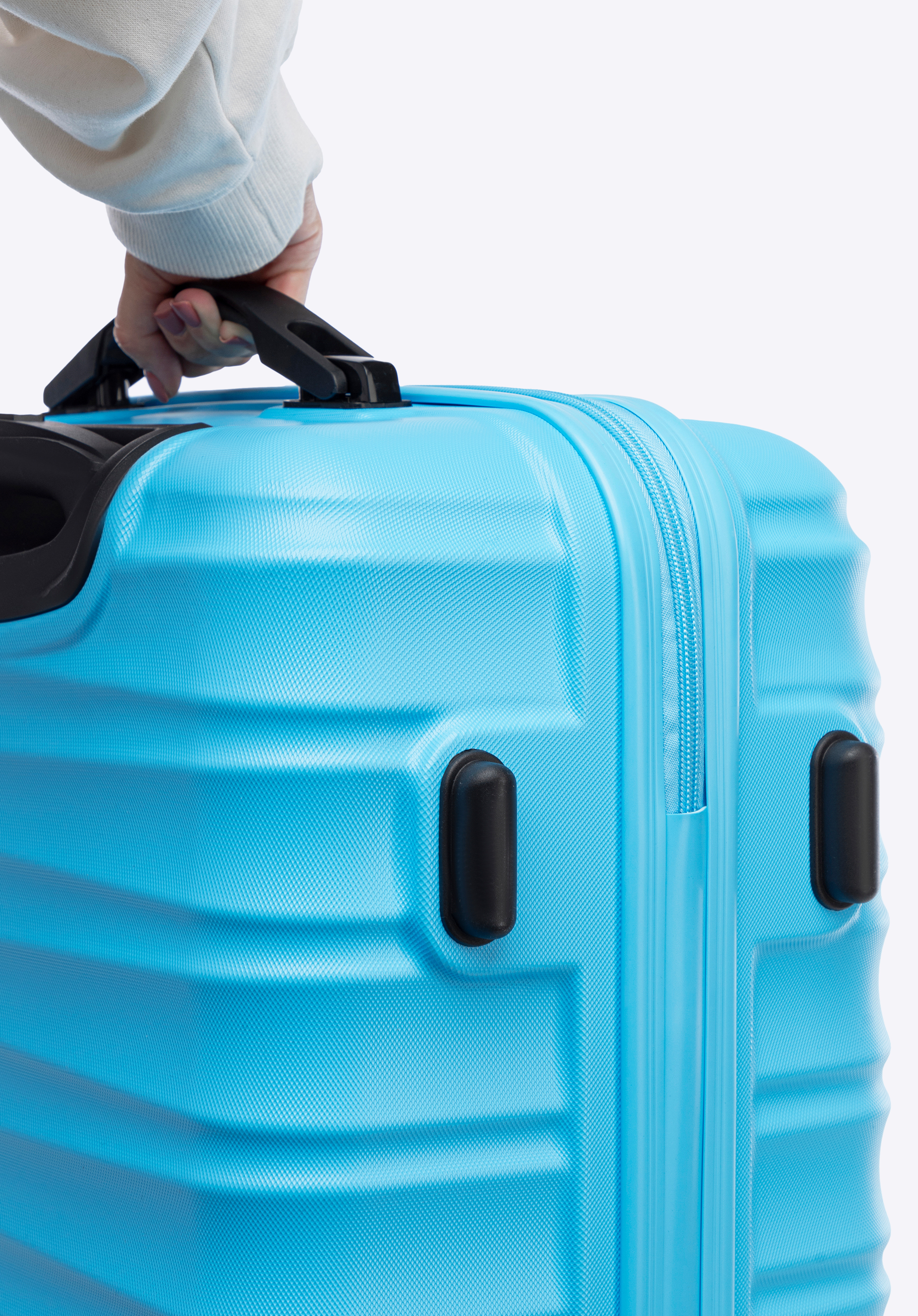 - Зручне перенесення: Телескопічна ручка підлаштовується під ваш зріст, що полегшує керування багажем, а дві гумові ручки дозволяють зручно переносити валізу вертикально або горизонтально.