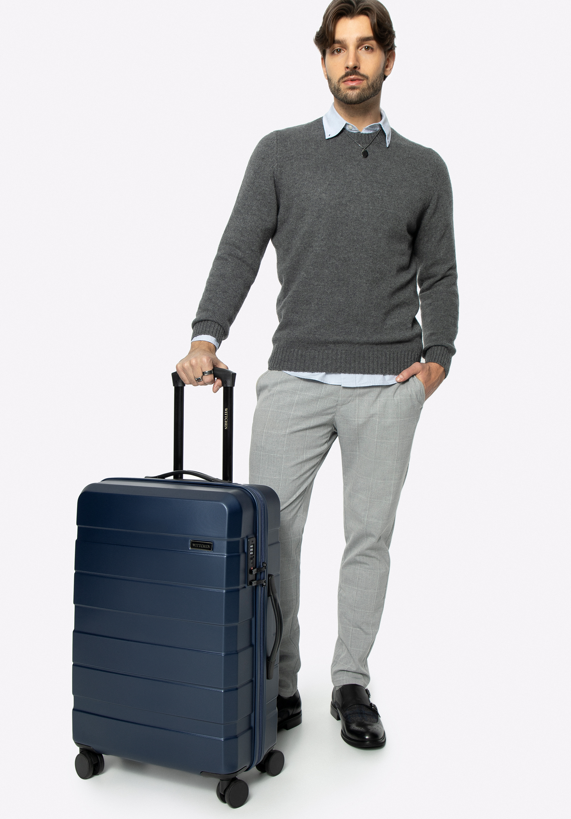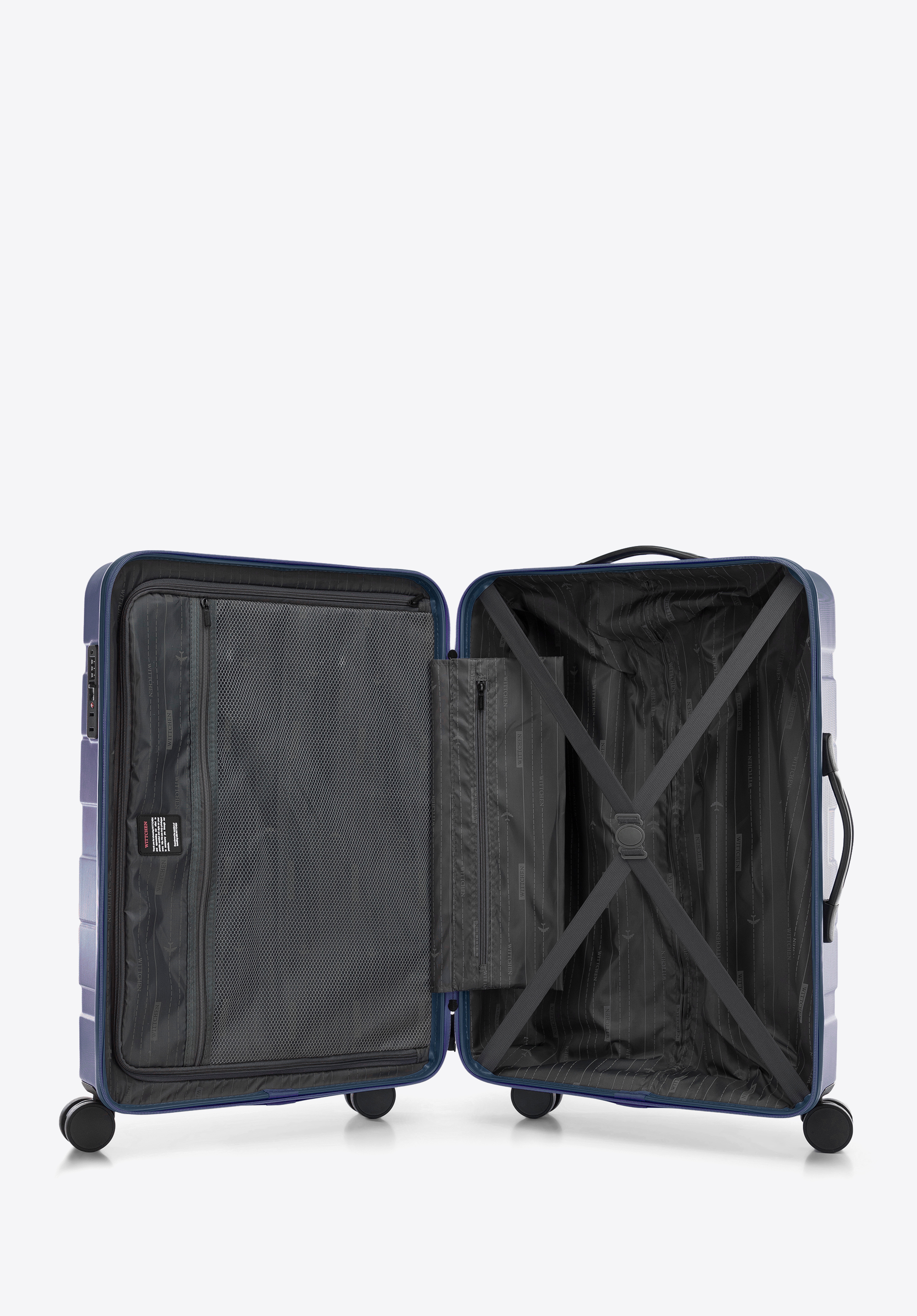 Подорожуйте з комфортом та зручністю з цією валізою з ABS-пластику. Унікальний дизайн опуклих та увігнутих смуг надає їй сучасного вигляду. Ця валіза середнього розміру з колекції COMODO Line досить містка, тому ви можете легко помістити свої речі для багатоденної відпустки. Відділення з еластичними ремінцями надійно закріпить ваш одяг, а внутрішні кишені допоможуть вам організувати дрібні речі. Чотири подвійні колеса полегшують маневрування. Ця валіза середнього розміру з ABS-пластику з горизонтальними смугами – чудовий вибір, який доповнить будь-який образ.