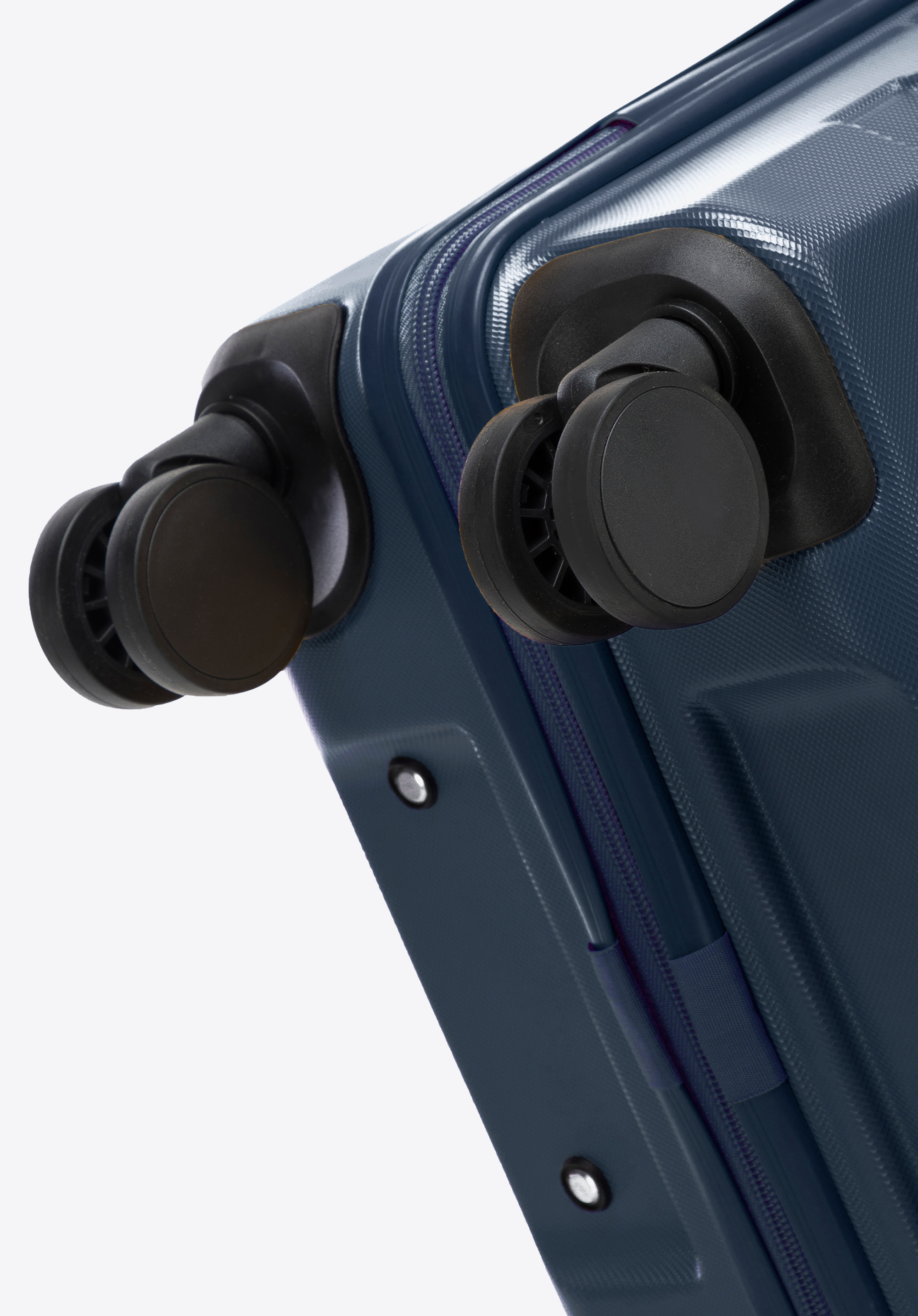 - Валіза оснащена чотирма подвійними поворотними колесами для легкого маневрування;