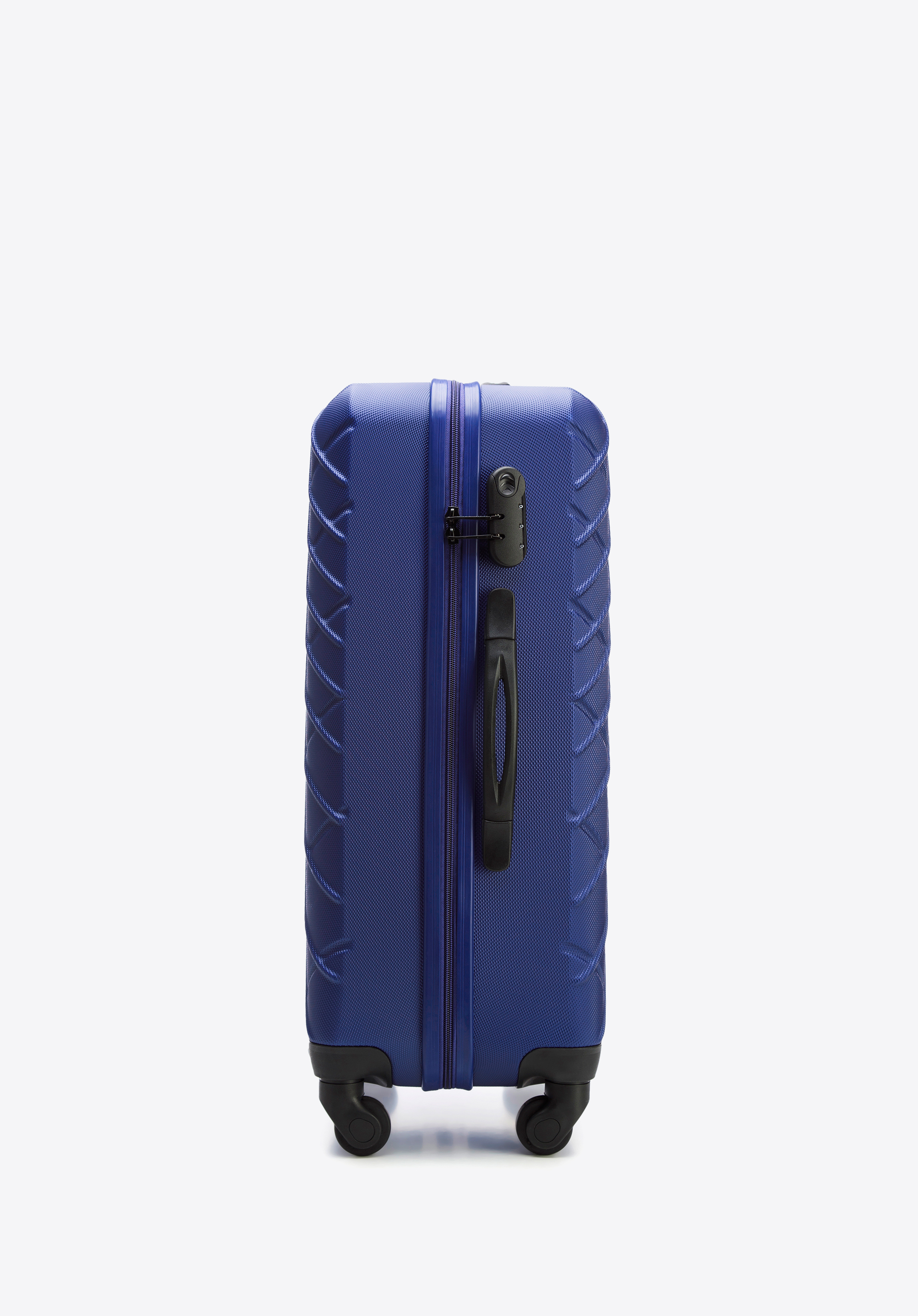 Середня валіза виготовлена з ABS-пластику, який дуже стійкий і, крім того, відмінно виглядає. Легка і міцна валіза підійде для коротких поїздок на вихідні або послужить зручним багажем для більш тривалого маршруту. Люди, які часто подорожують, оцінять цю модель за тиху роботу коліс, міцність пластику і модний візерунок на корпусі. Оригінальна валіза поставляється в трьох універсальних відтінках: темно-синій, сталево-чорний і бордовий.