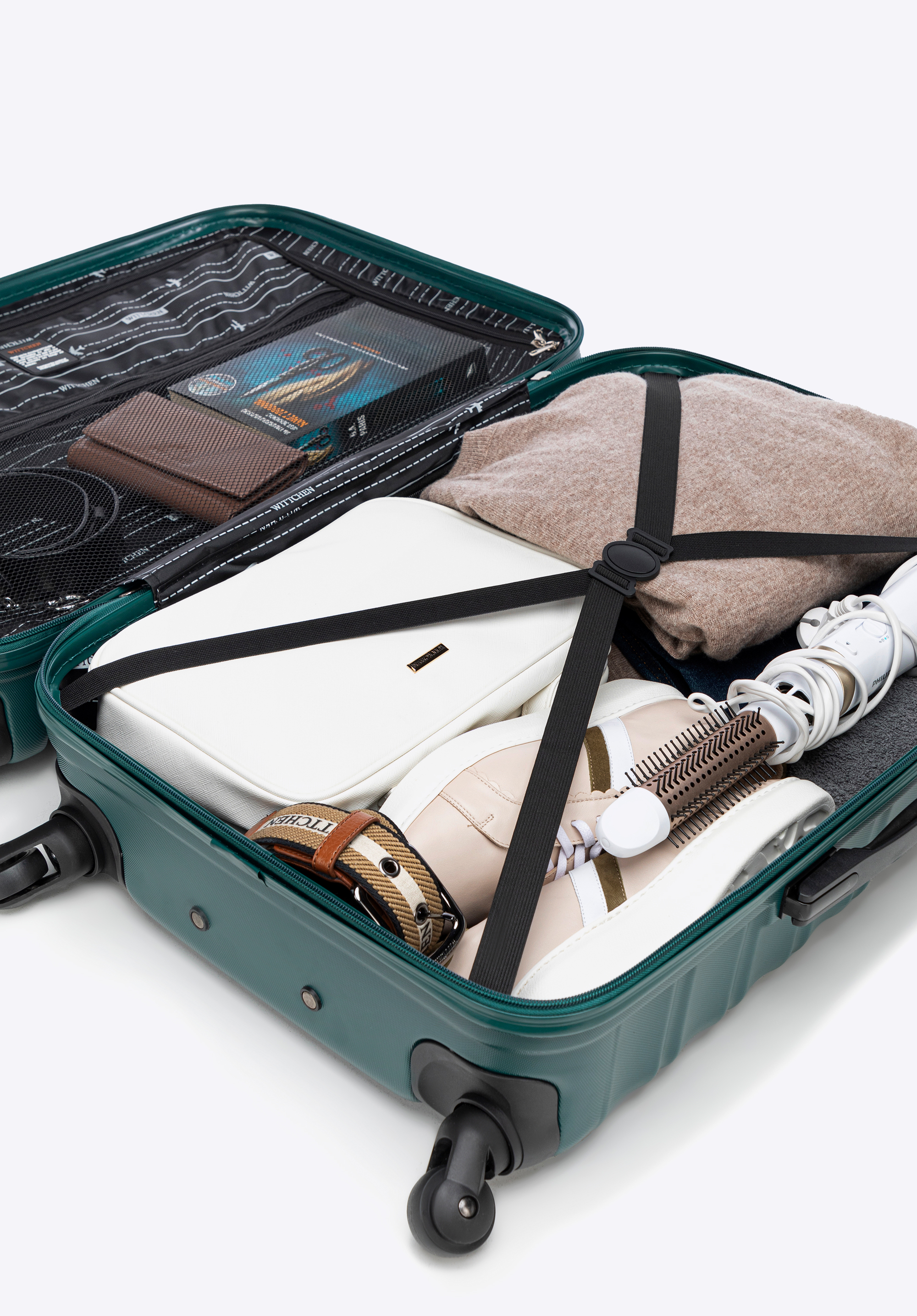 - Продумане внутрішнє оформлення: Внутрішній простір валізи поділений на два відділення. Одна з них оснащена еластичними ременями, які допомагають утримувати одяг та інші речі на місці. Додатково валіза має внутрішню кишеню на блискавці, ідеальну для зберігання дрібних предметів.
