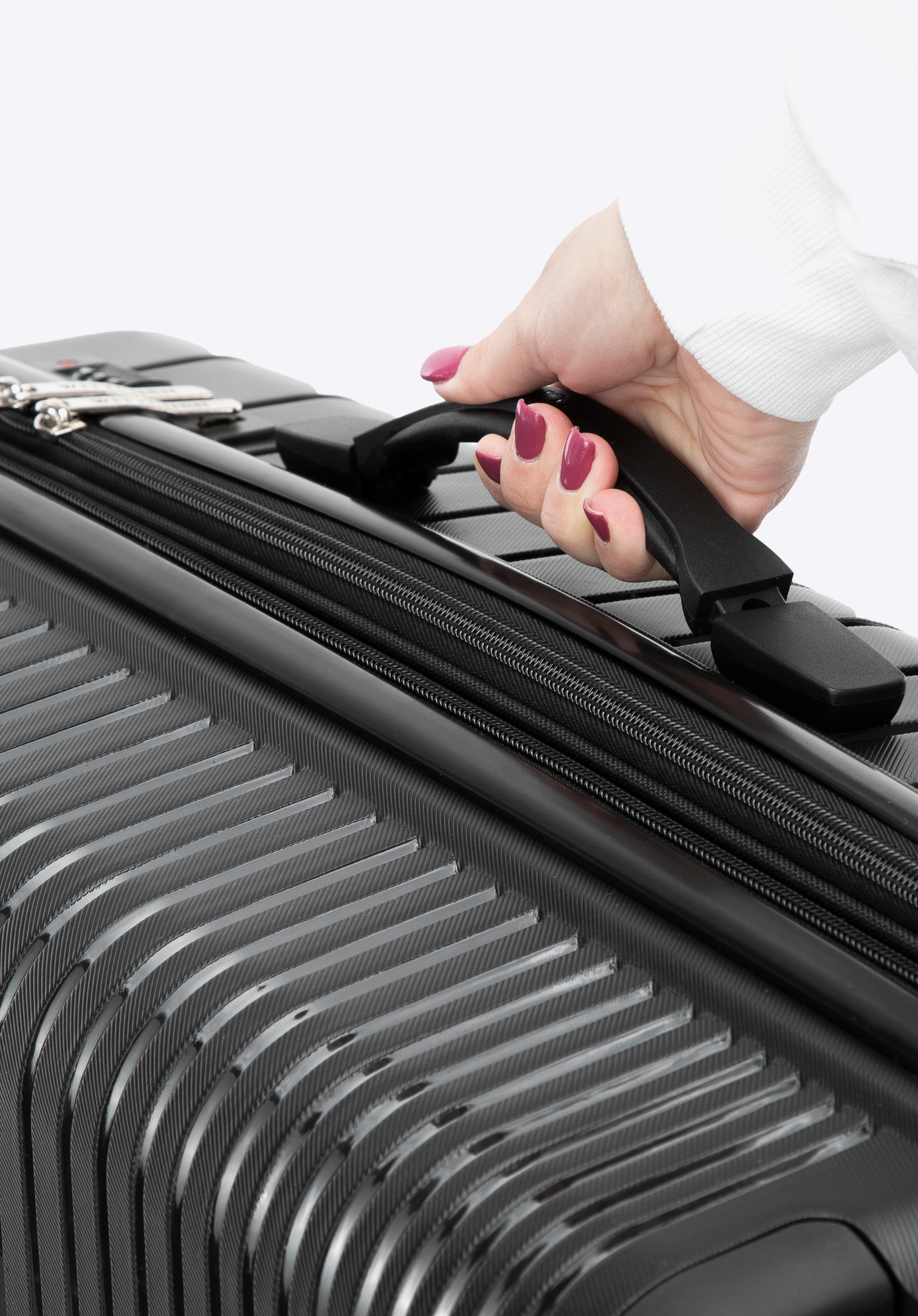 Середня валіза з поліпропілену з блискучими смужками чорна