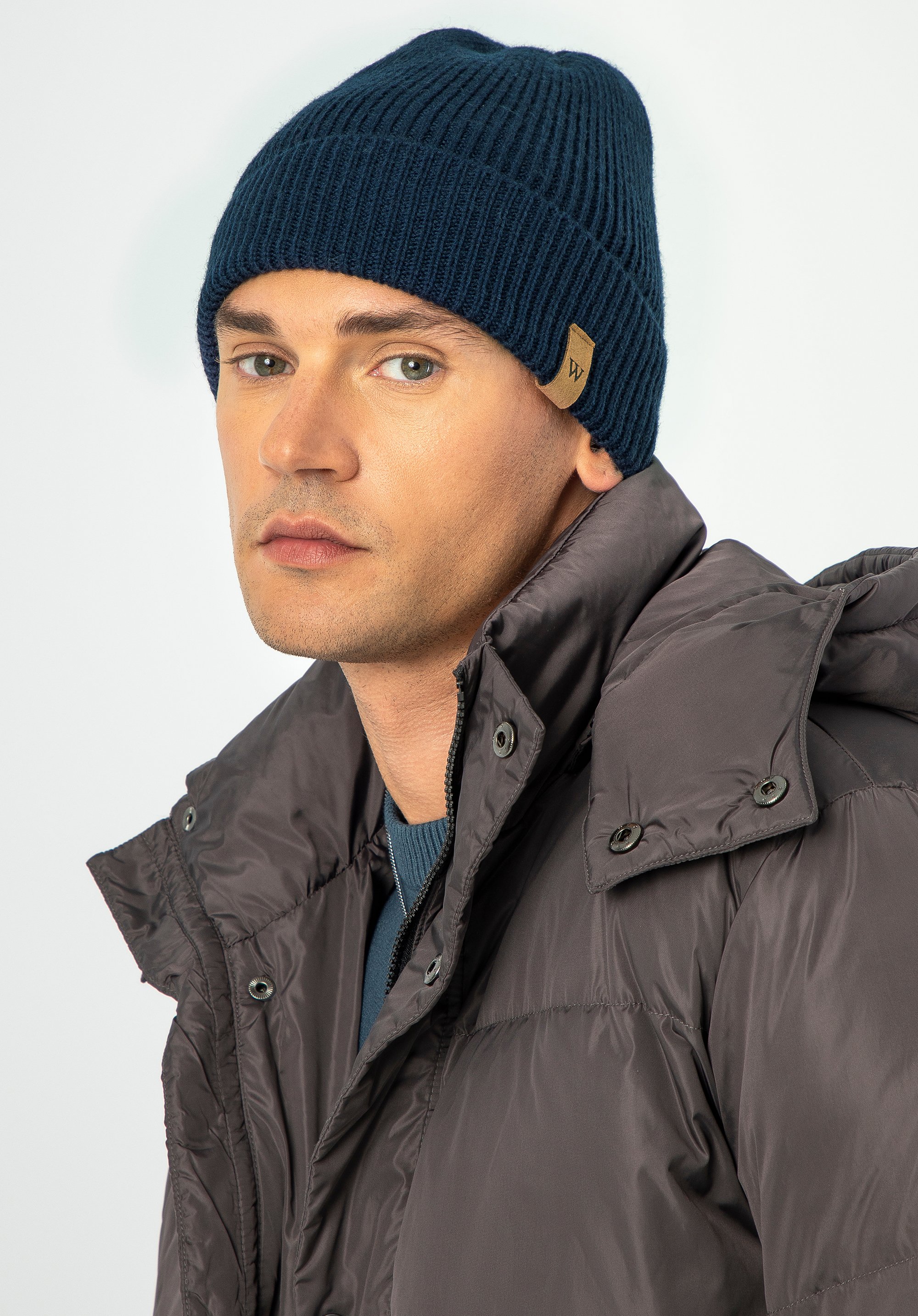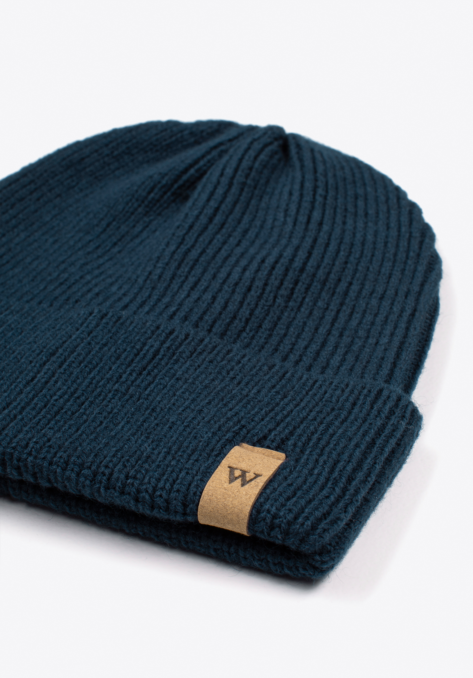 Відкрийте для себе нашу зимову чоловічу шапку біні, виготовлену із суміші вовни та акрилу найвищої якості. Це ідеальне поєднання, яке забезпечить вам комфорт навіть у найхолодніші дні. Ця модель вирізняється своєю простотою та елегантністю, а її мінімалістичний дизайн ідеально впишеться в будь-який стиль. Шапка доповнена підгорнутим відворотом із нашивкою з літерою «W».