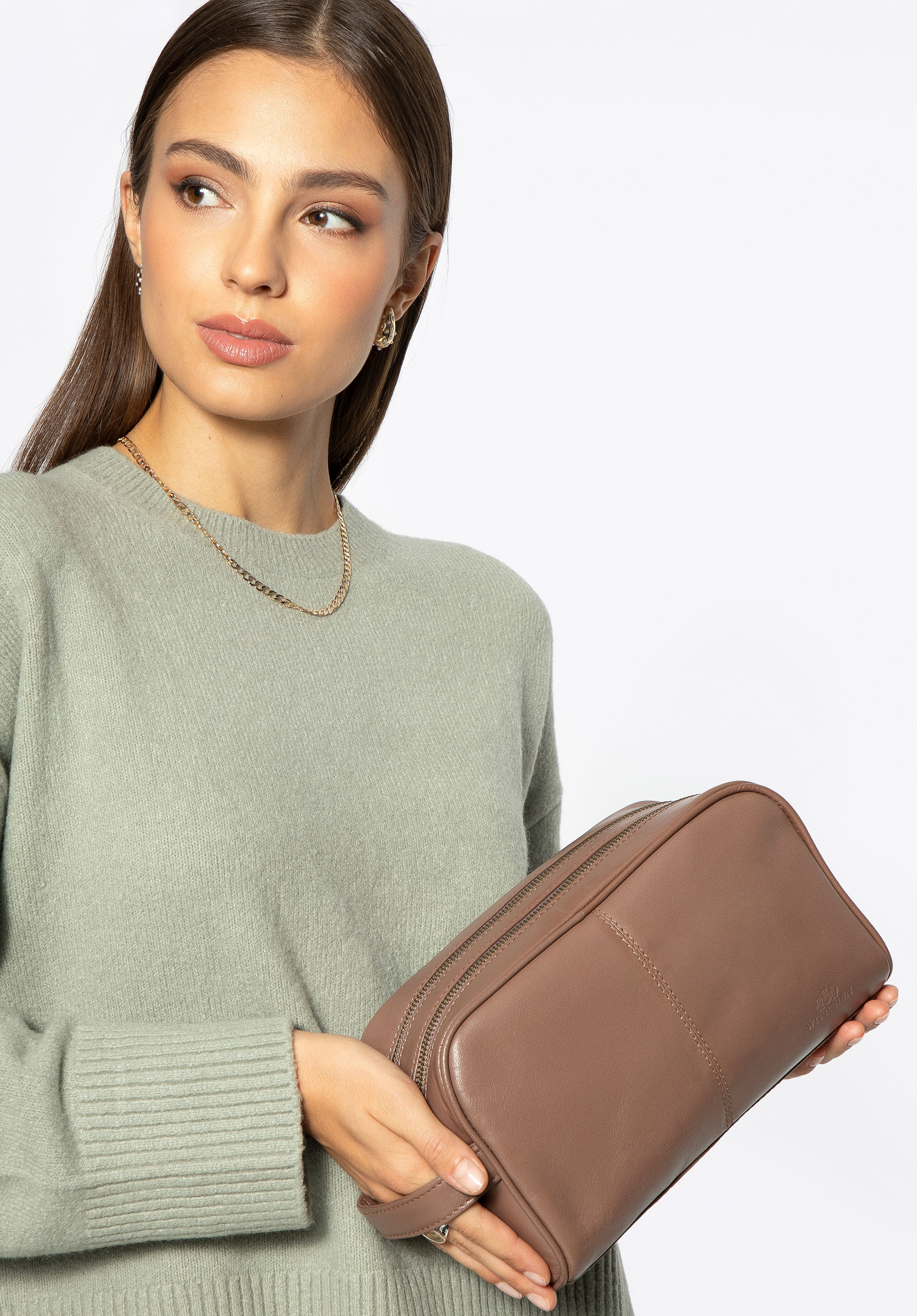 Відкрийте для себе елегантність і функціональність разом з нашою косметичкою Florence - ідеальним супутником для повсякденних подорожей і вечірніх прогулянок. Ця містка шкіряна косметичка створена для жінок, які цінують стиль і порядок.