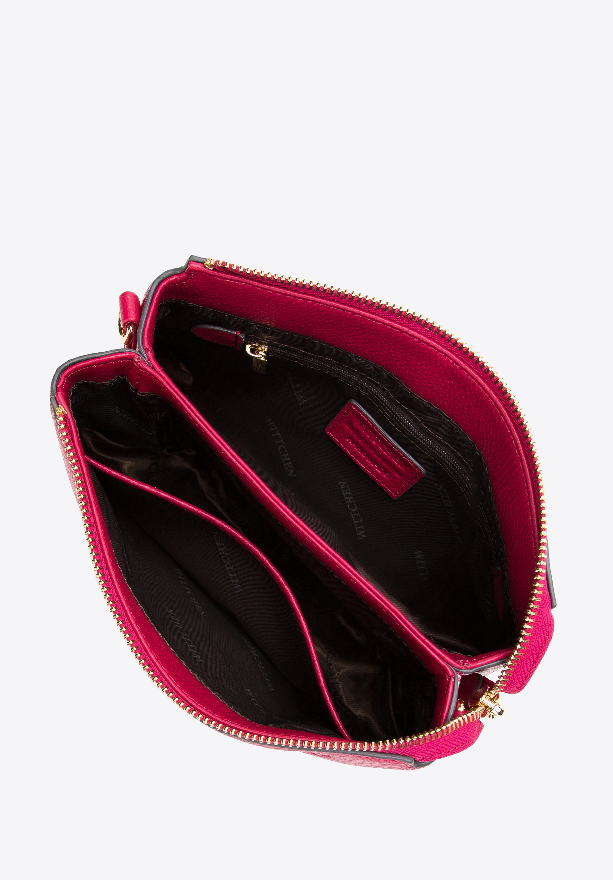 Ця маленька акуратна сумка доповнить будь-який одяг. Вона виготовлена з високоякісної натуральної шкіри з тисненням монограми WITTCHEN, відомої з колекції Signature. Оригінальна трапецієподібна форма виділяє два відділення, де можна легко сховати речі. Всередину можна помістити гаманець, телефон, серветки, улюблену губну помаду та кілька дрібниць - ідеально підійде для весілля, походу з друзями чи в кінотеатр. Носіть її з гладкою коктейльною сукнею або додайте шику улюбленим джинсам і сорочці. Шкіряна міні-сумка з двома відділеннями з тисненням монограми — незамінний аксесуар, який варто мати у своєму гардеробі.