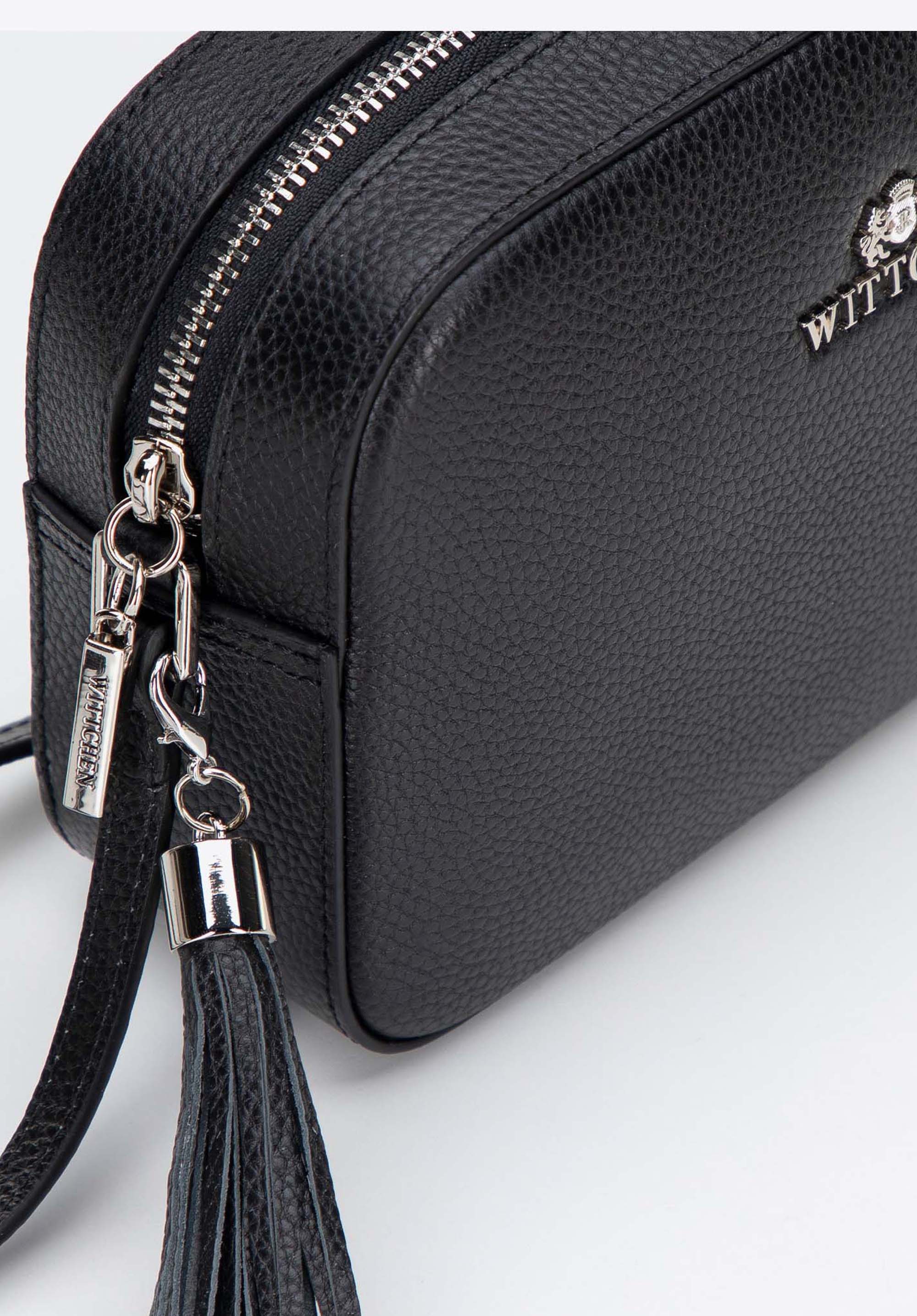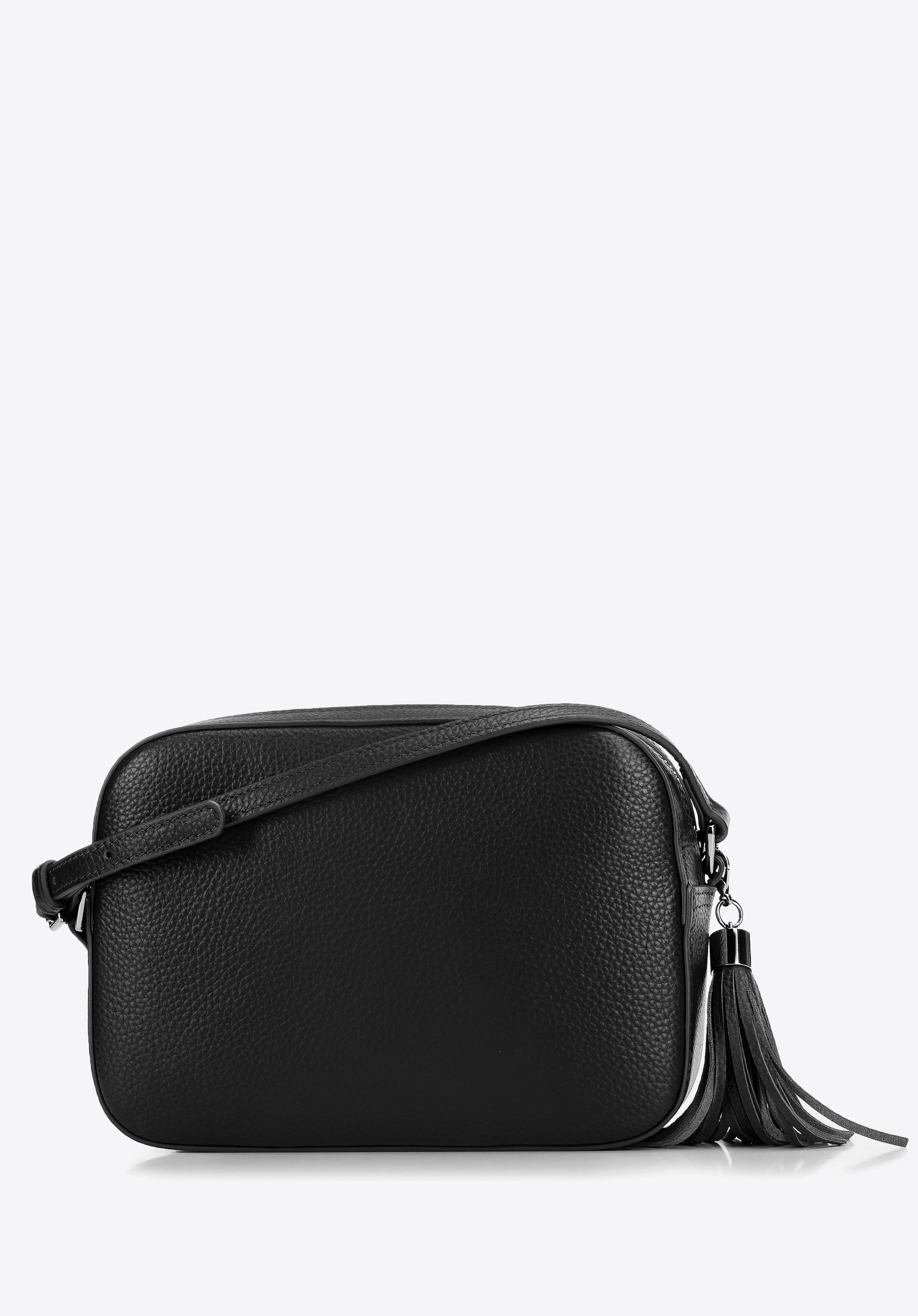 Шкіряна сумка через плече з китицею Колір: чорно-срібний