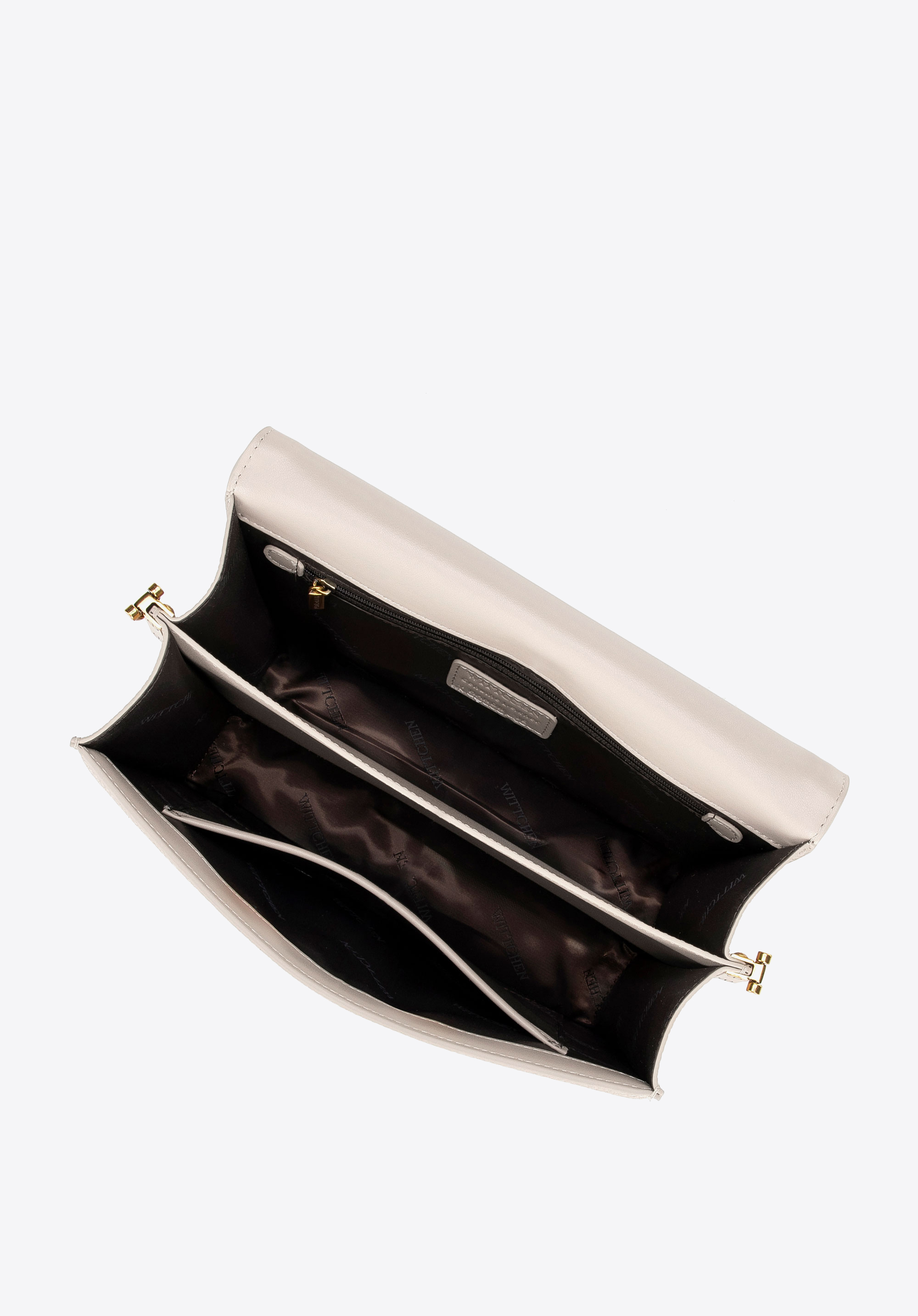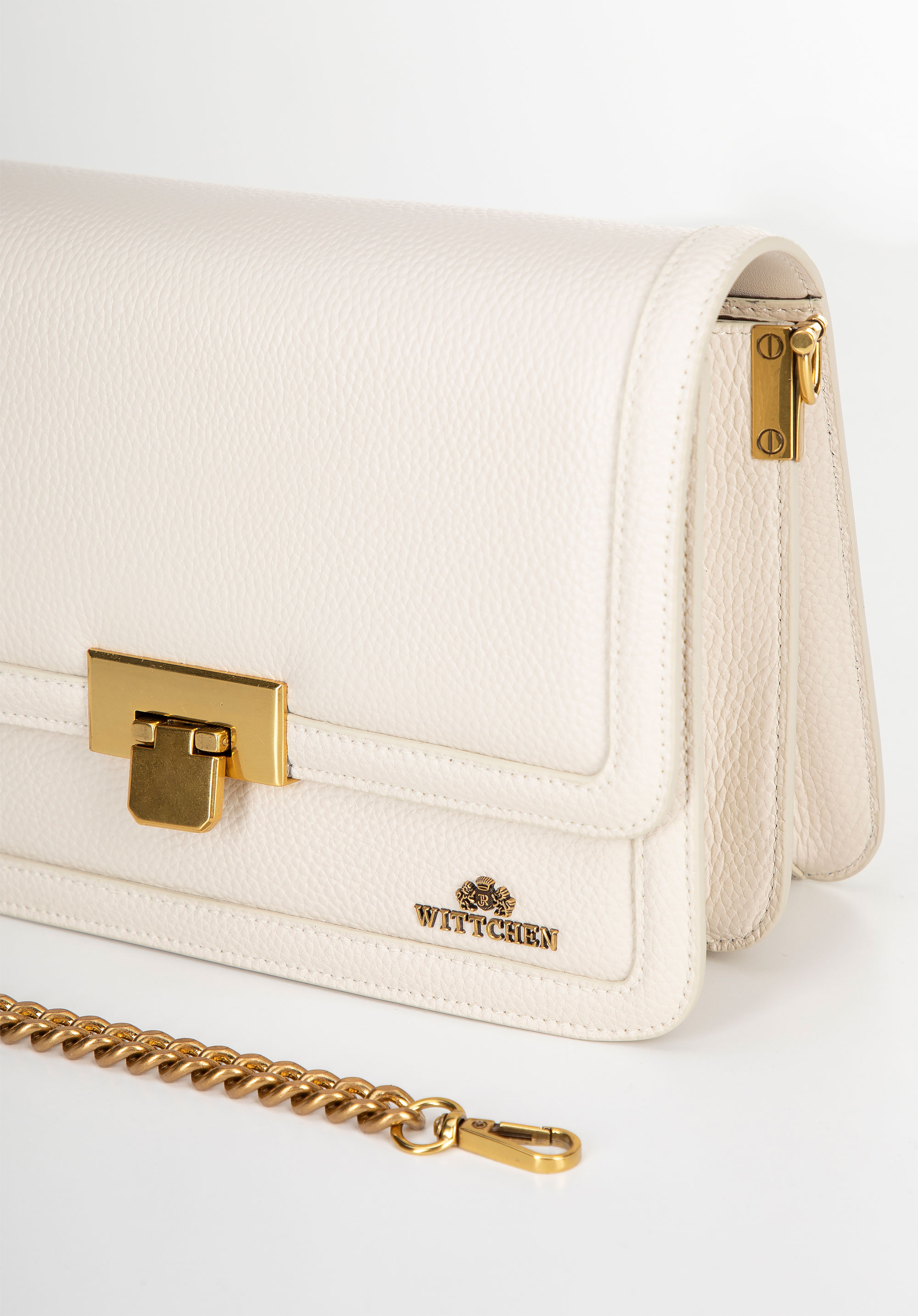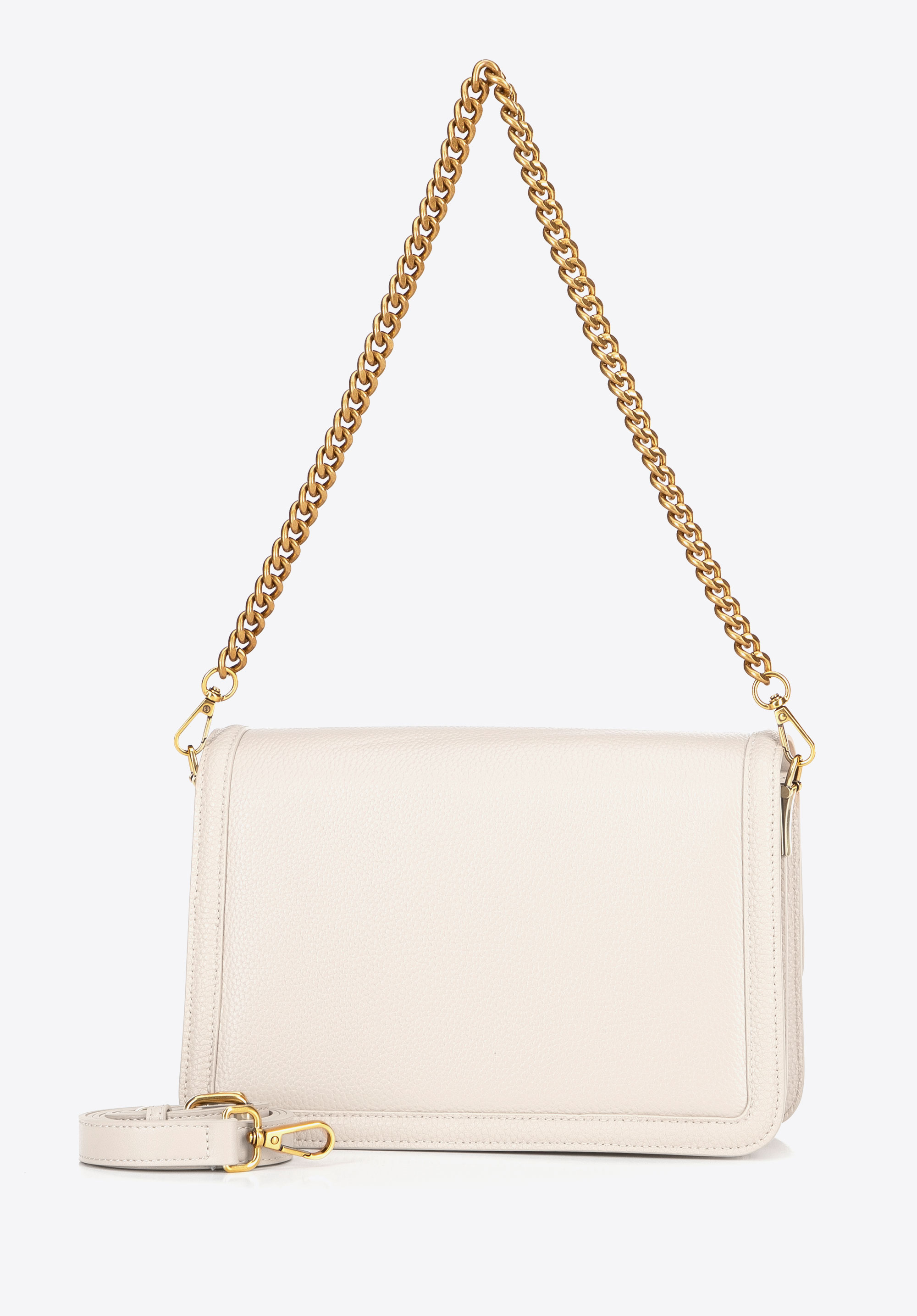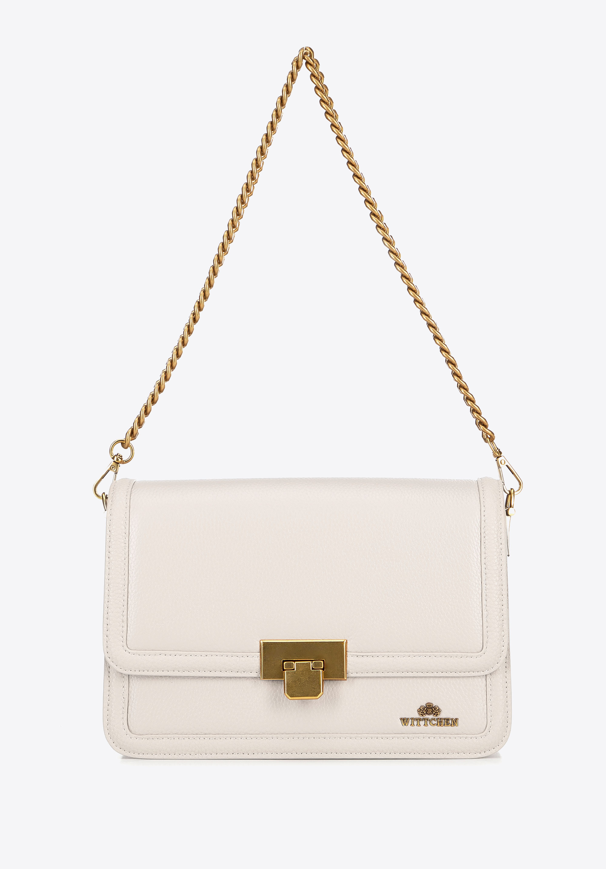 Шкіряна сумка через плече з ланцюжком кремова