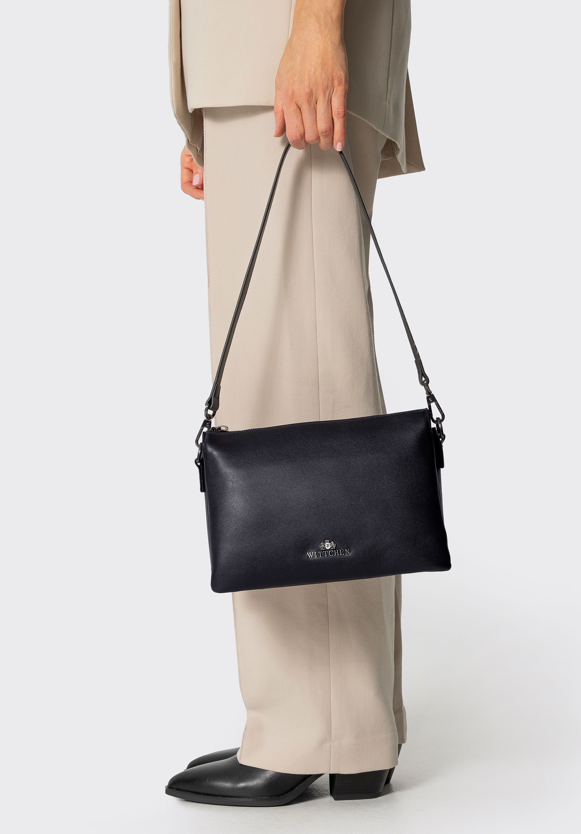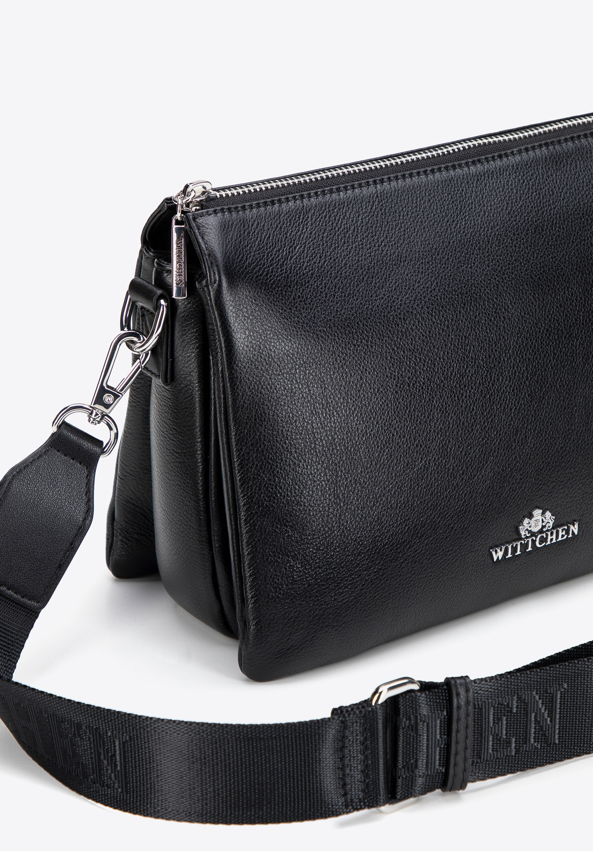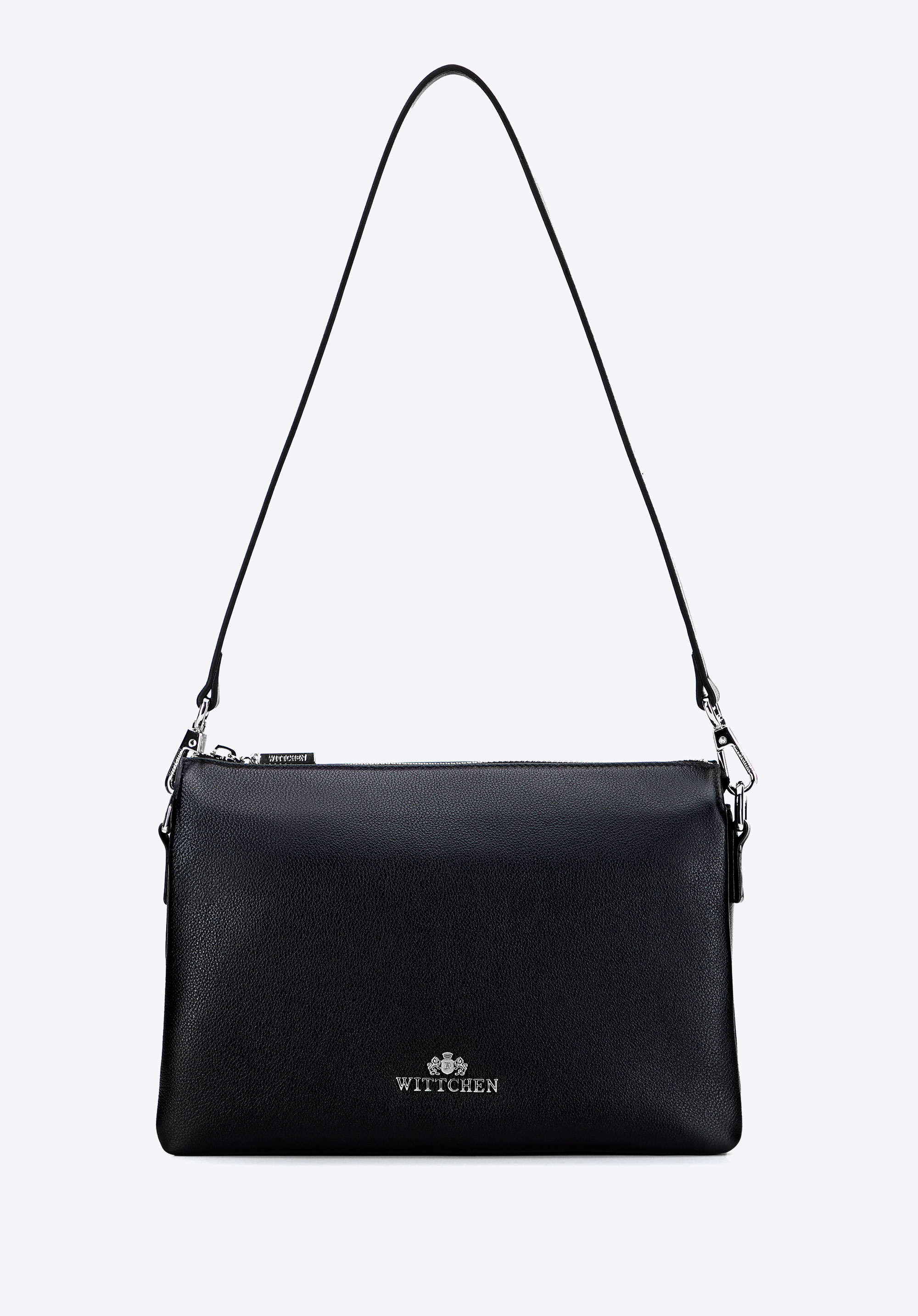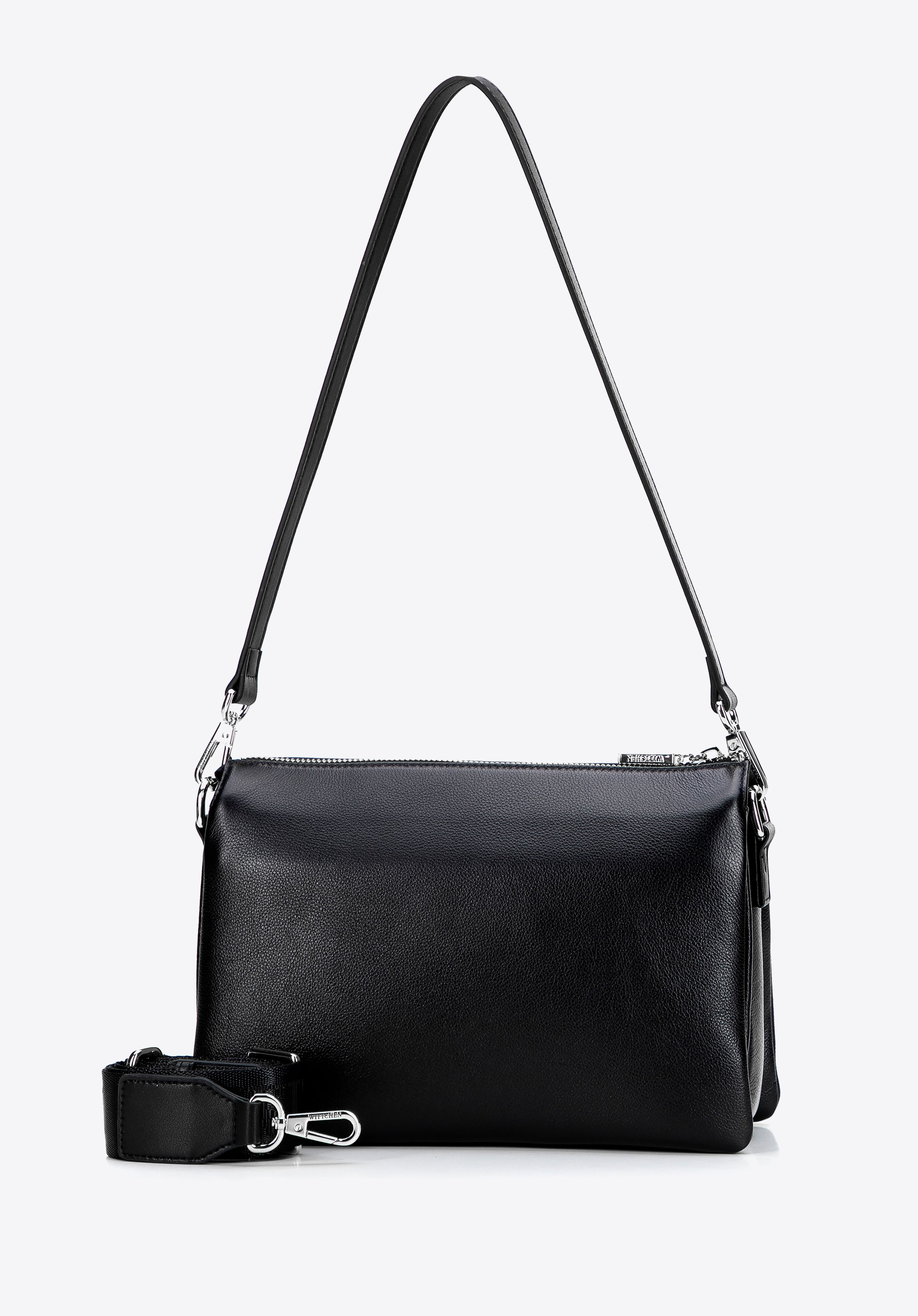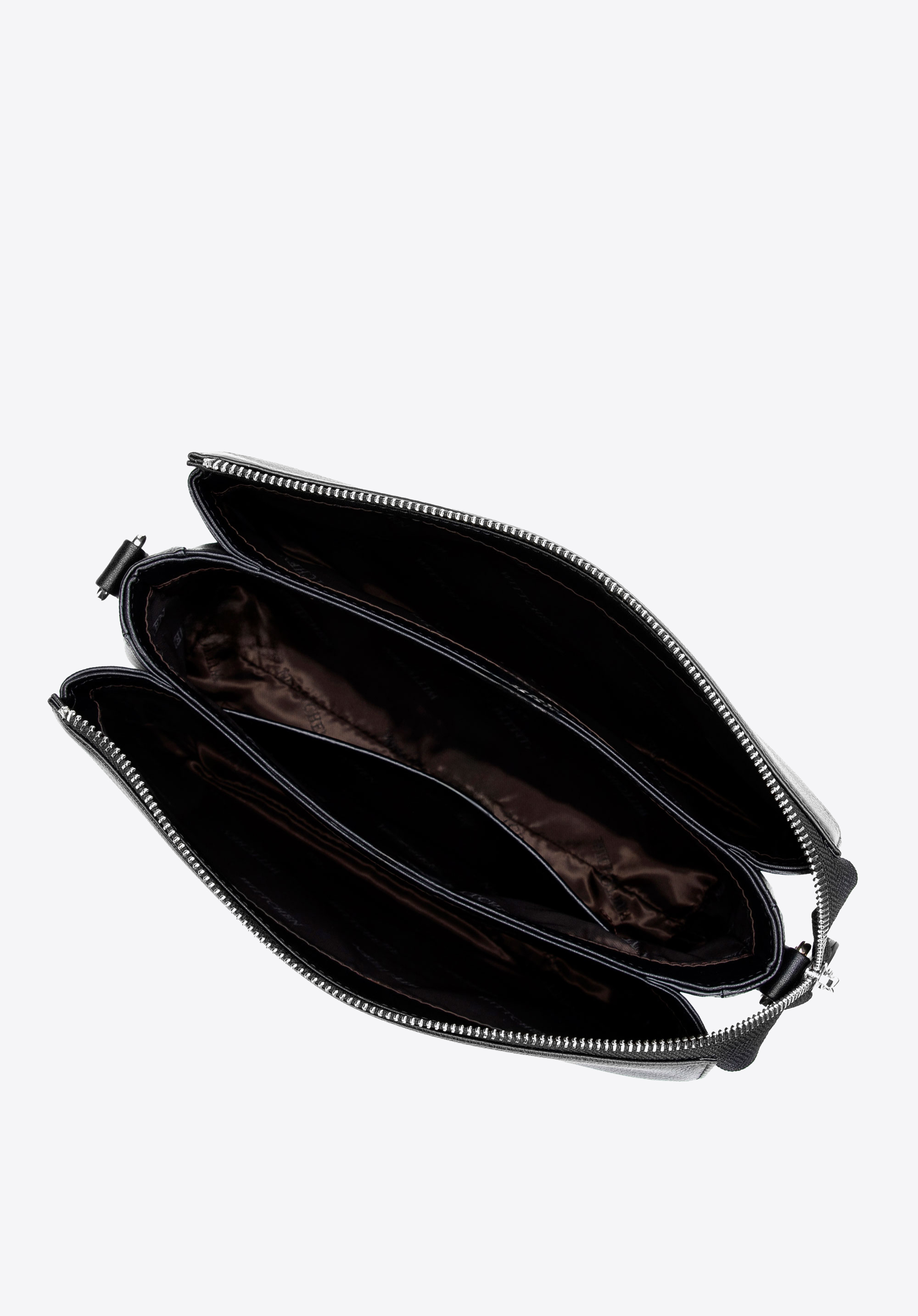 Шкіряна сумка через плече з трьома відділеннями чорно-срібна