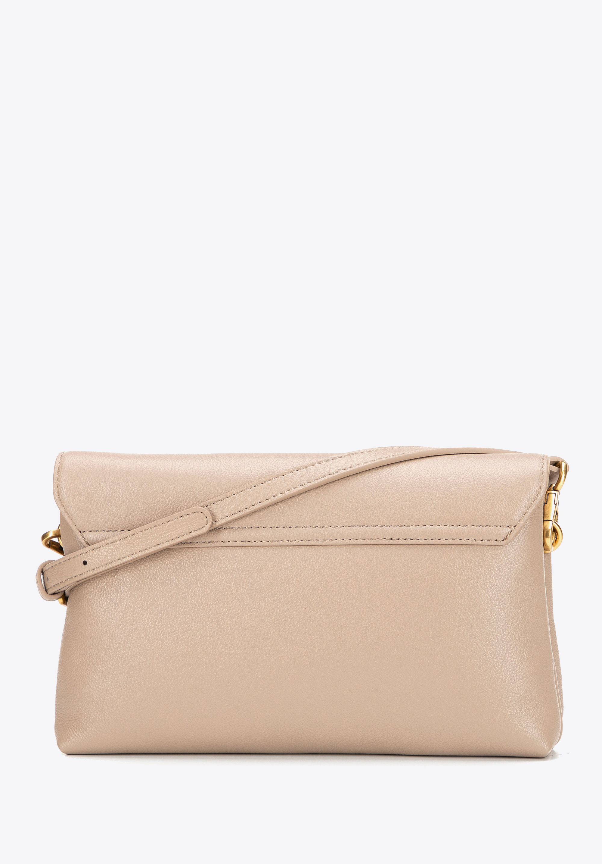 Елегантна сумка через плече , виготовлена з високоякісної натуральної шкіри , що поєднує функціональність з позачасовим стилем. Її компактний розмір робить її ідеальною для перенесення предметів першої необхідності, не перевантажуючи ваш образ. Передня частина оздоблена тонким написом бренду та характерною центральною строчкою , що підкреслює її вишуканий дизайн. Клапан із магнітною застібкою забезпечує швидкий та безпечний доступ до внутрішньої частини.