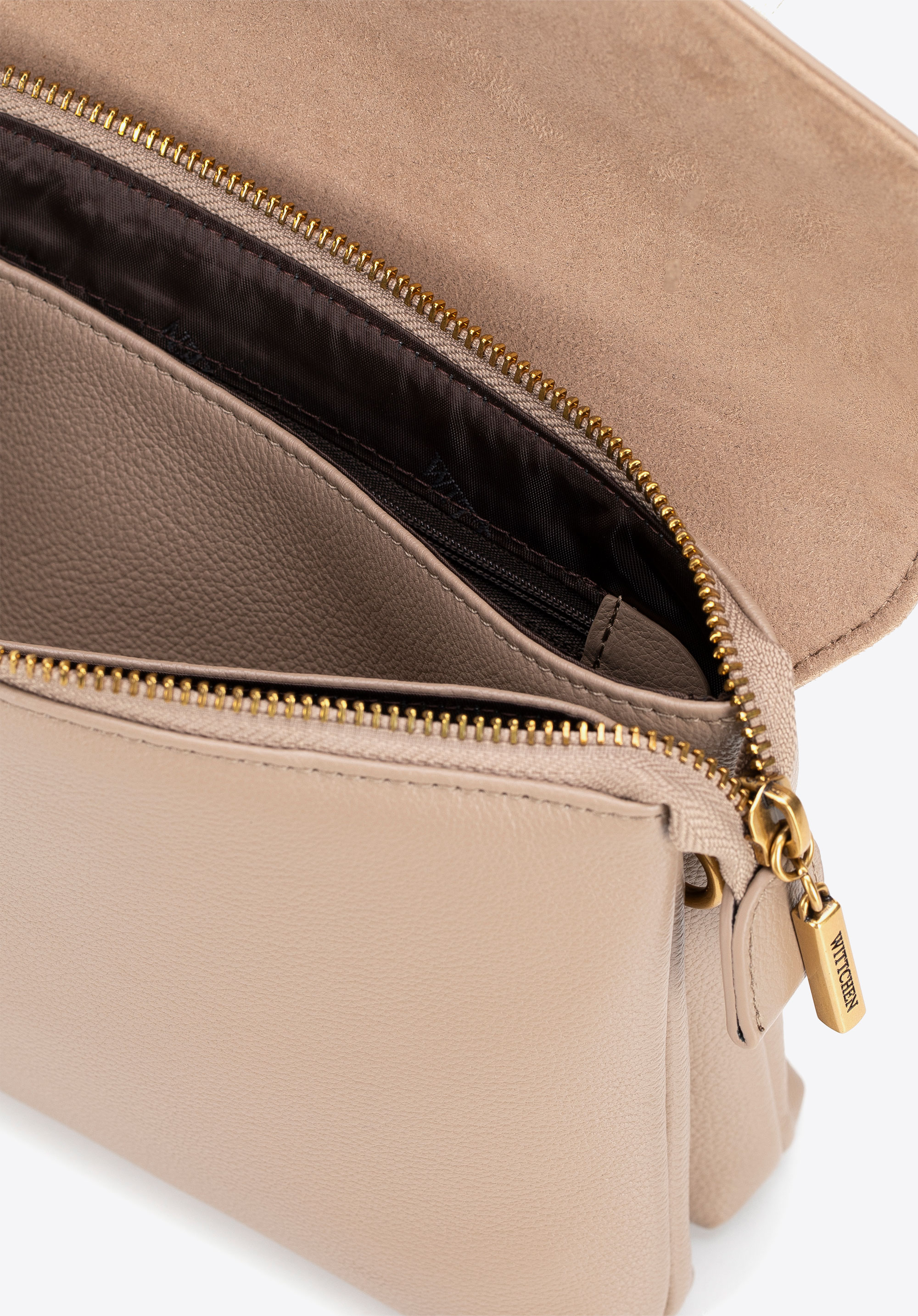 Класична шкіряна сумка через плече з центральною строчкою – повсякденна елегантність