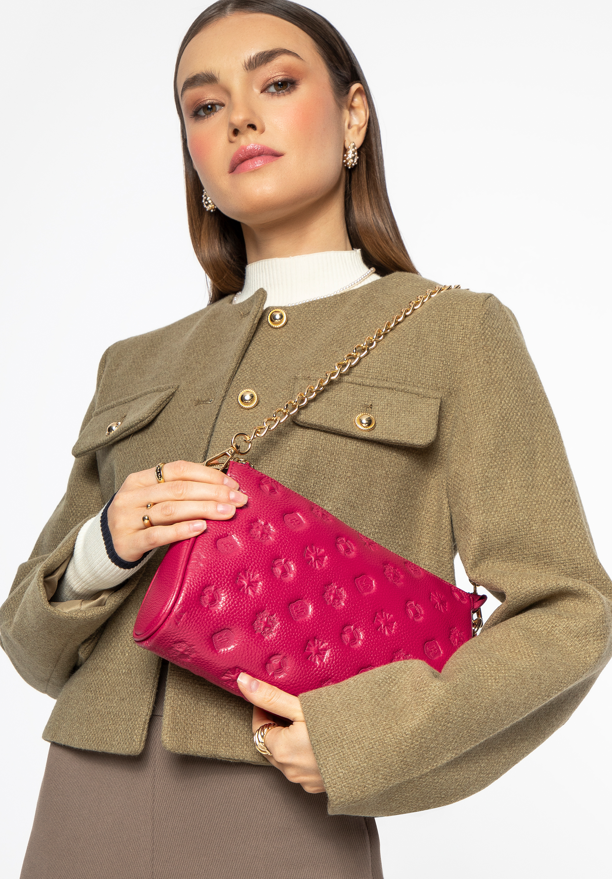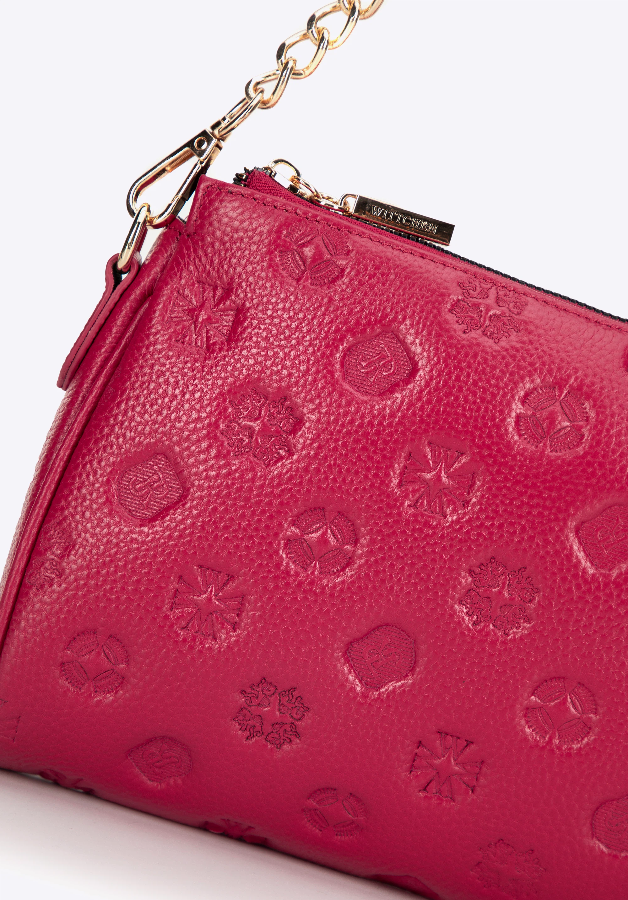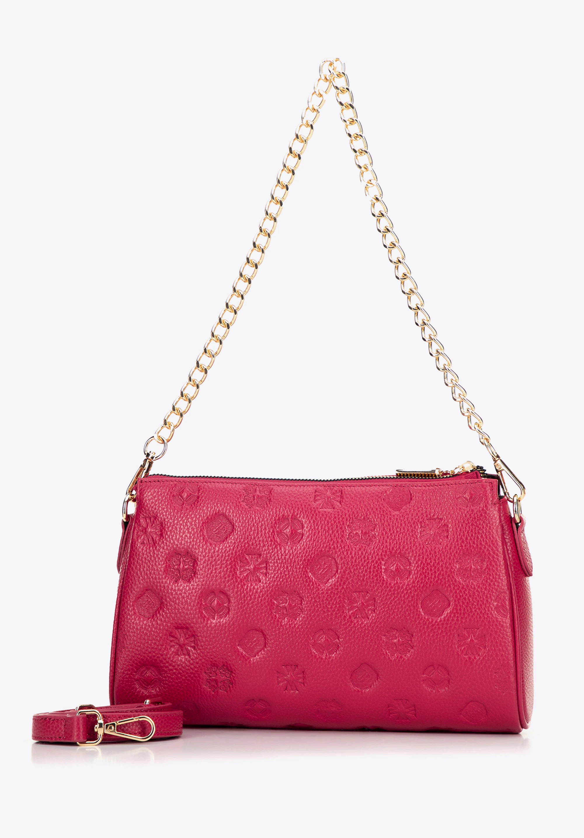 Шкіряна сумка через плече з тисненням Колір: малиновий