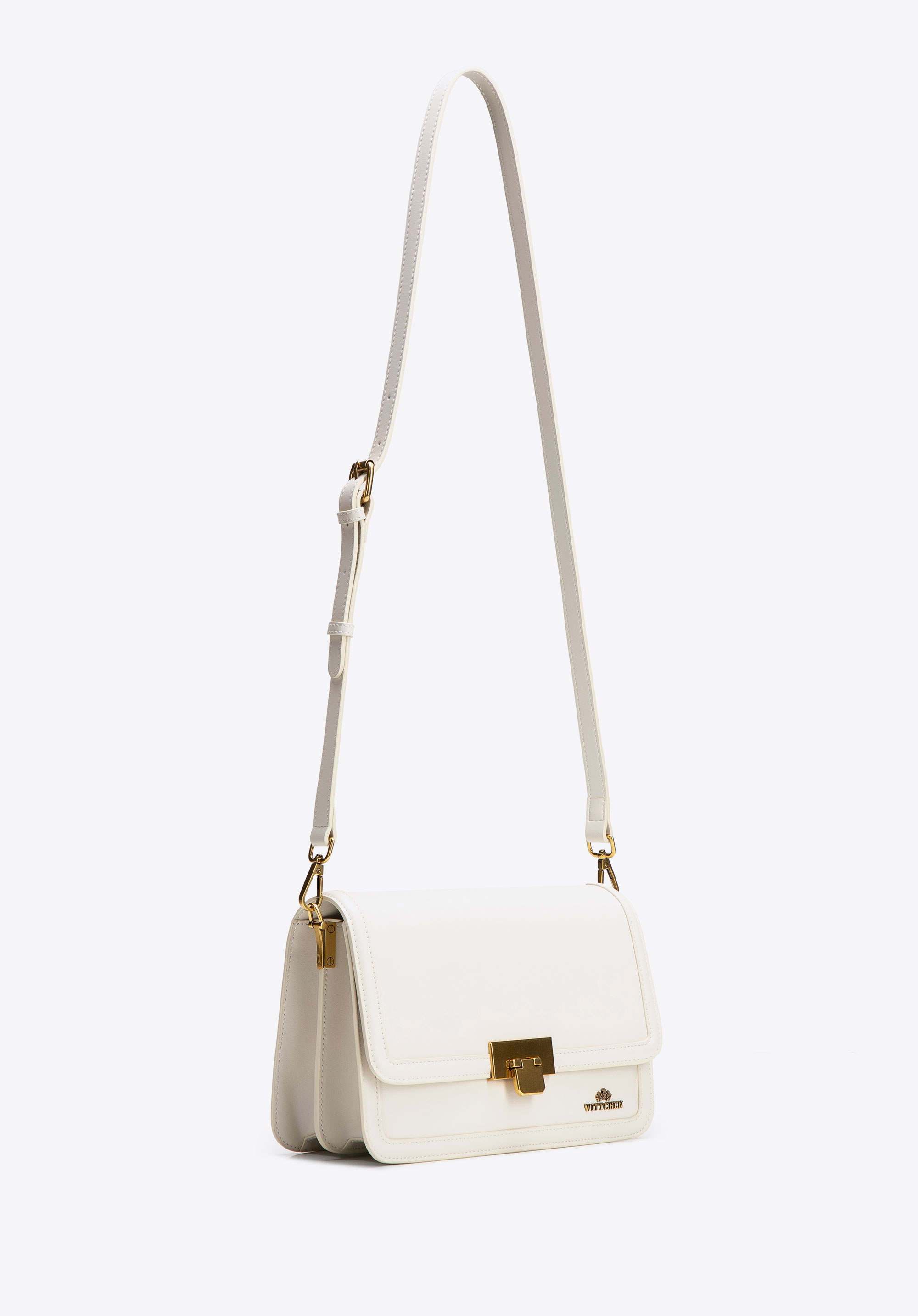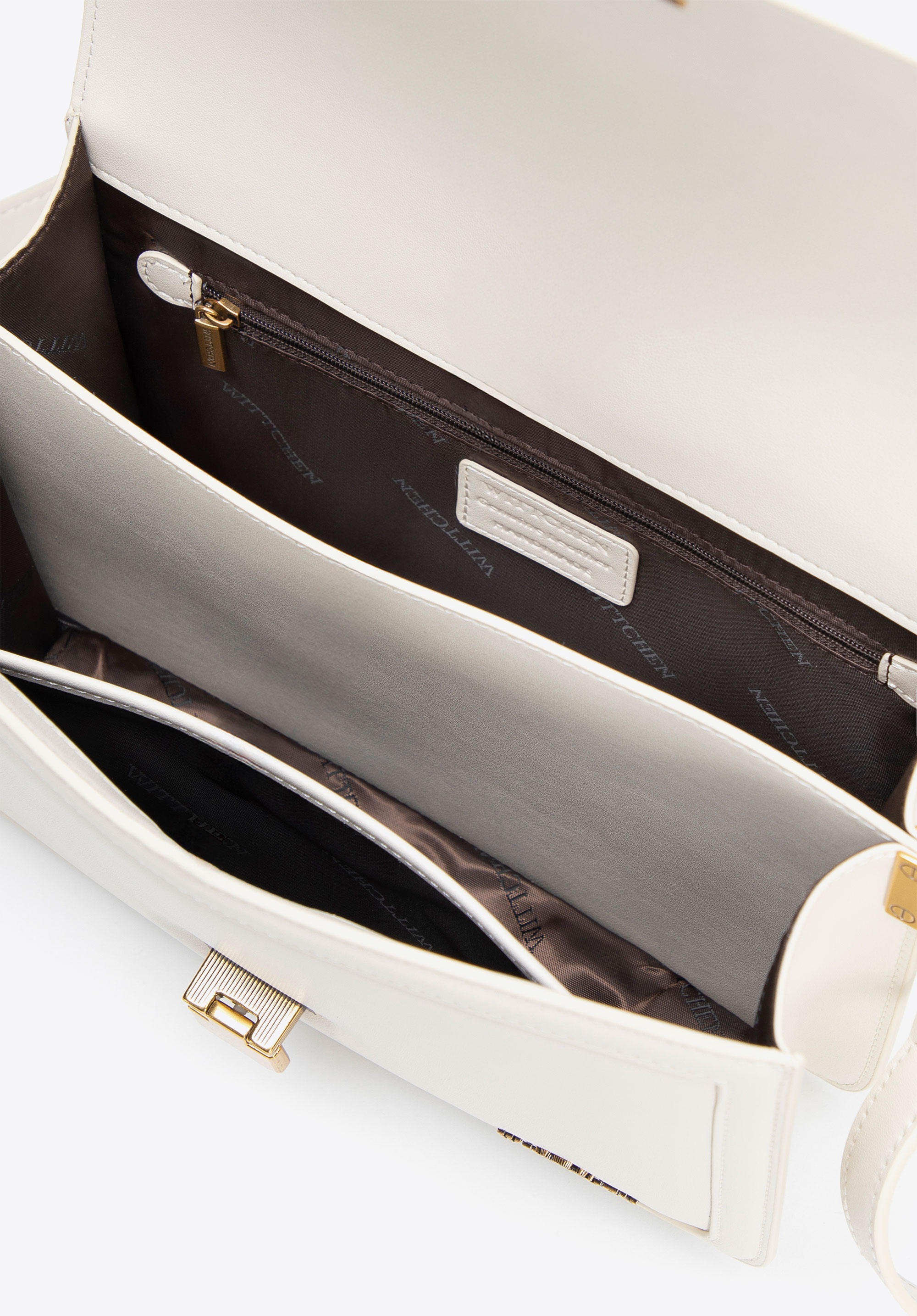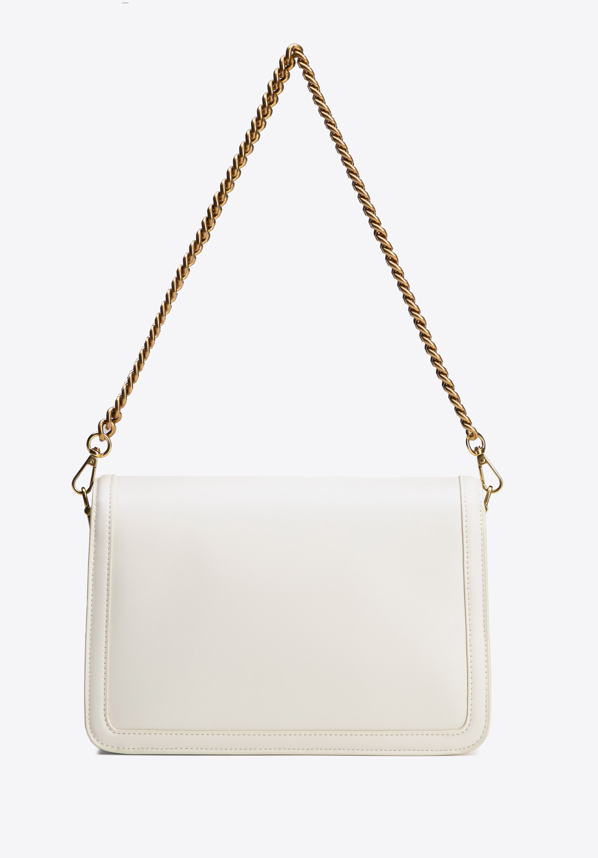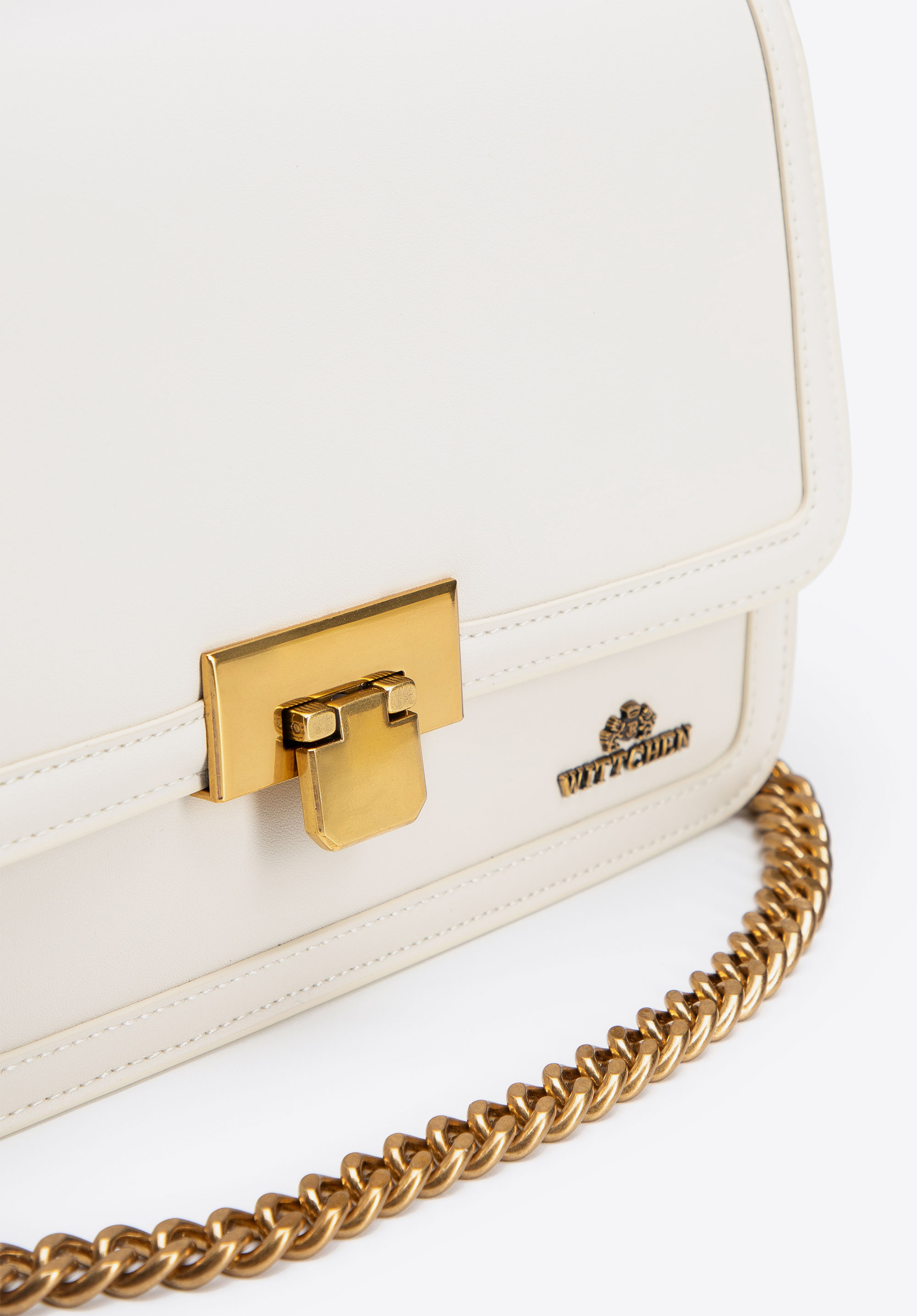 Шкіряна сумка через плече зі знімним ланцюжком кремова