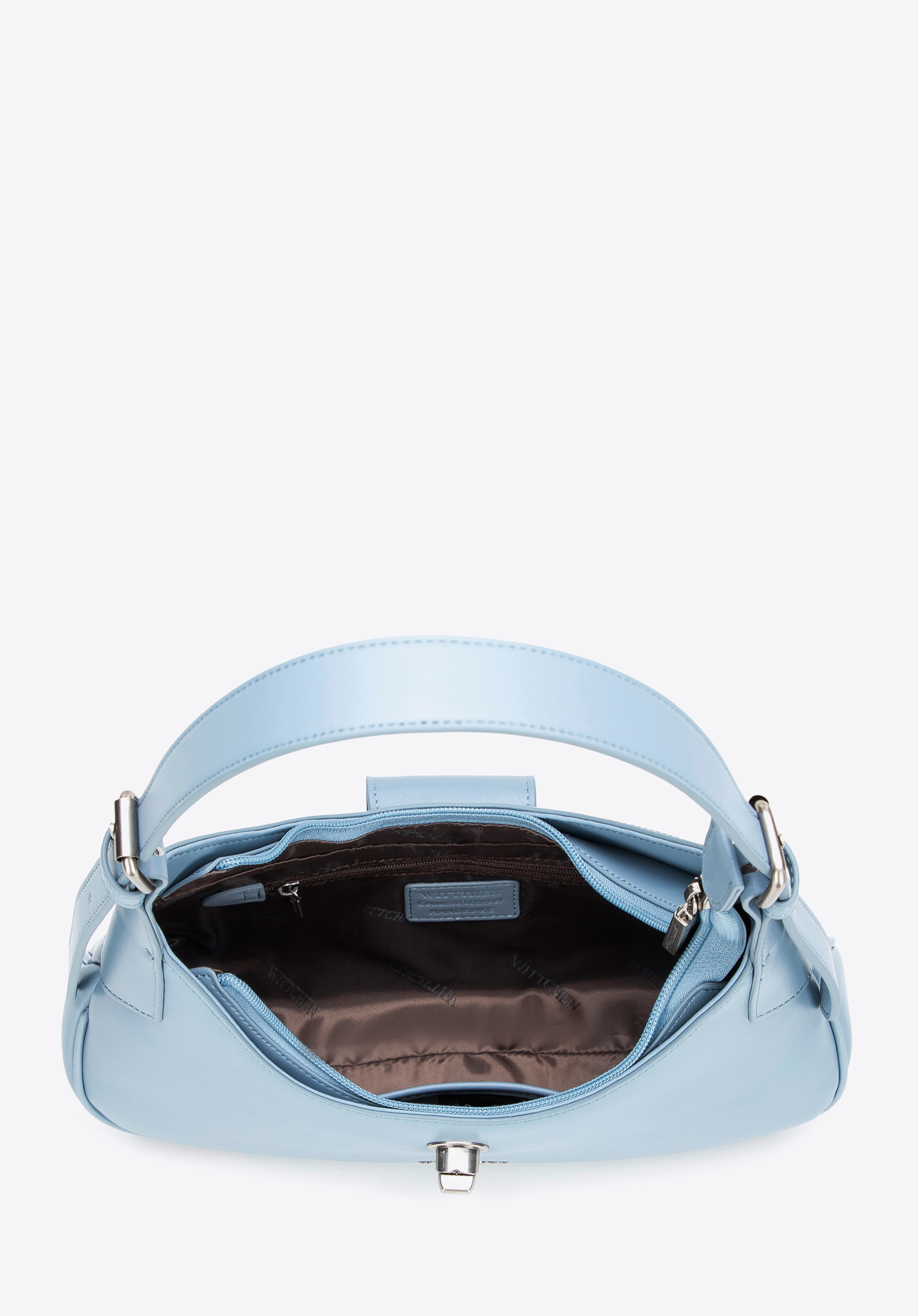 - Логотип бренду: розташований на передній частині та фурнітурі, підкреслюючи позачасовий дизайн.