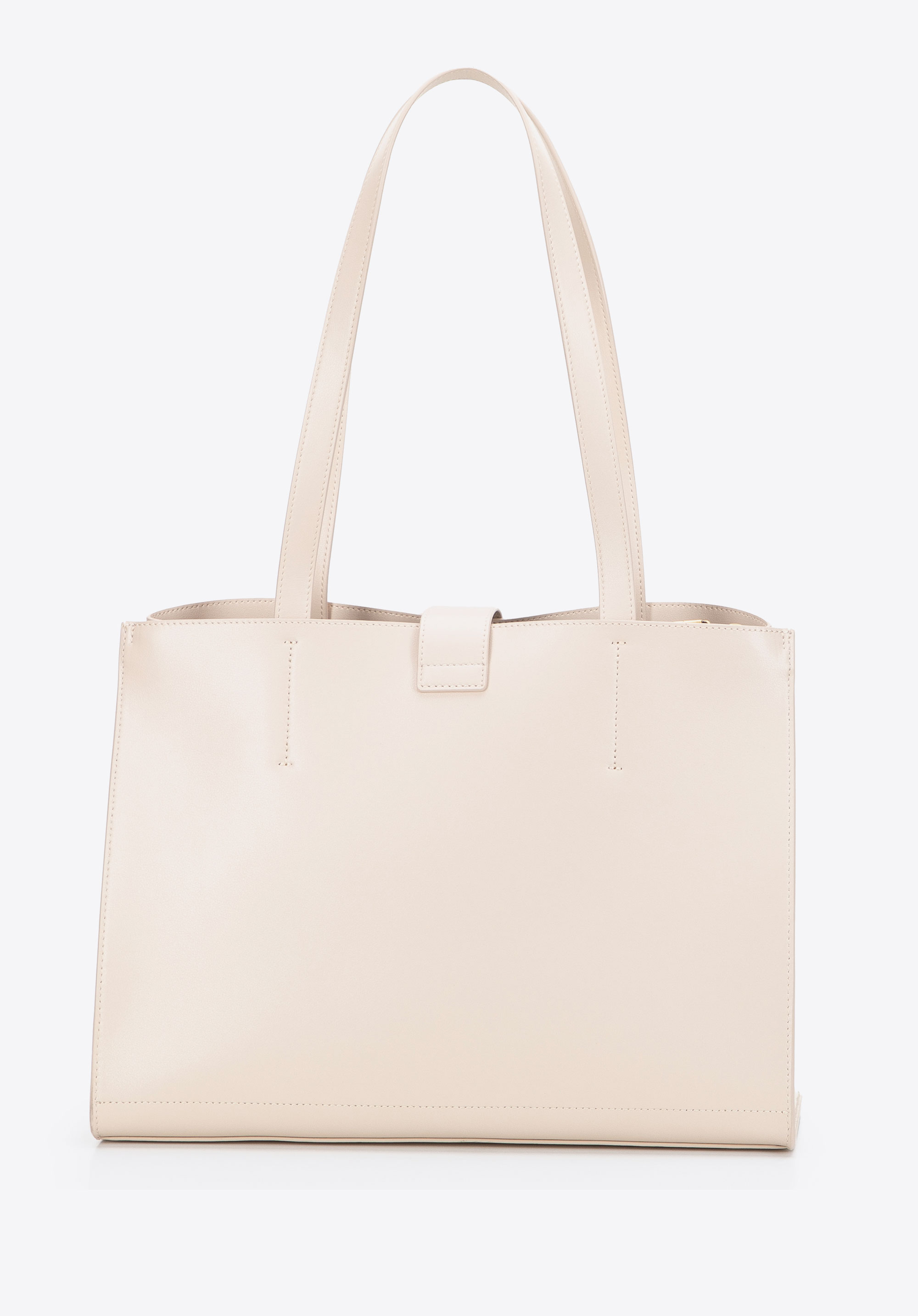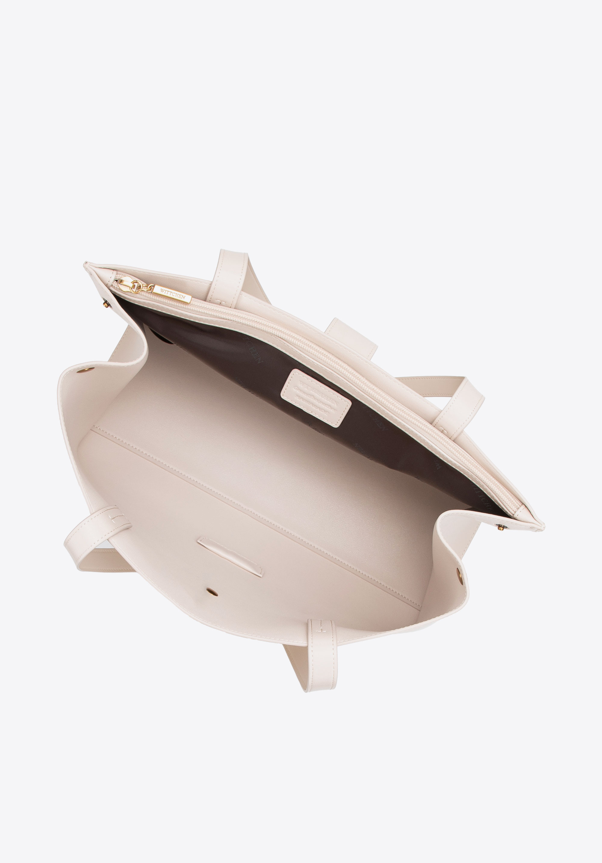 Вічний дизайн поєднується з практичністю. Ця елегантна сумка-шоппер з натуральної шкіри поєднує класичний стиль із щоденною зручністю, а ручки та декоративний ремінь з мікрофібри, що імітує шкіру, додають легкості та витонченості. Завдяки добре продуманій організації з двома відділеннями з кишенею на блискавці ви завжди можете тримати необхідні речі під рукою. Бічні кнопки дозволяють регулювати форму сумки відповідно до вашого стилю та потреб. Закривається на ремінець із магнітною застібкою, що гарантує безпеку вмісту, а логотип виробника спереду підкреслює елегантність аксесуару.