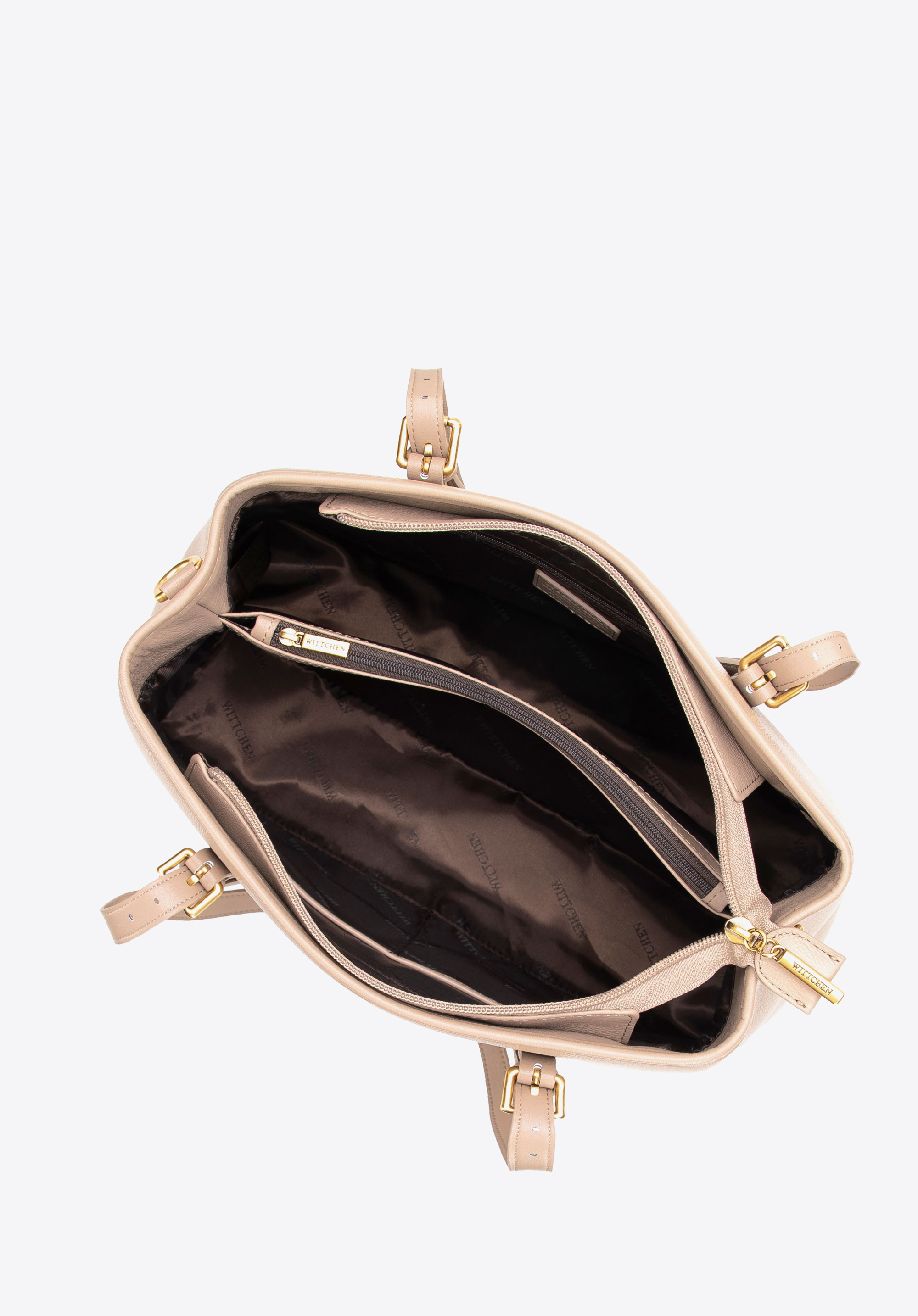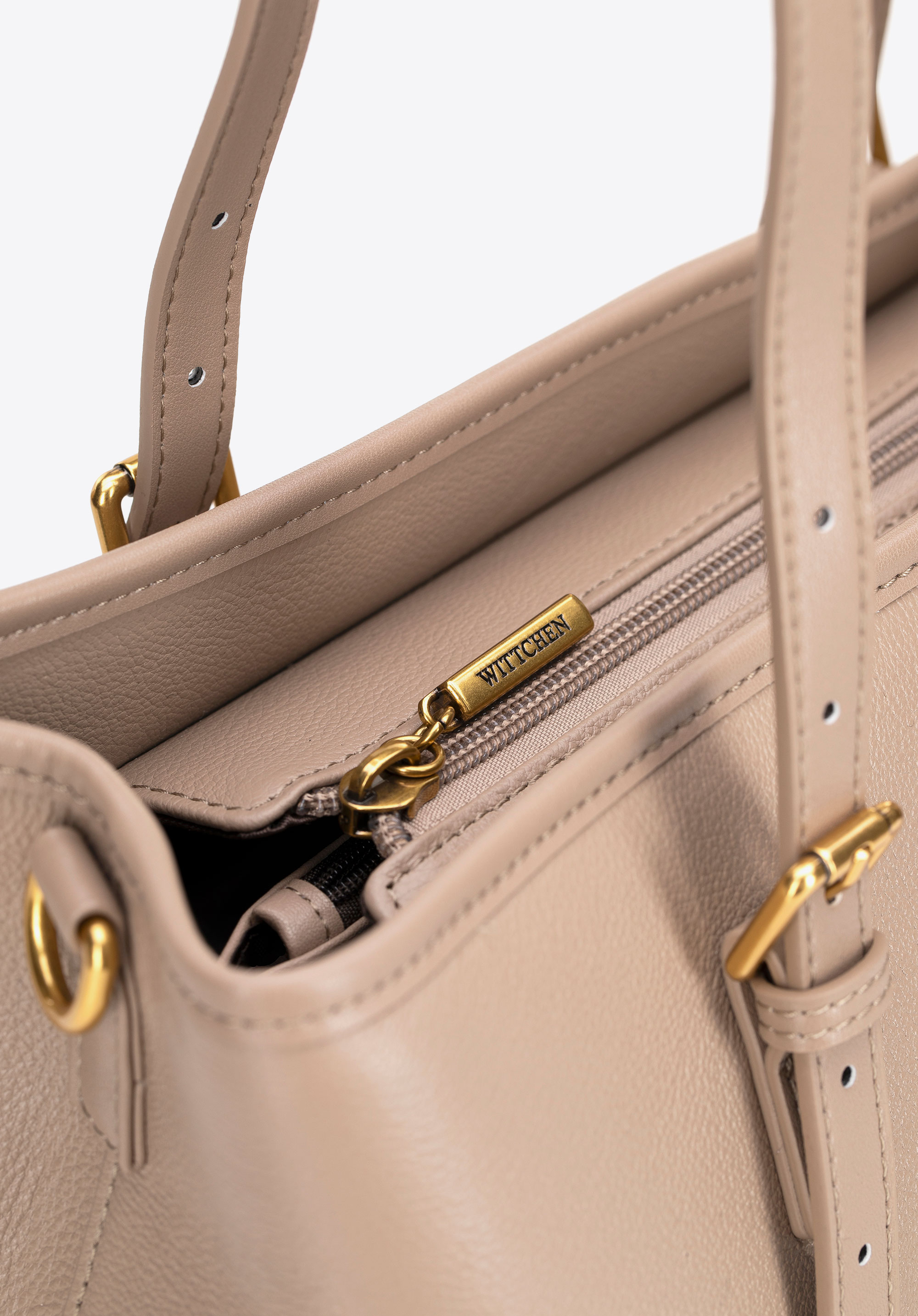 - Матеріал: Натуральна шкіра – елегантна, міцна та приємна на дотик. Ручки та внутрішнє оздоблення виконані з мікрофібри, що імітує шкіру — для зручності, легкості та довговічності.
