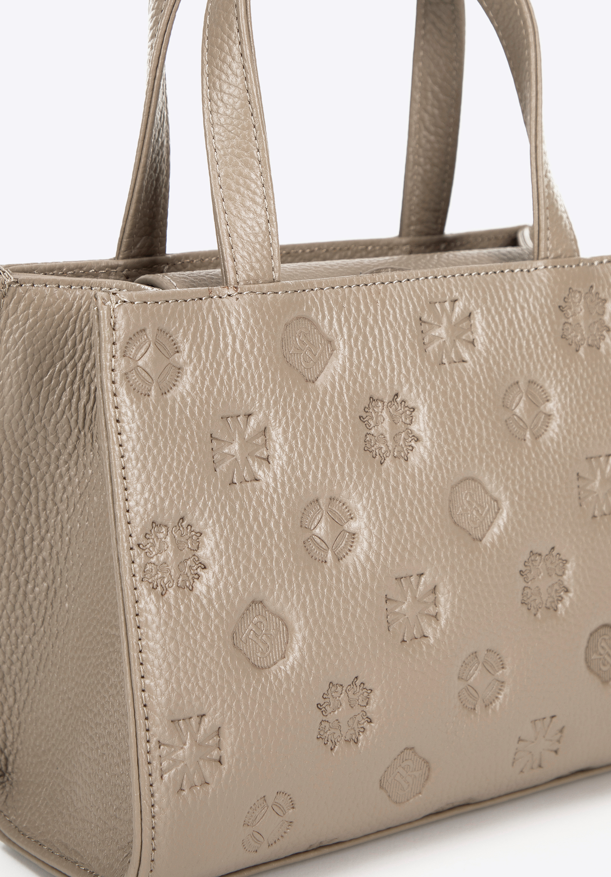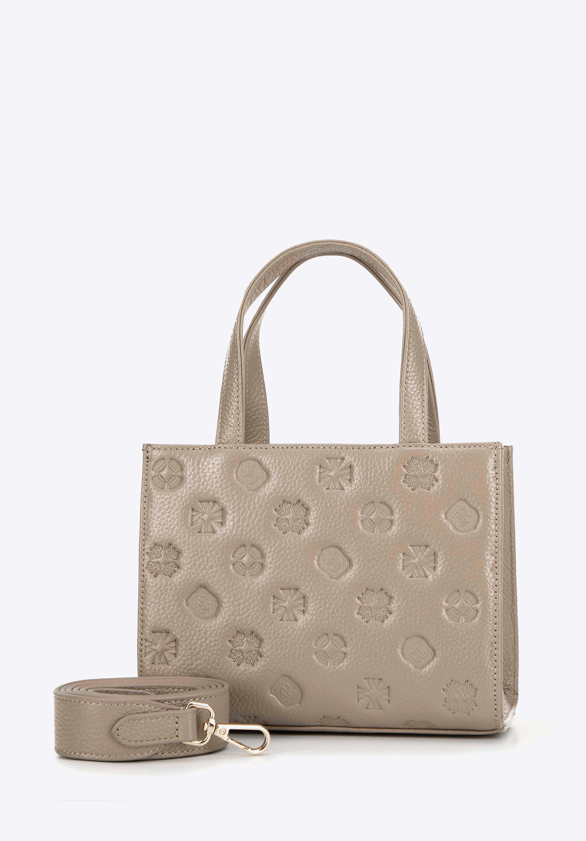 Додайте в свою колекцію цю стильну сумку, виготовлену з натуральної шкіри з тисненим логотипом бренду. Ідеально підходить для жінок, які цінують стиль і функціональність, ця сумка поєднує в собі елегантність і практичність. Завдяки двом ручкам і знімному ремінцю ви можете носити її в руці або через плече, адаптуючись до будь-якої ситуації. Магнітна застібка забезпечує легкий доступ, а відкрита кишеня та кишеня на блискавці забезпечують надійне та організоване зберігання ваших необхідних речей.
