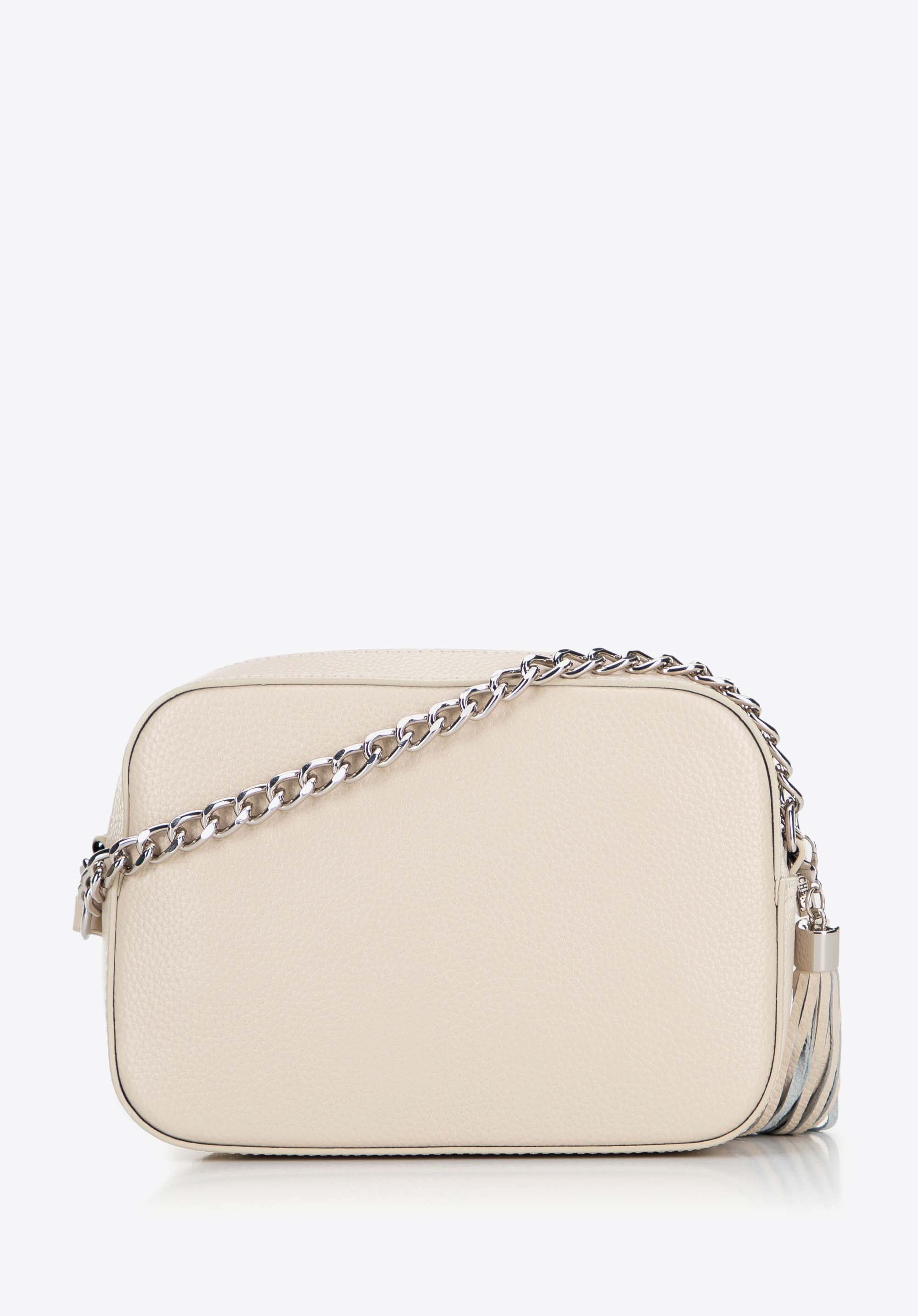 Шкіряна жіноча сумка через плече на ланцюжку біло-сіра