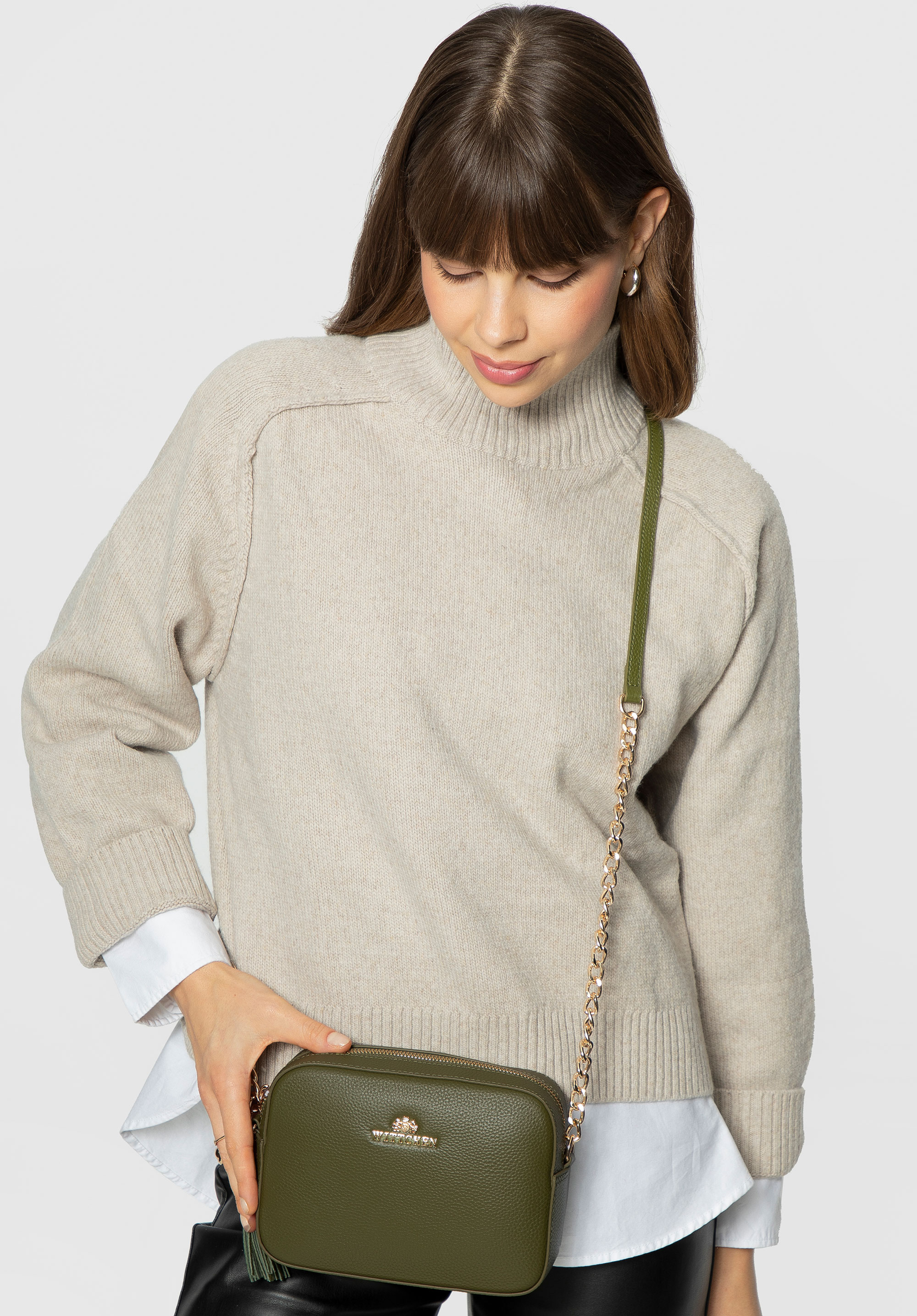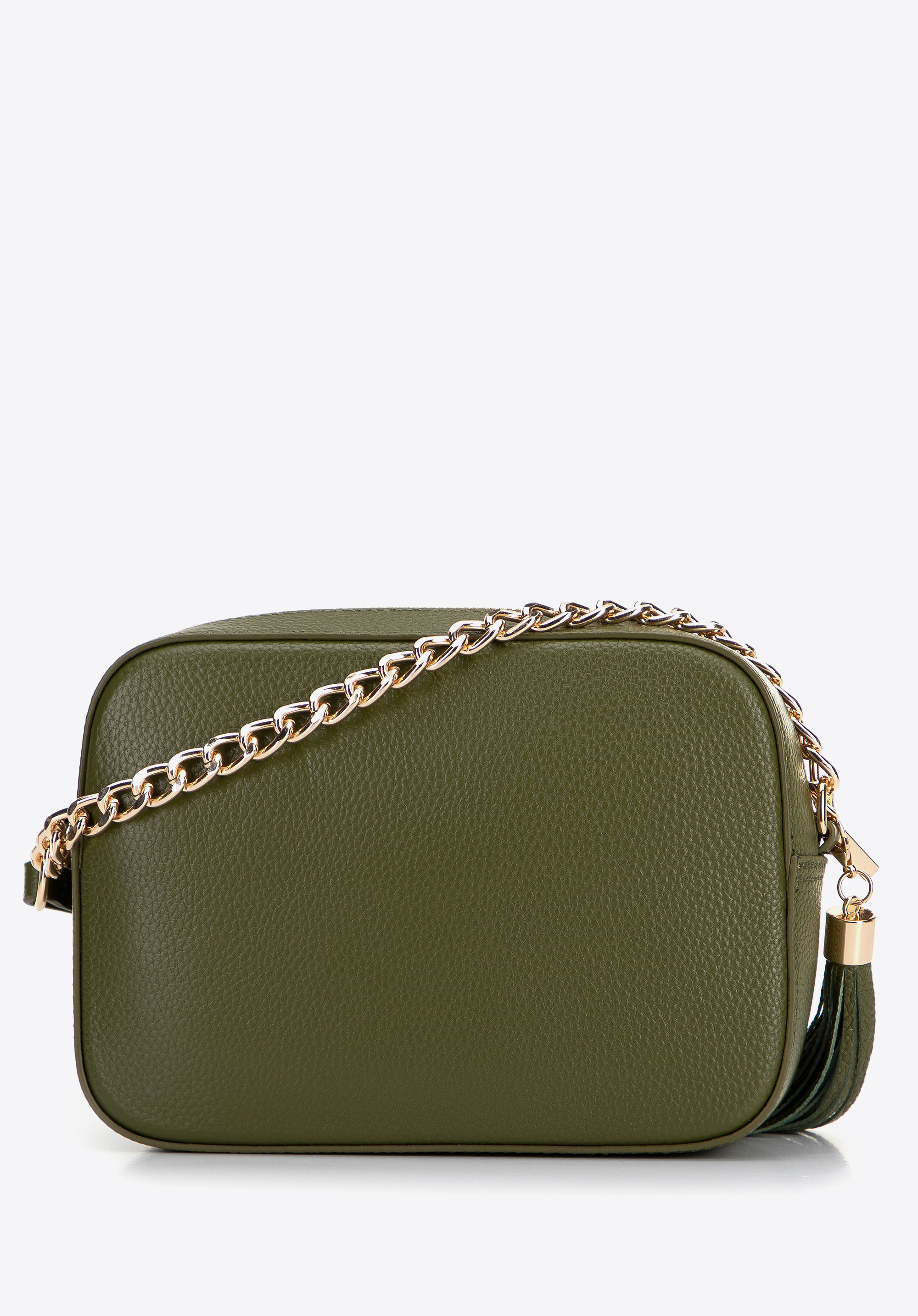 Шкіряна жіноча сумка через плече на ланцюжку зелена