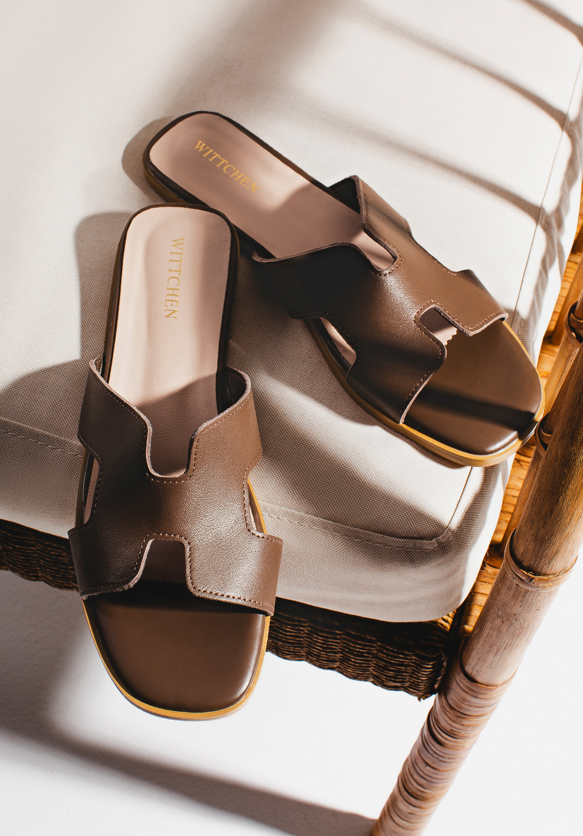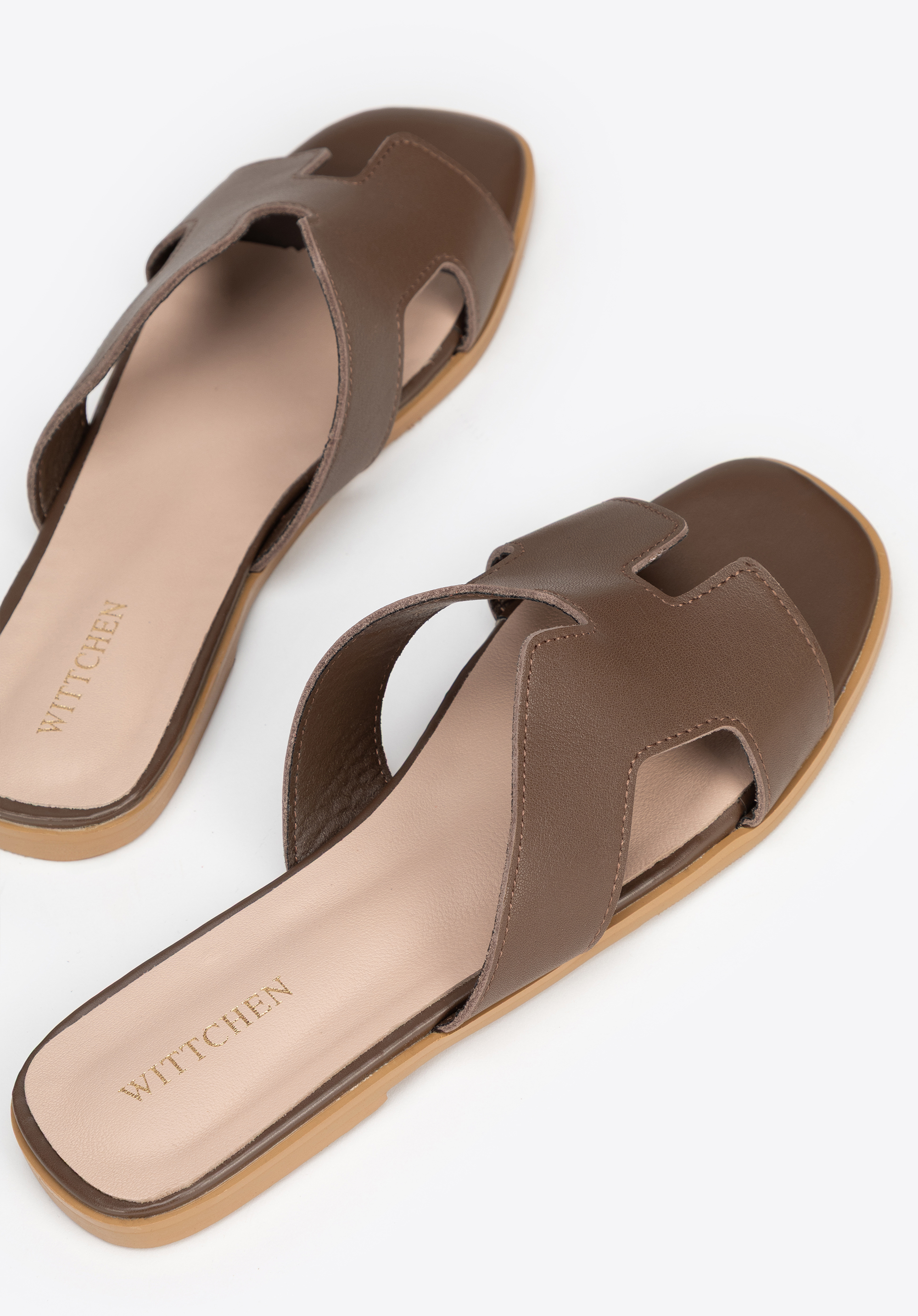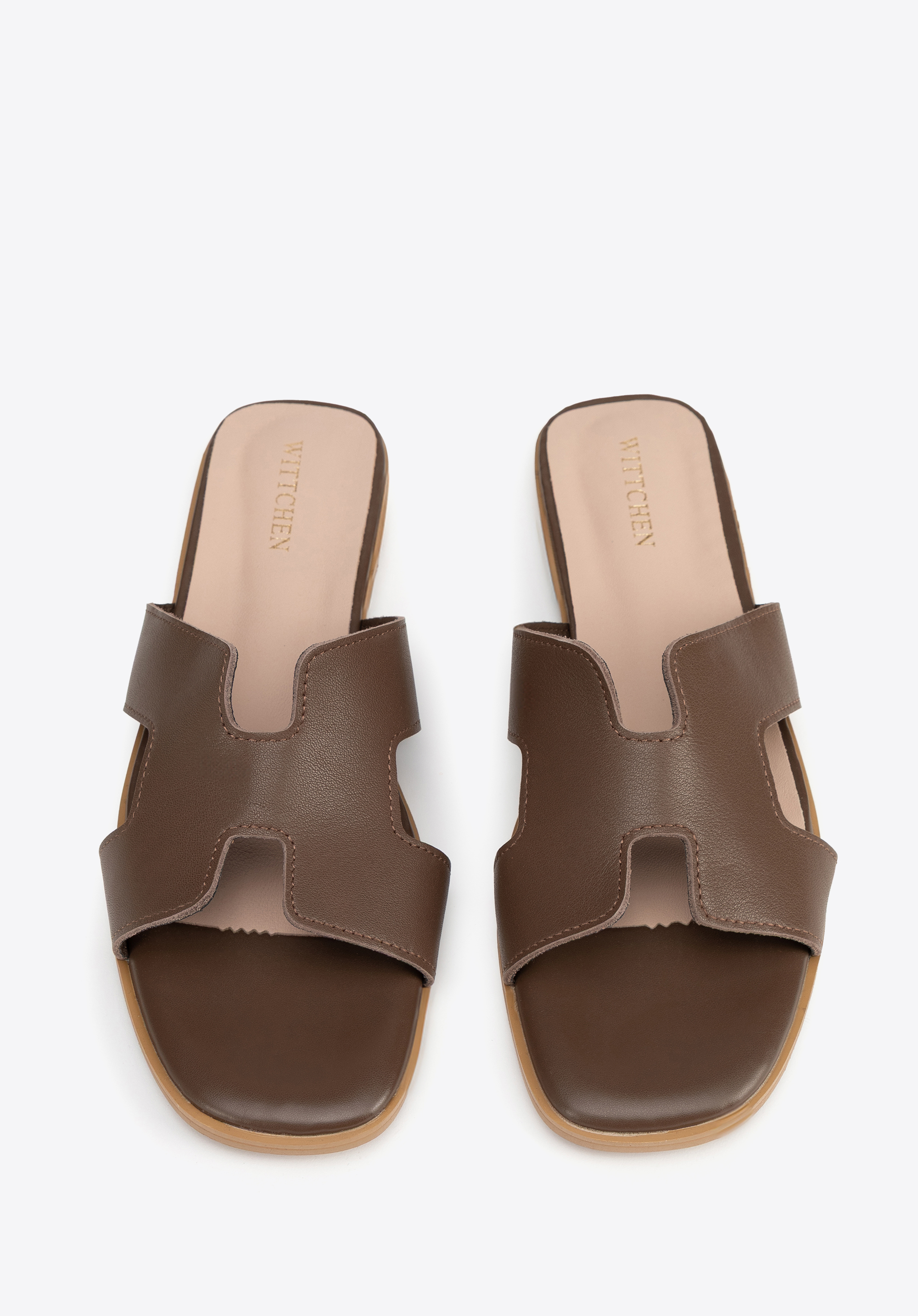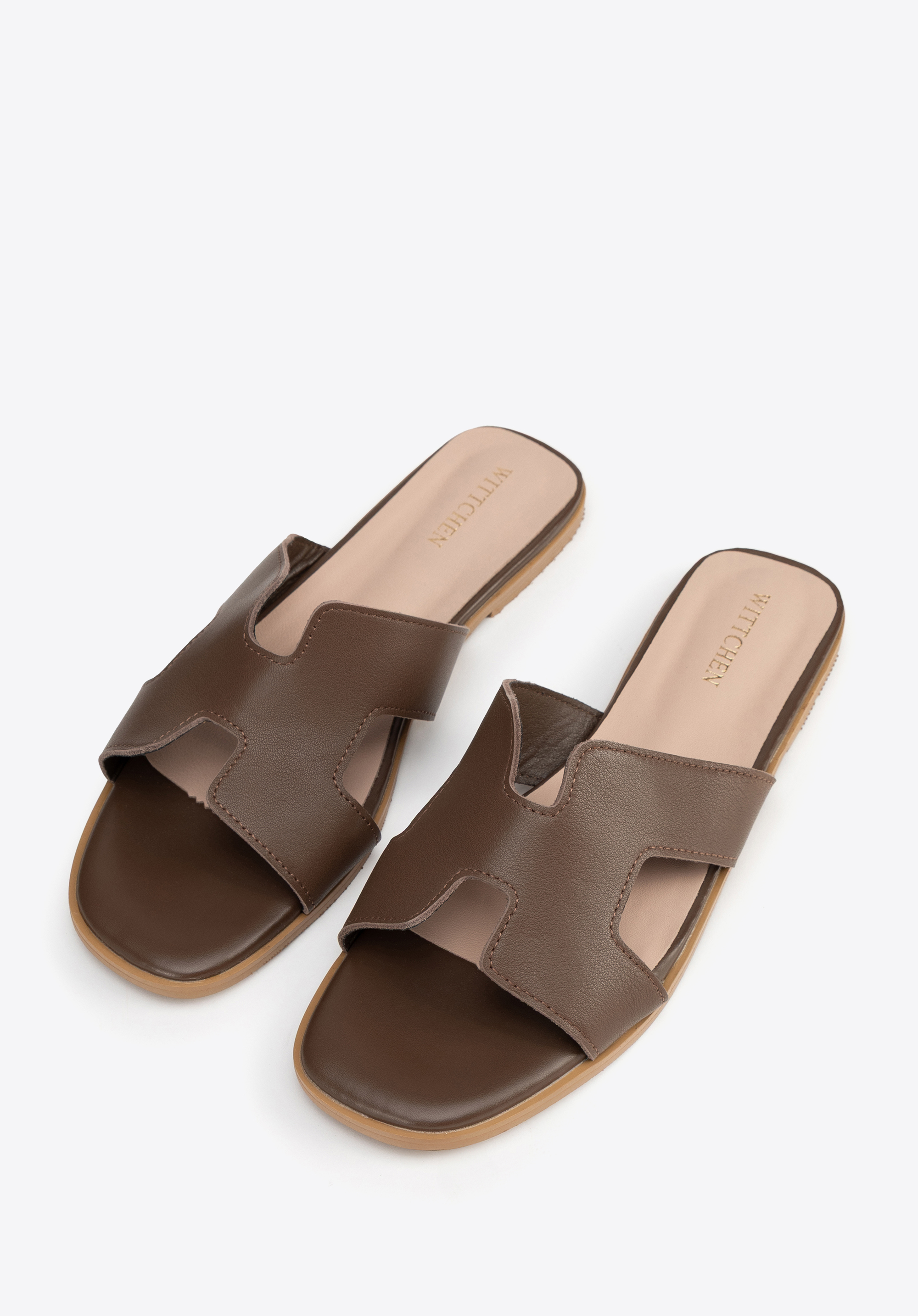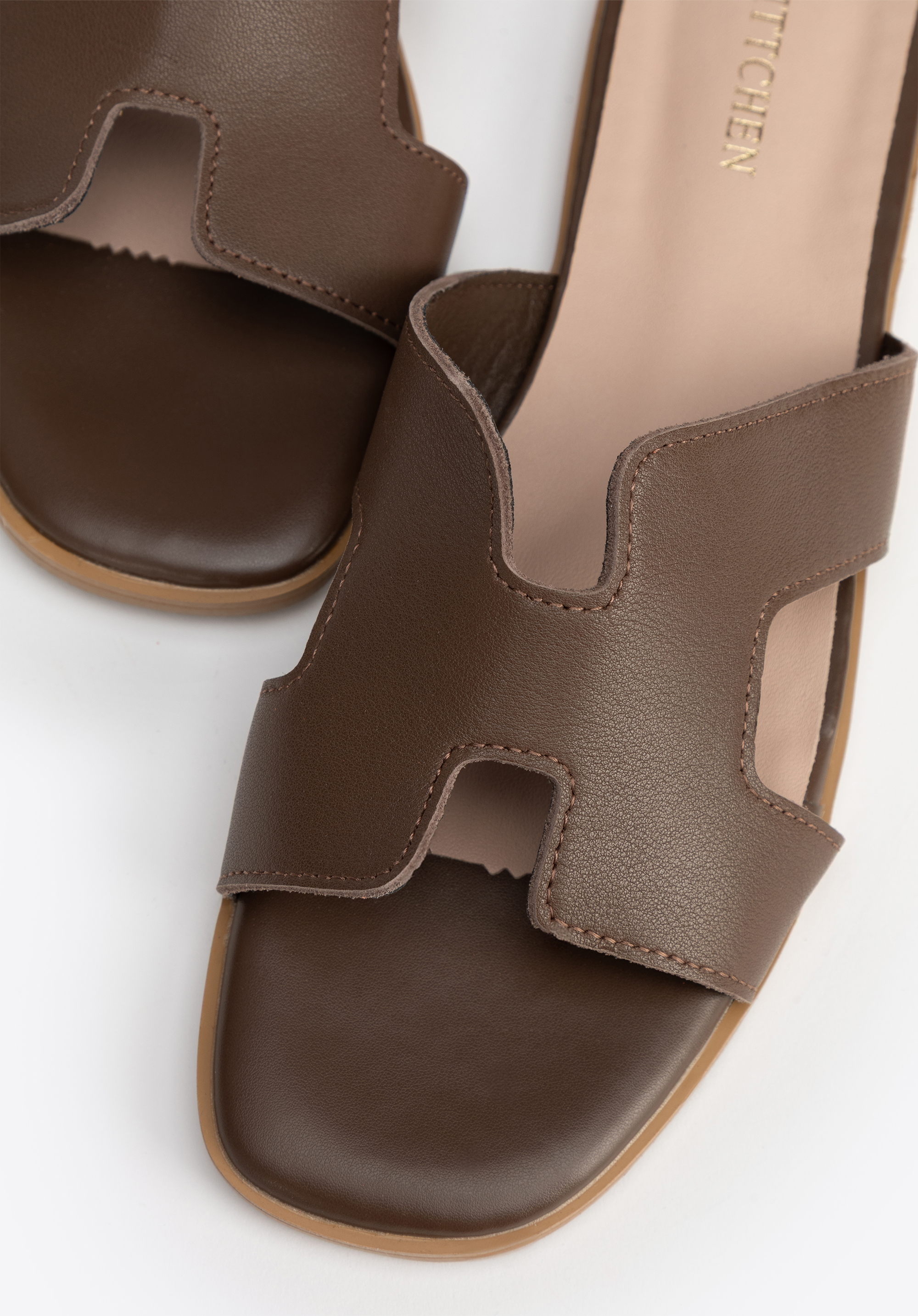 Шкіряні босоніжки з H-подібним вирізомКолір: темно-коричневий