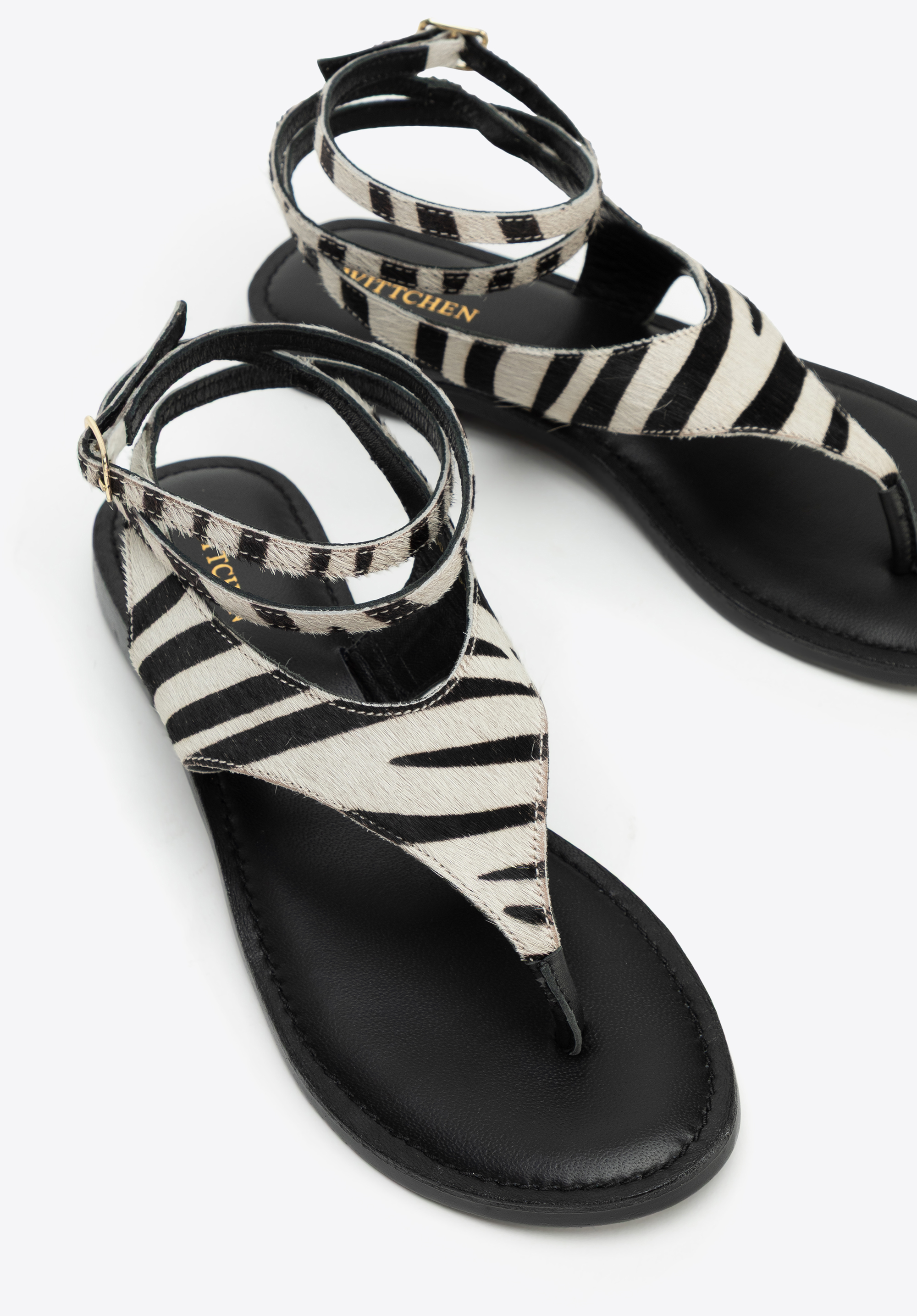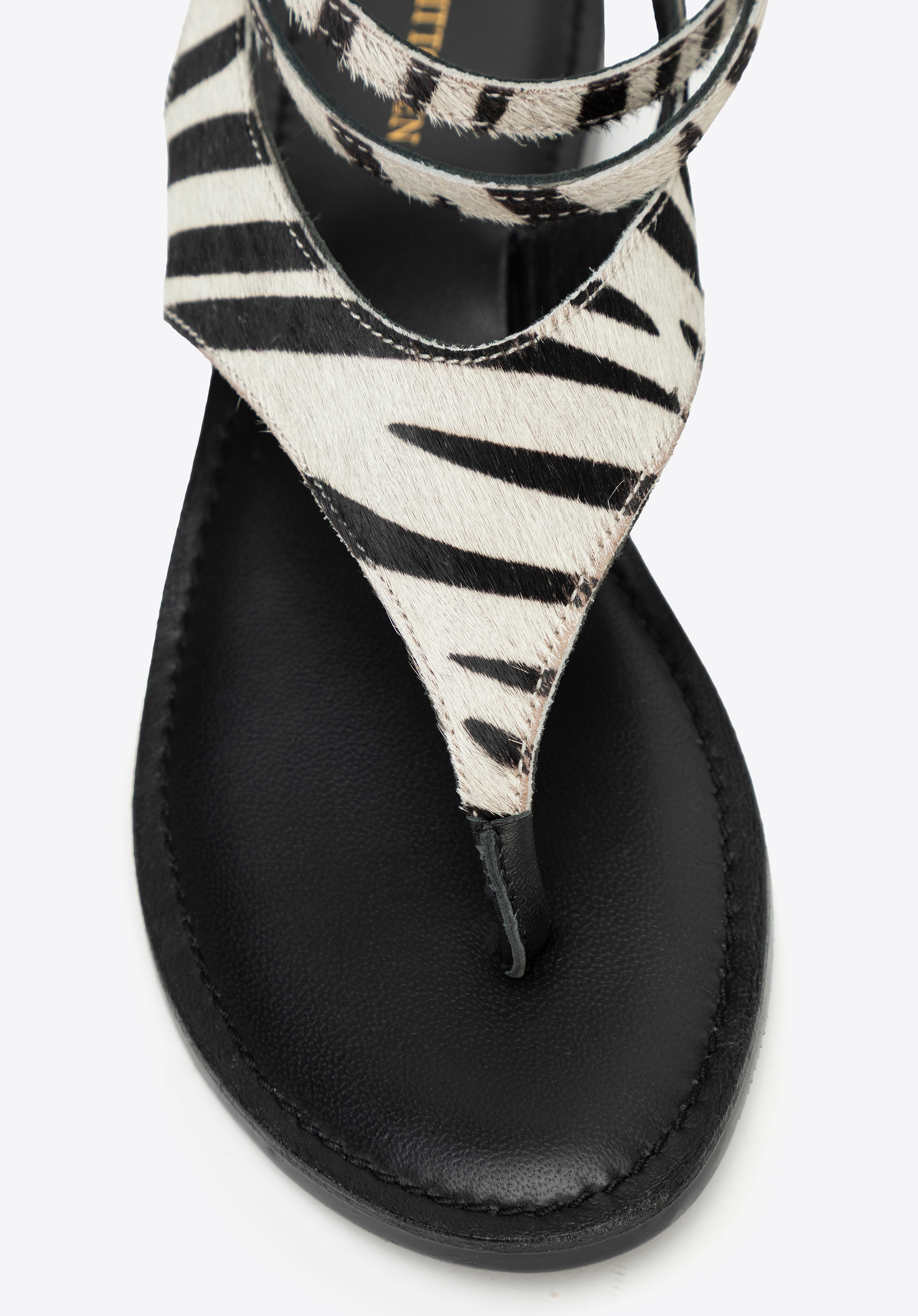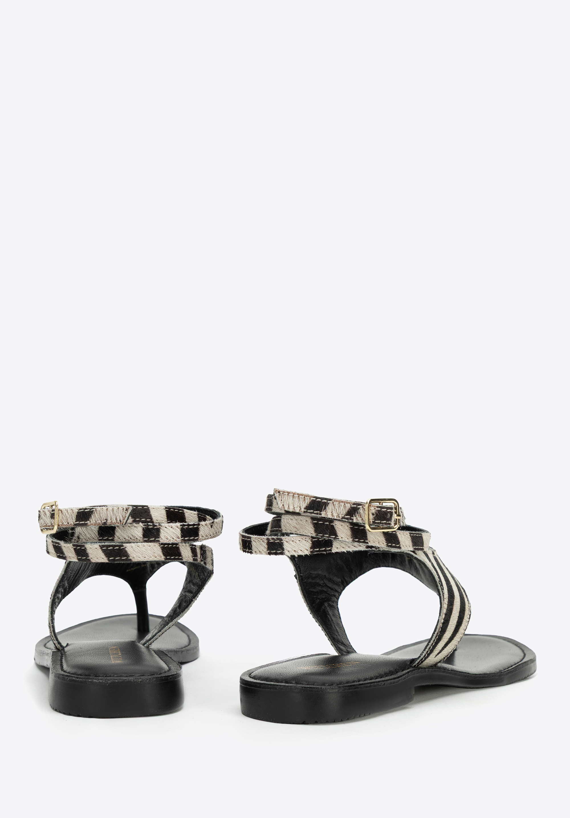 Підкресліть свою індивідуальність і додайте пікантності літньому образу за допомогою наших босоніжок з тваринним принтом. Виготовлені з натуральної ворсистої шкіри, вони вражають не лише своєю унікальною текстурою, але й модним принтом. Мигдалеподібна передня частина з відкритим носком красиво відкриває стопу, а тонкий ремінець з пряжкою, який можна обернути навколо щиколотки, додає вишуканого відтінку. Це взуття, яке може зайняти домінуюче місце в образі, незважаючи на свою мінімалістичну форму.
