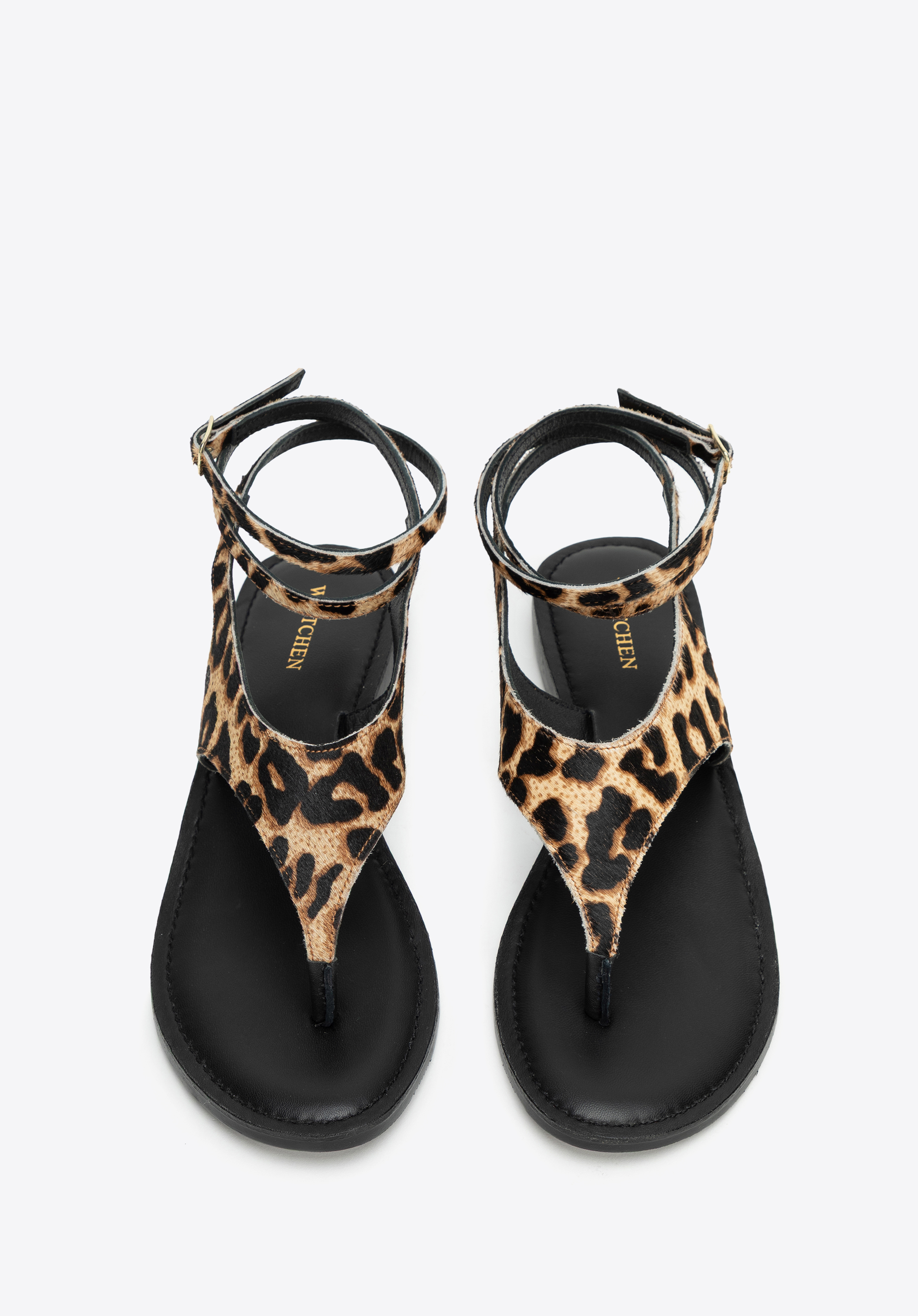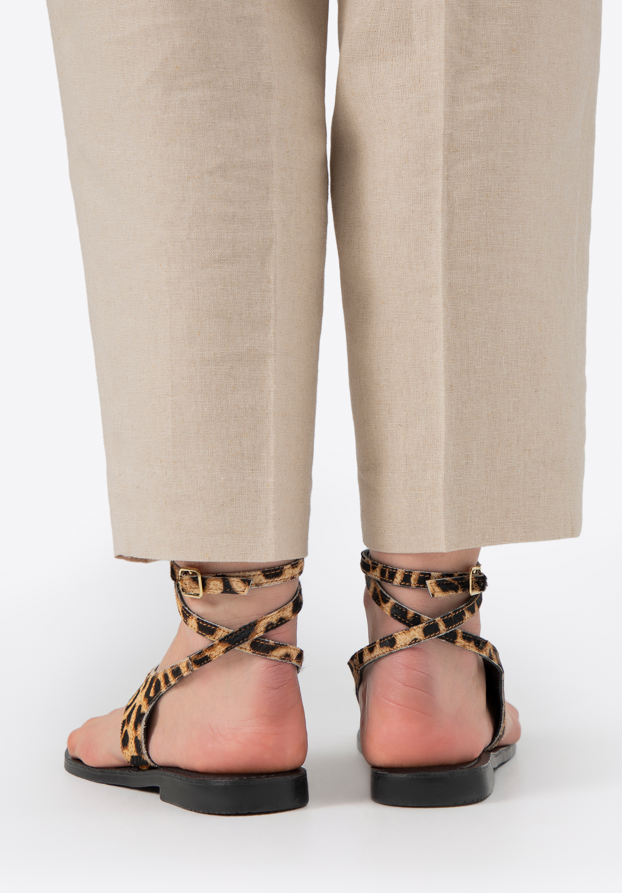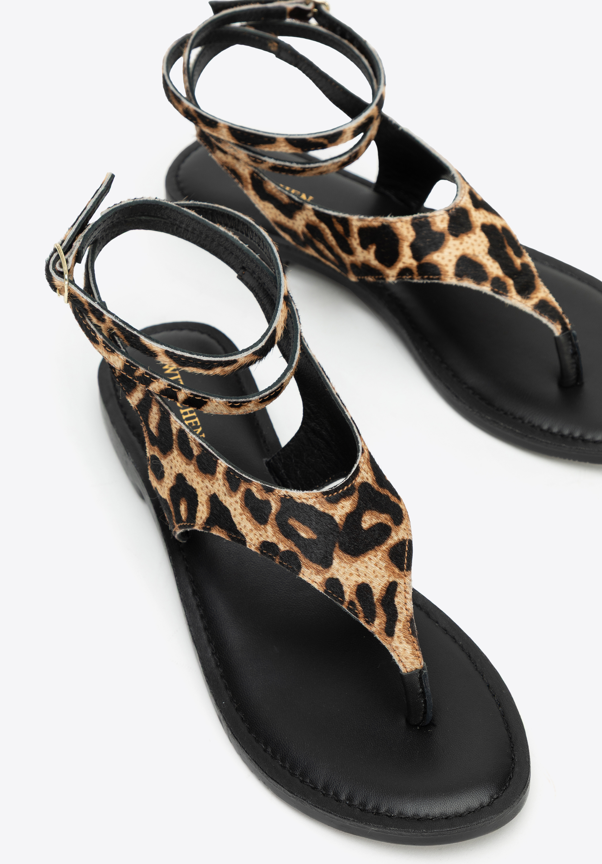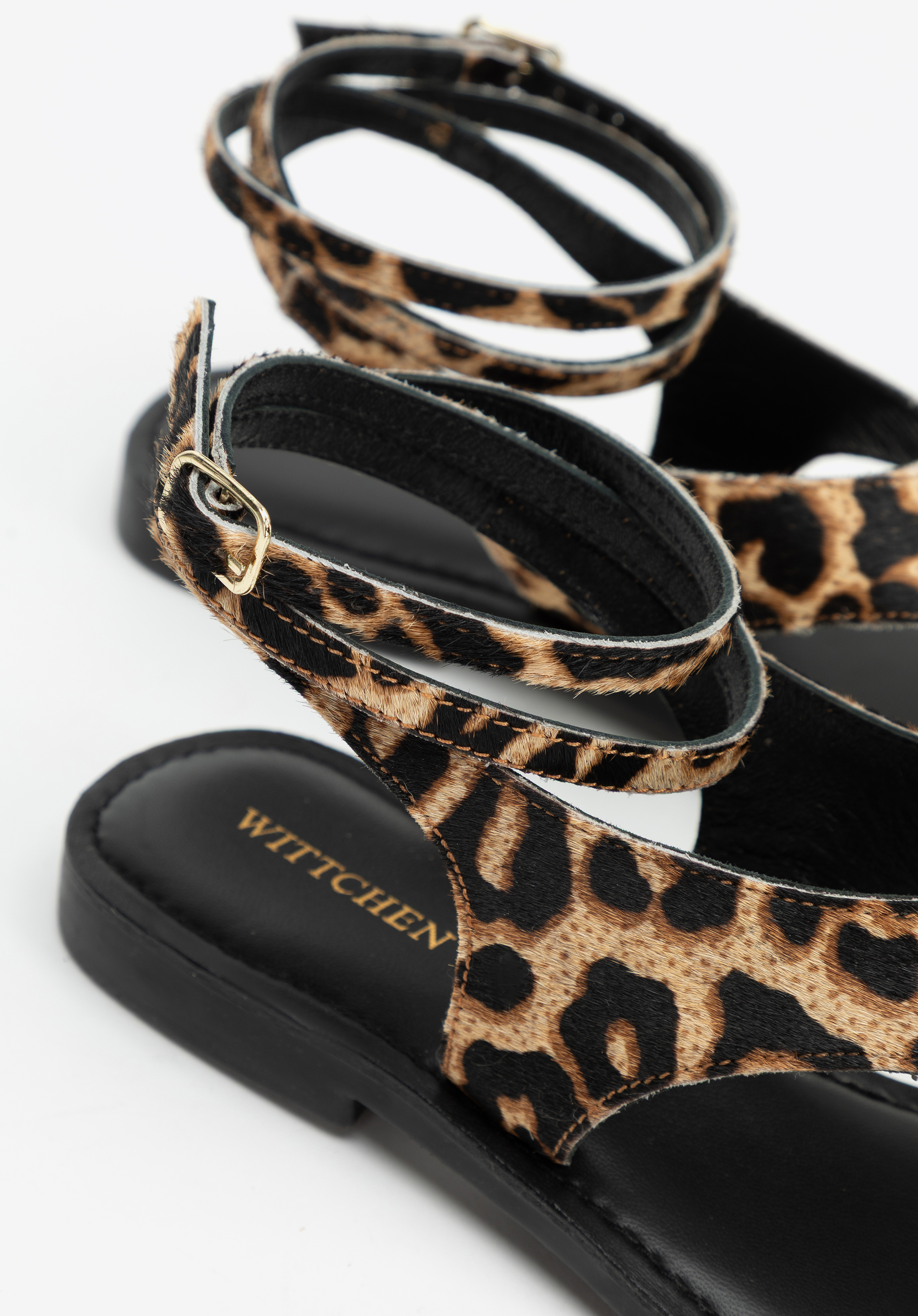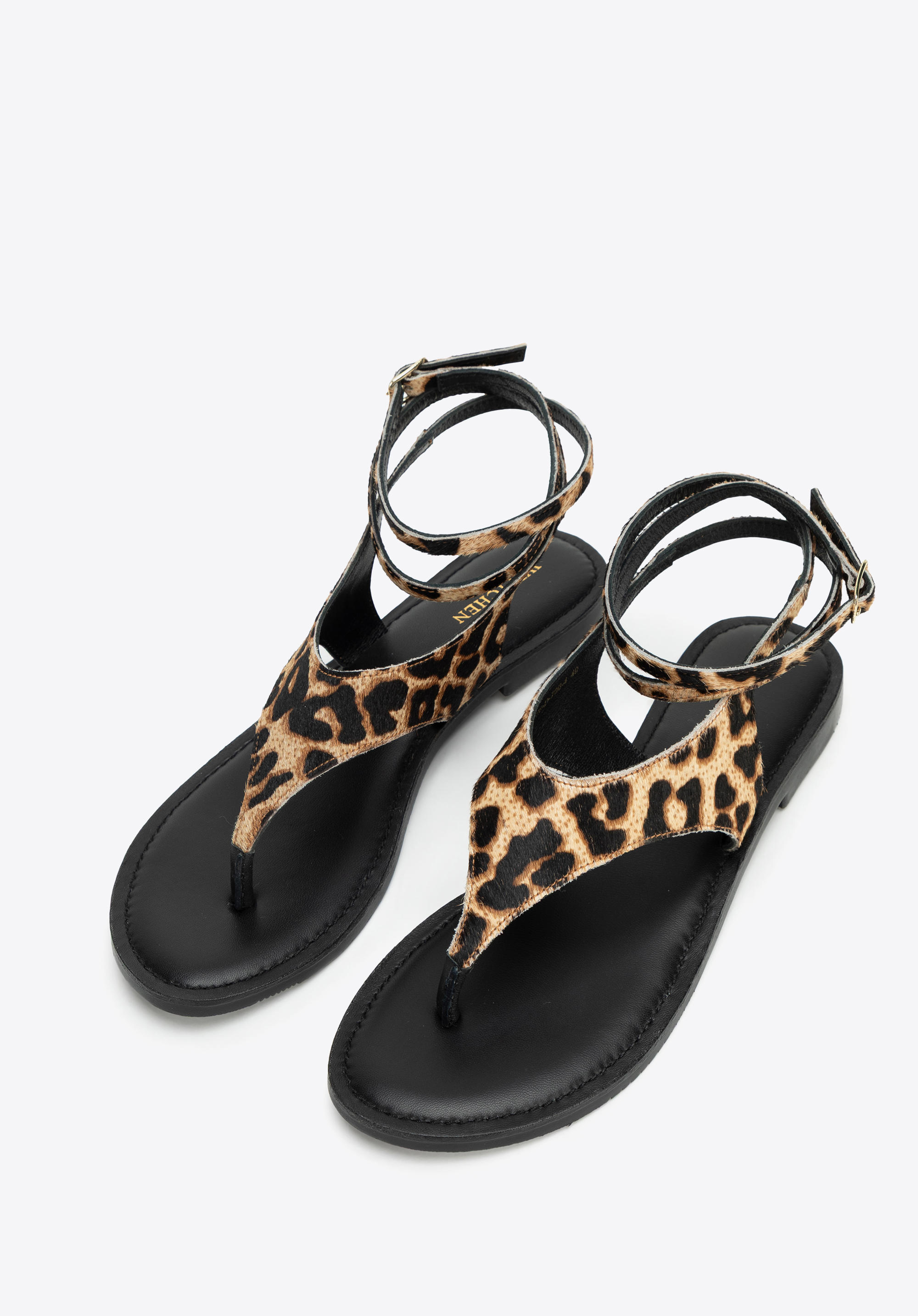 Підкресліть свою індивідуальність і додайте пікантності літньому образу за допомогою наших босоніжок з тваринним принтом. Виготовлені з натуральної ворсистої шкіри, вони вражають не лише своєю унікальною текстурою, але й модним принтом. Мигдалеподібна передня частина з відкритим носком красиво відкриває стопу, а тонкий ремінець з пряжкою, який можна обернути навколо щиколотки, додає вишуканого відтінку. Це взуття, яке може зайняти домінуюче місце в образі, незважаючи на свою мінімалістичну форму.