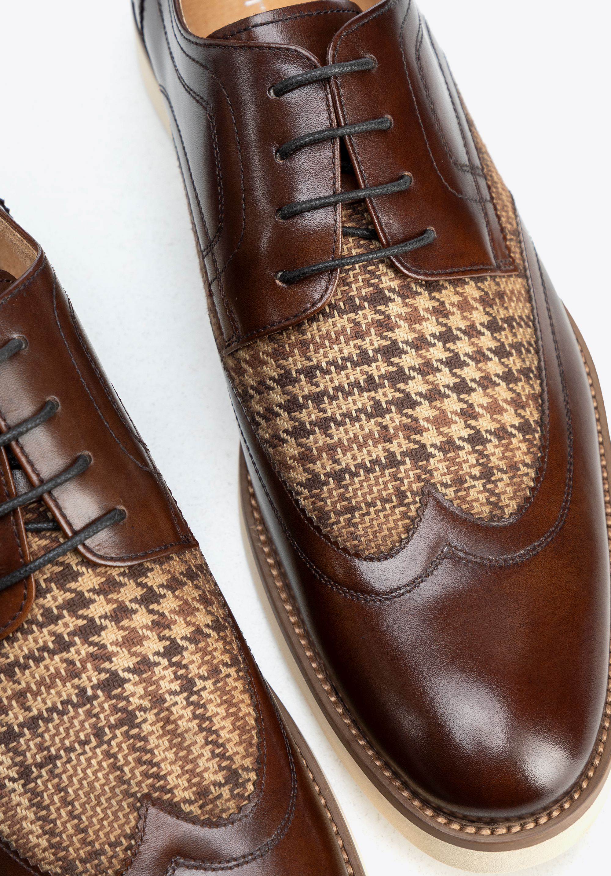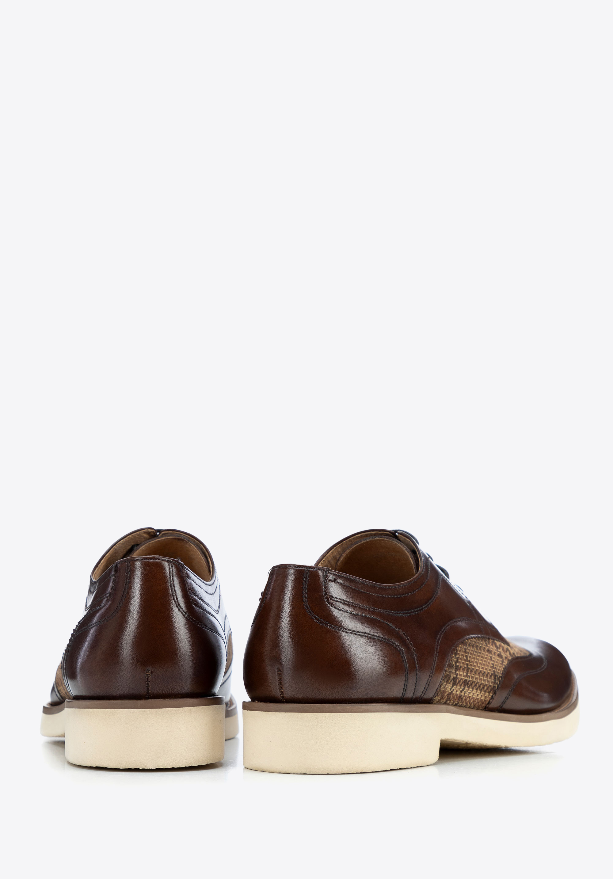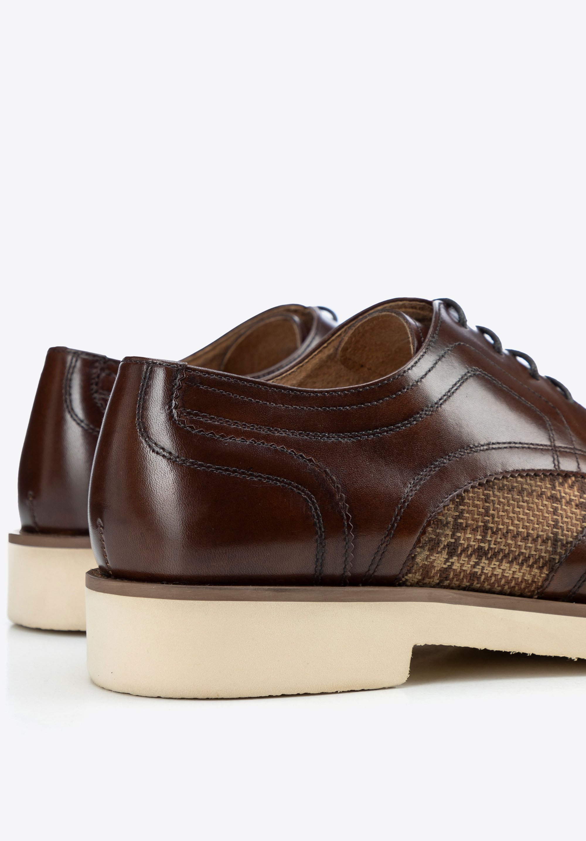 Шкіряні черевики дербі з текстильними вставками коричнево-бежеві