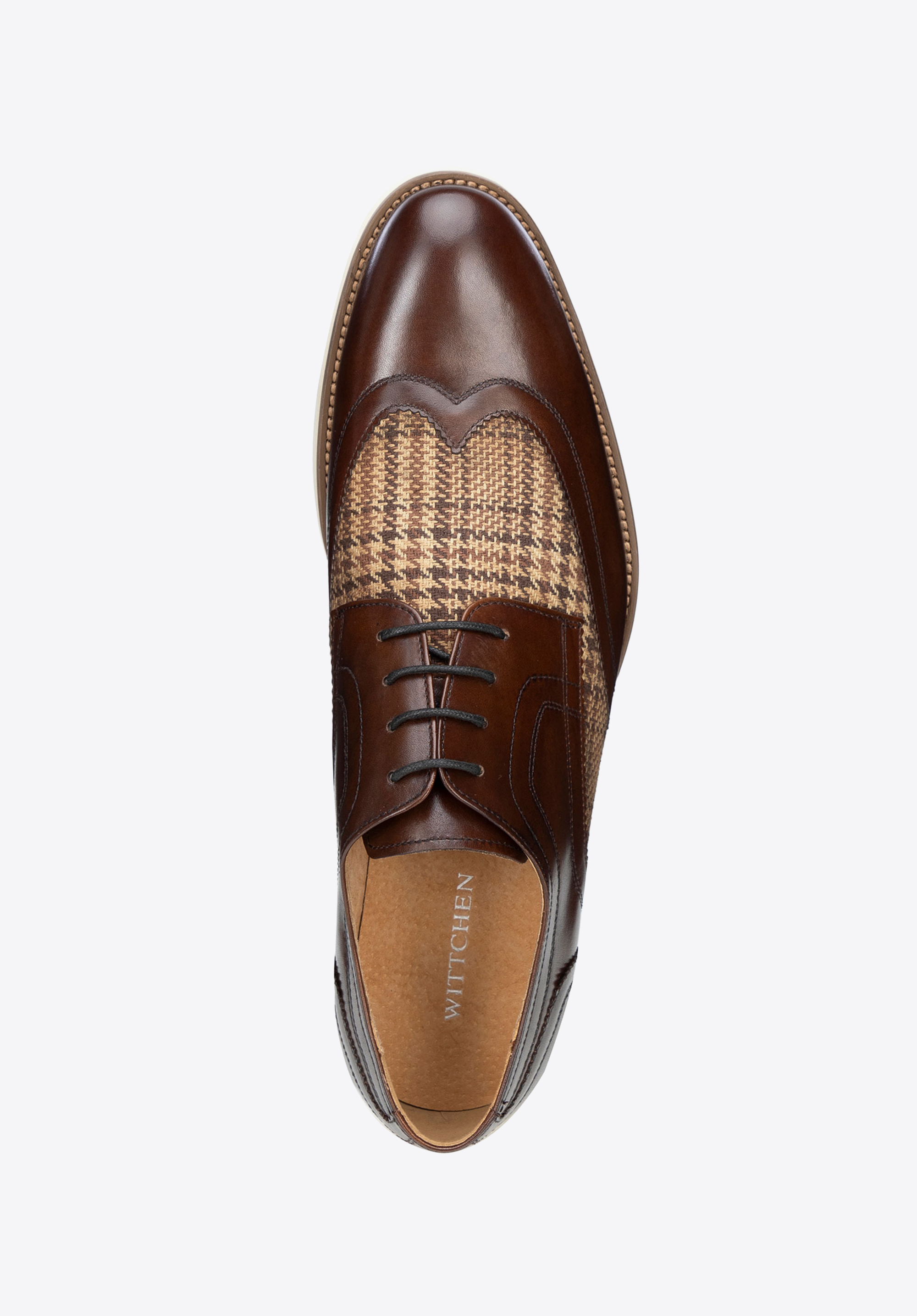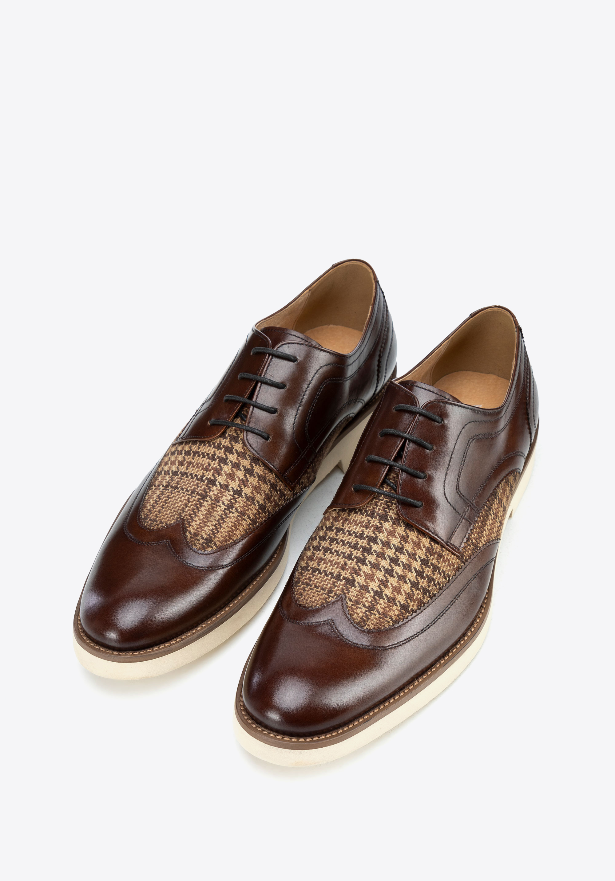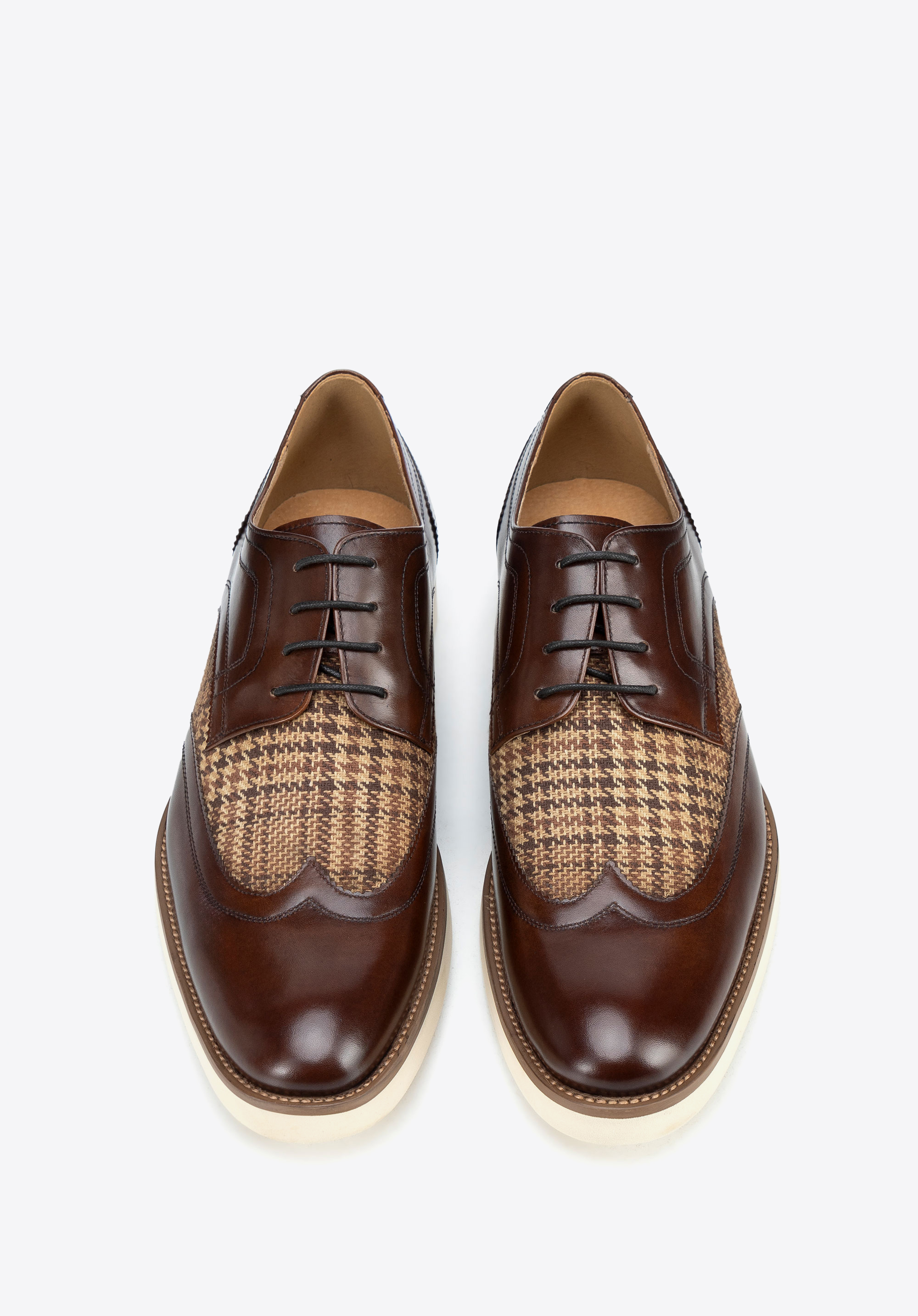 Шкіряні черевики дербі з текстильними вставками коричнево-бежеві
