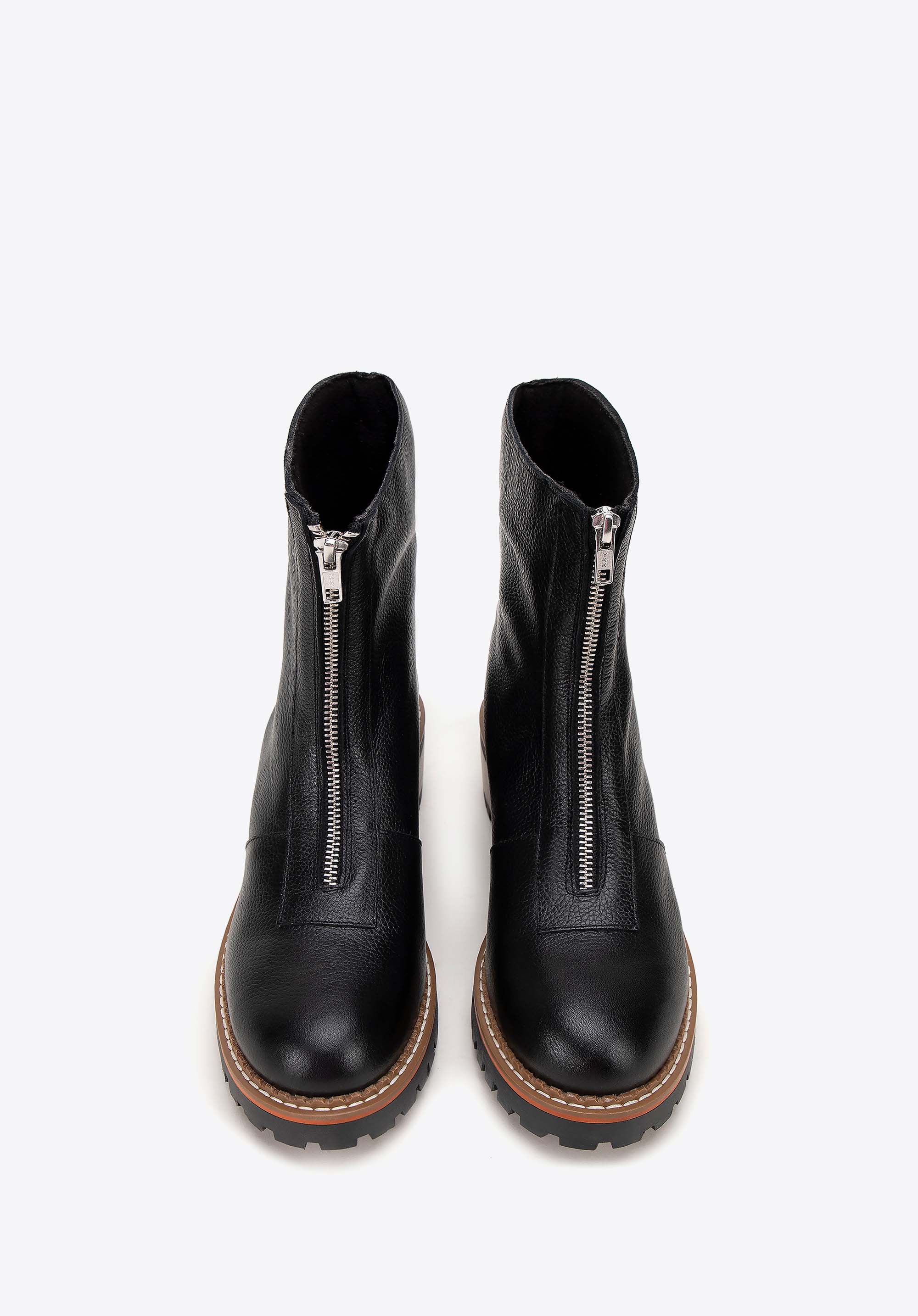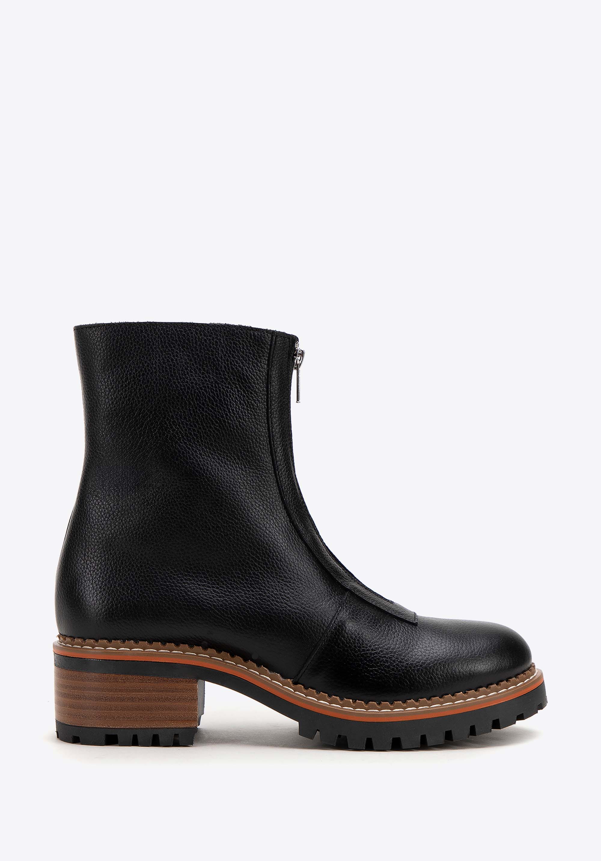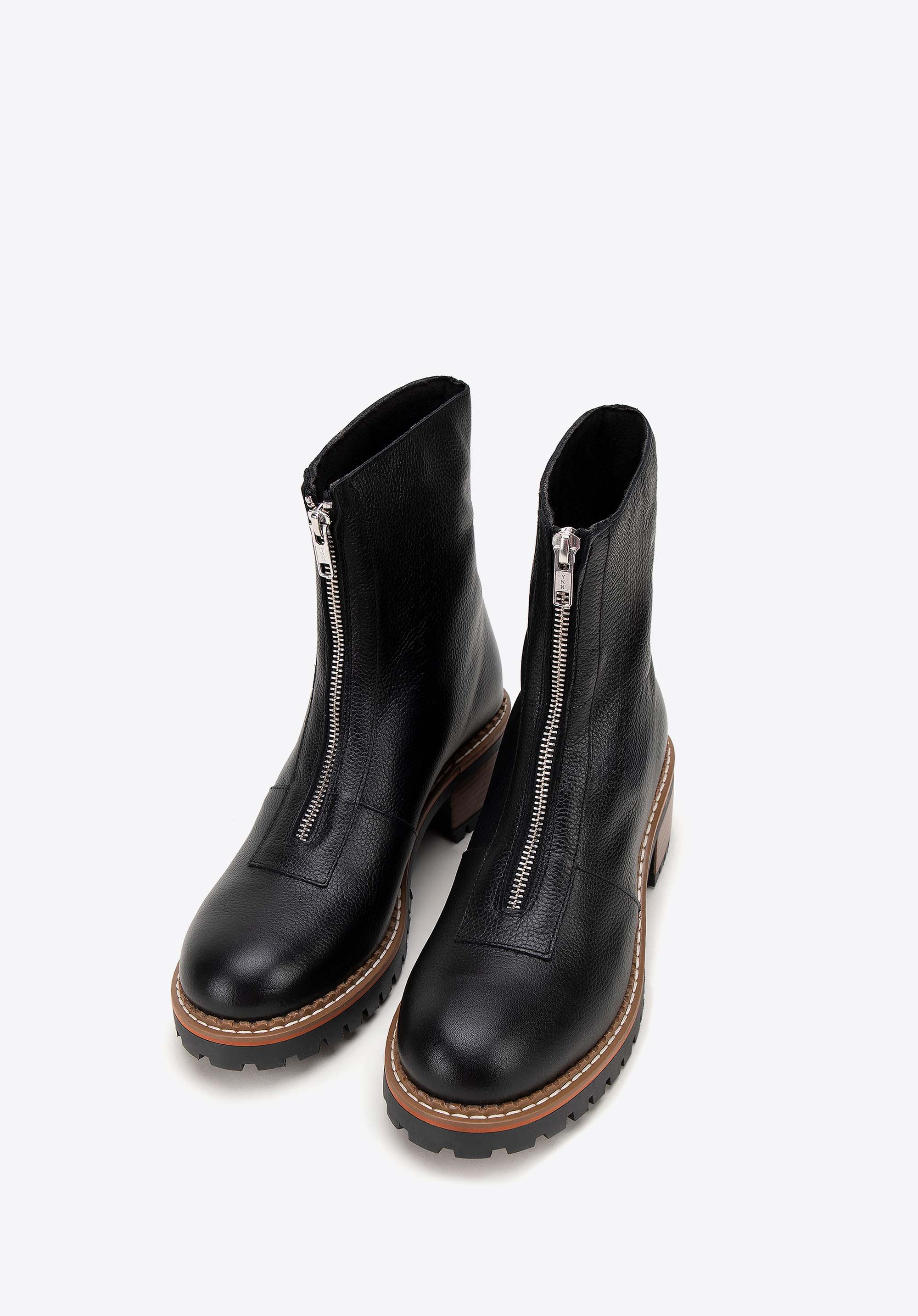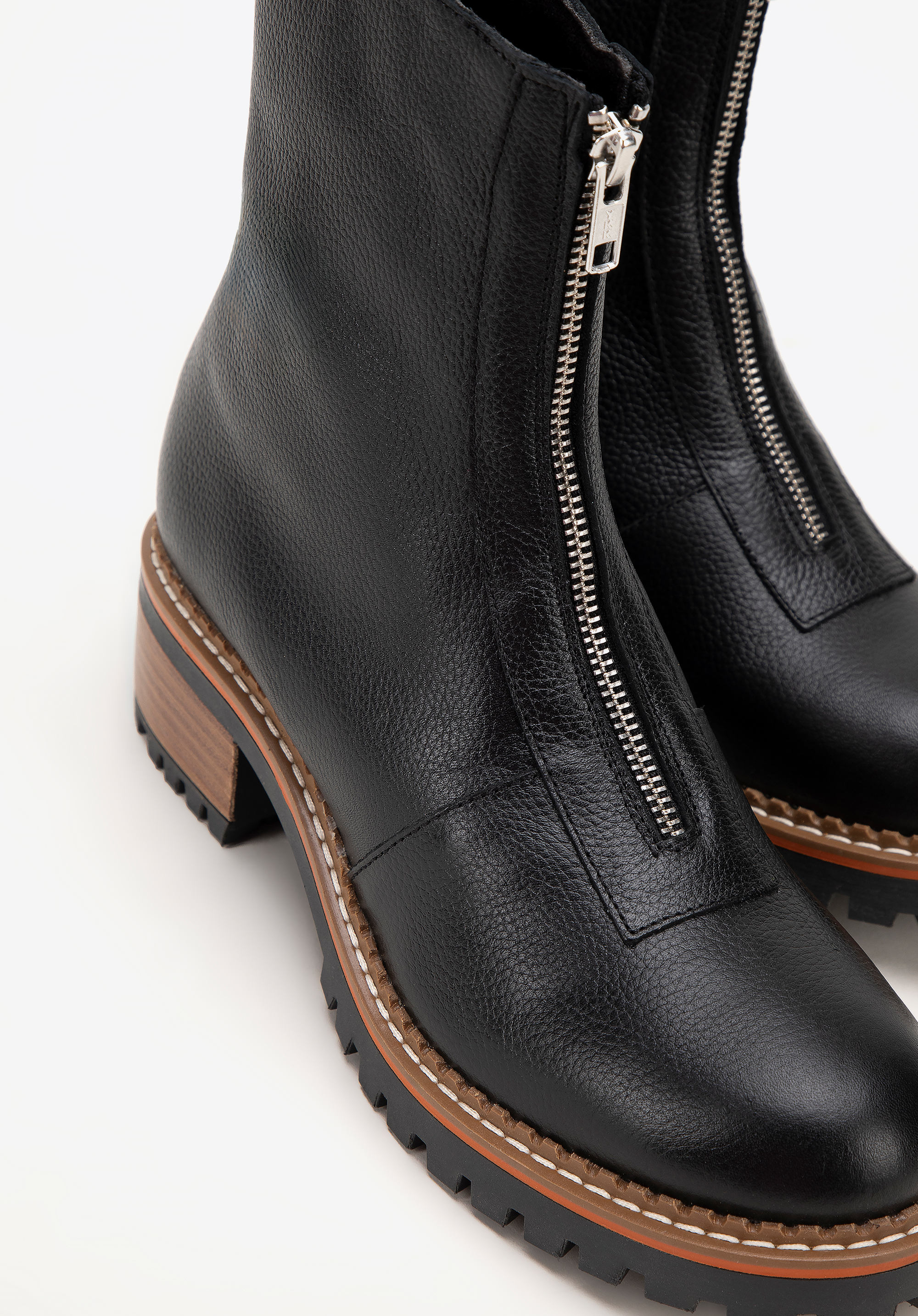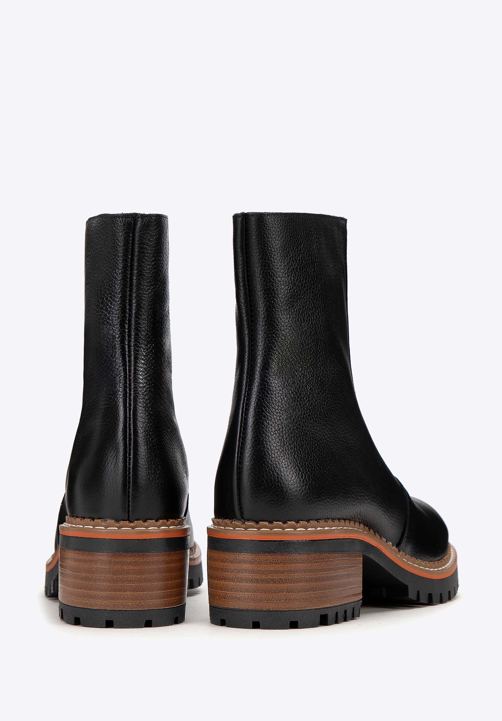 Ці класичні жіночі черевики поєднують елегантність і функціональність і ідеально підходять для різних випадків. Виготовлені з високоякісної натуральної шкіри та обшиті всередені м’яким матеріалом, вони забезпечують комфорт і вражаючий зовнішній вигляд. Товста масивна підошва з протектором забезпечує стабільність, а центральна блискавка дозволяє легко одягати та знімати. Їх класичний дизайн із мигдалеподібним носком надає їм універсальності, які легко доповнюють різні вбрання. Ідеальні для жінок, які цінують якість, комфорт і елегантність, ці черевики підходять як для повсякденного носіння, так і для особливих випадків.