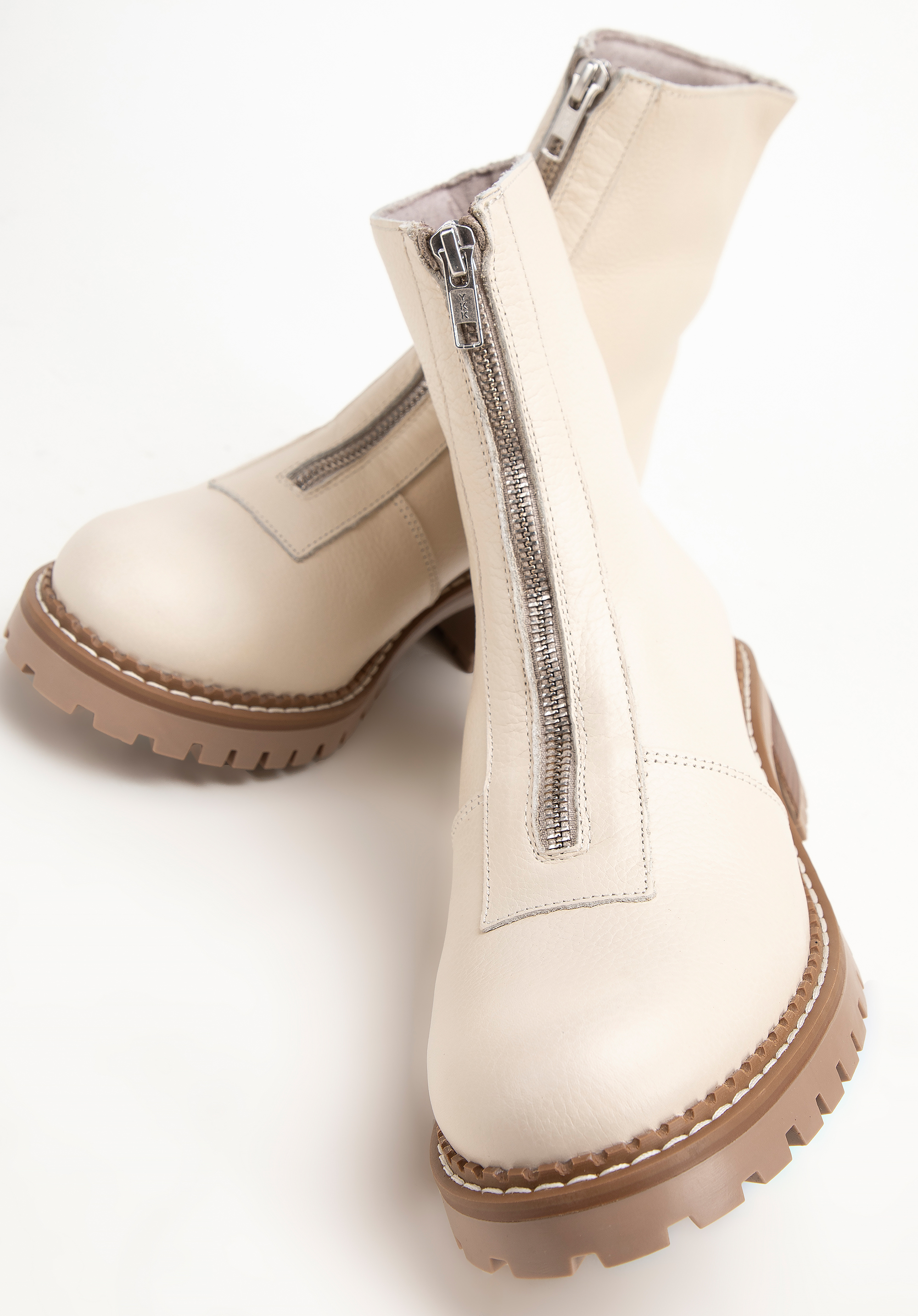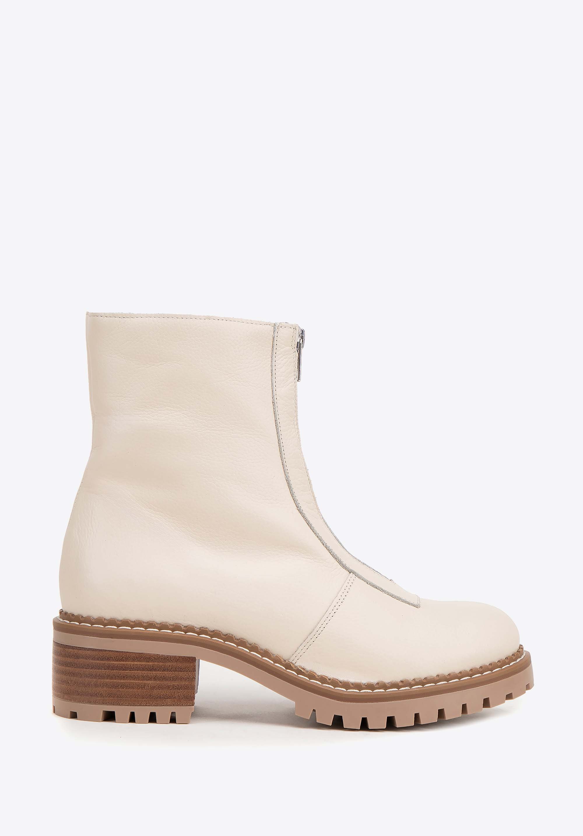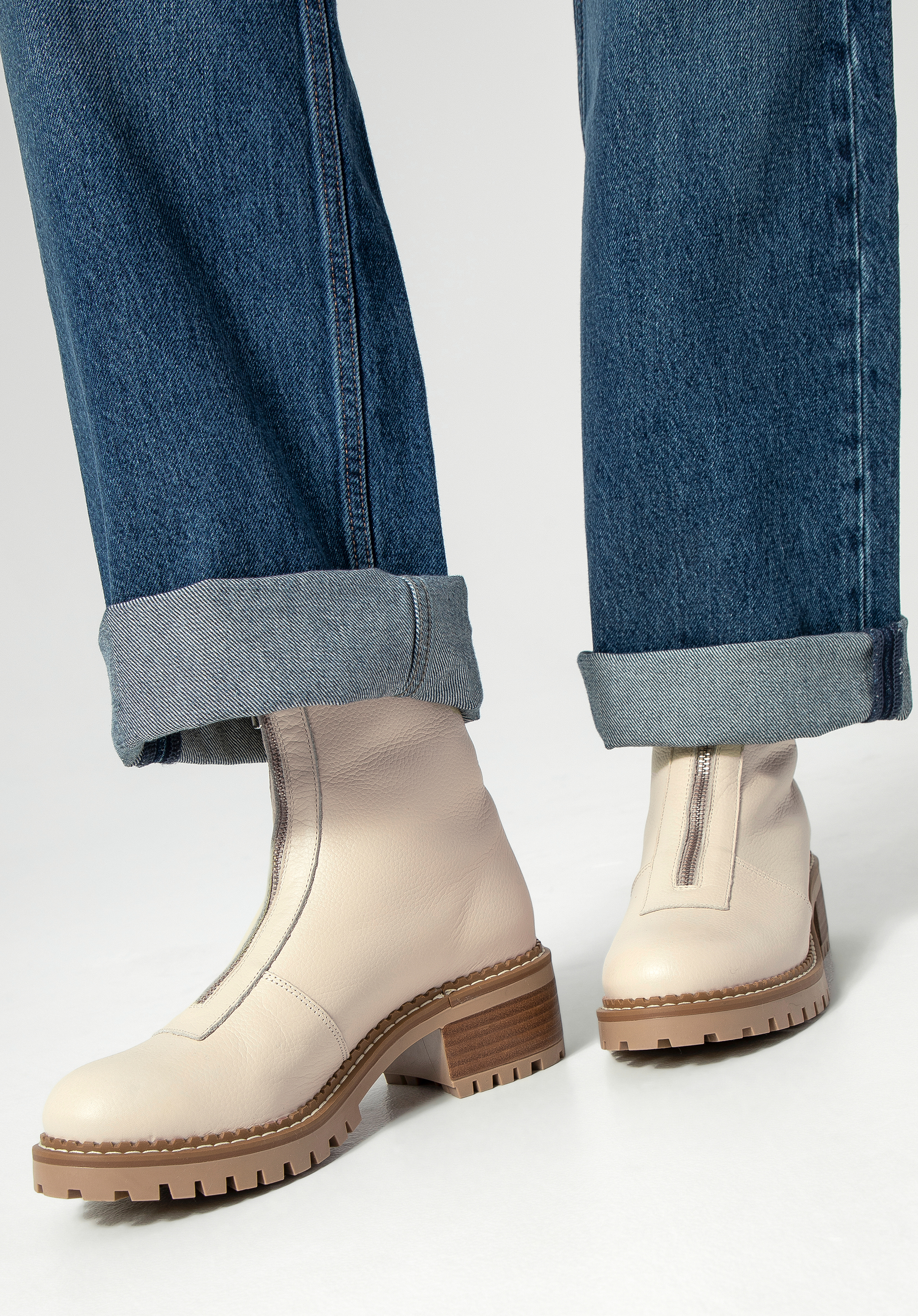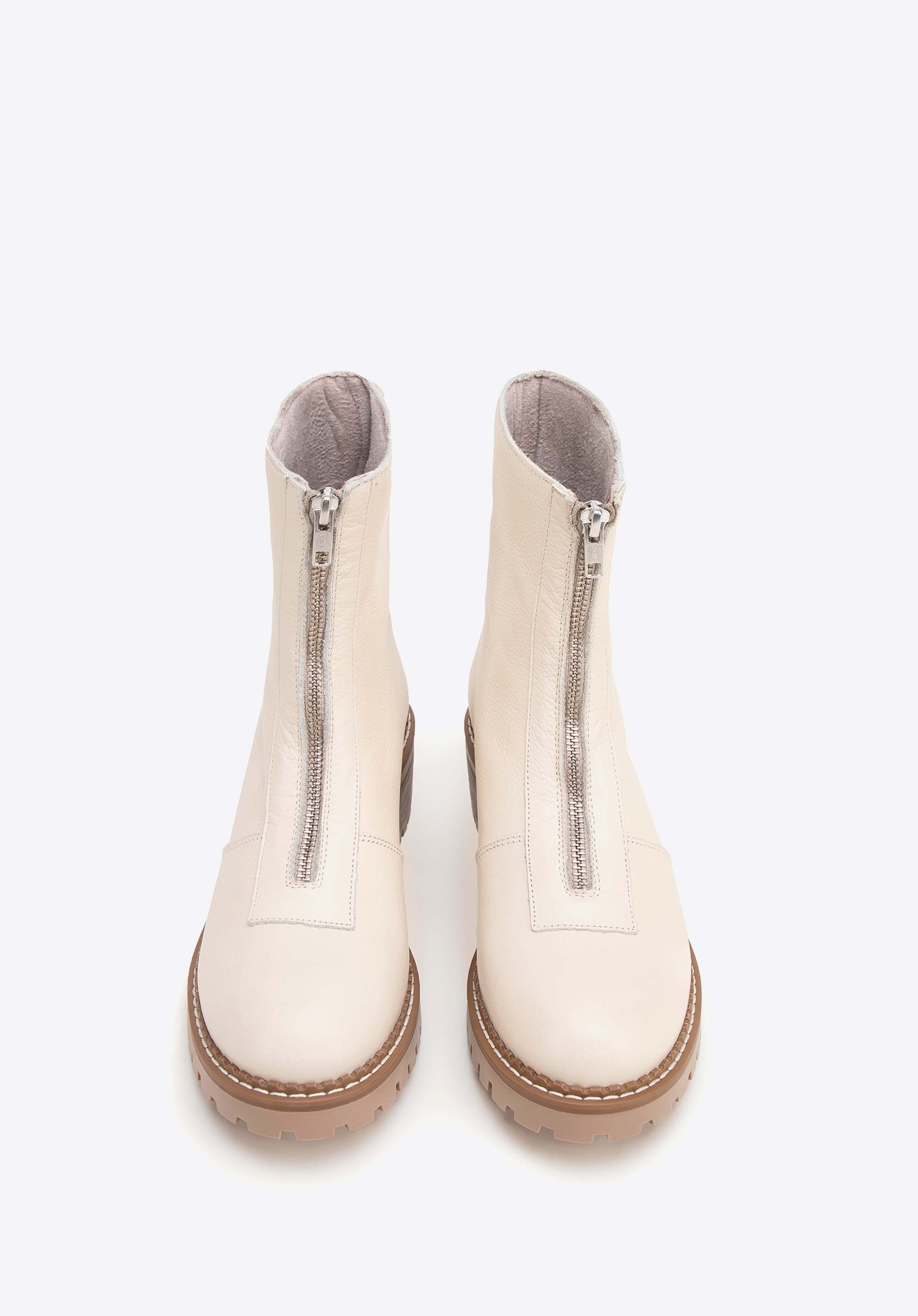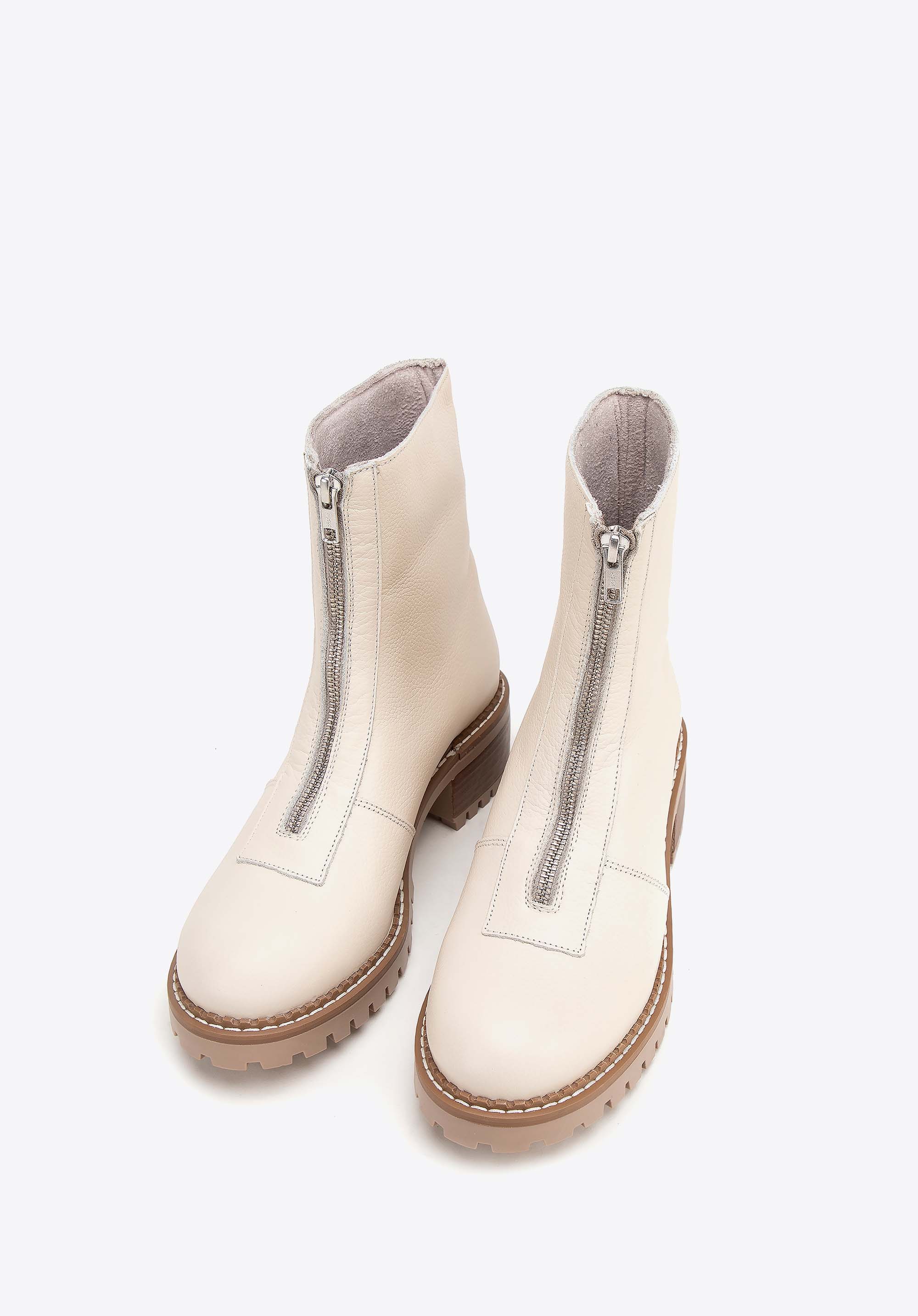 Шкіряні черевики на блискавці спереду Колір: кремовий
