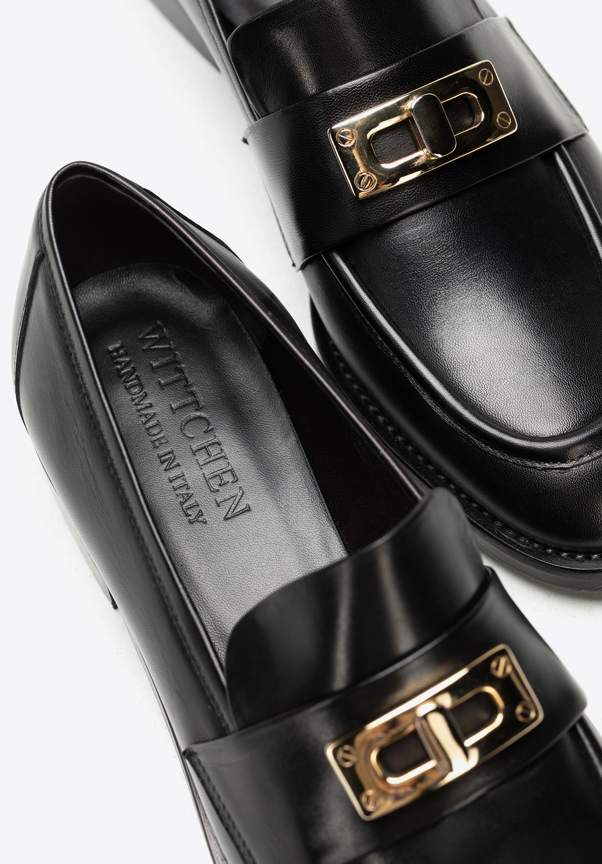Лофери з лакованої шкіри з декоративною вставкою – позачасова елегантність з глянцевим покриттям