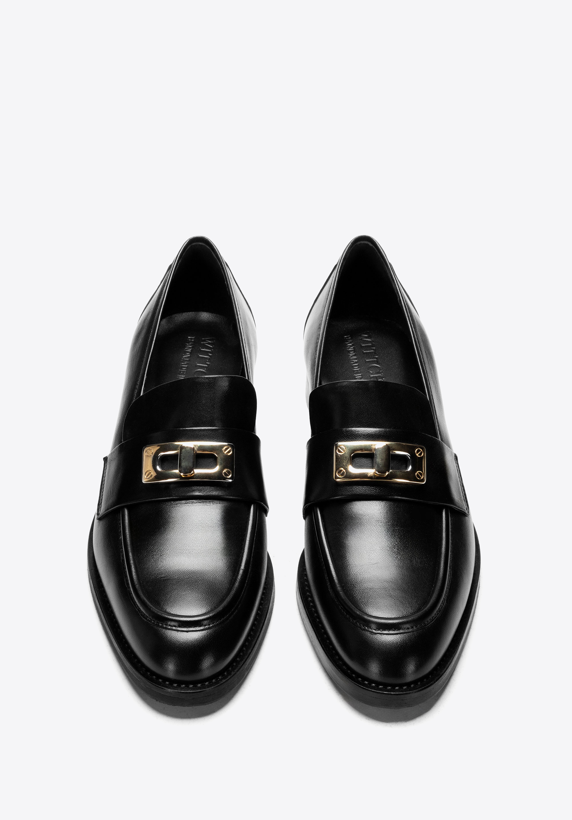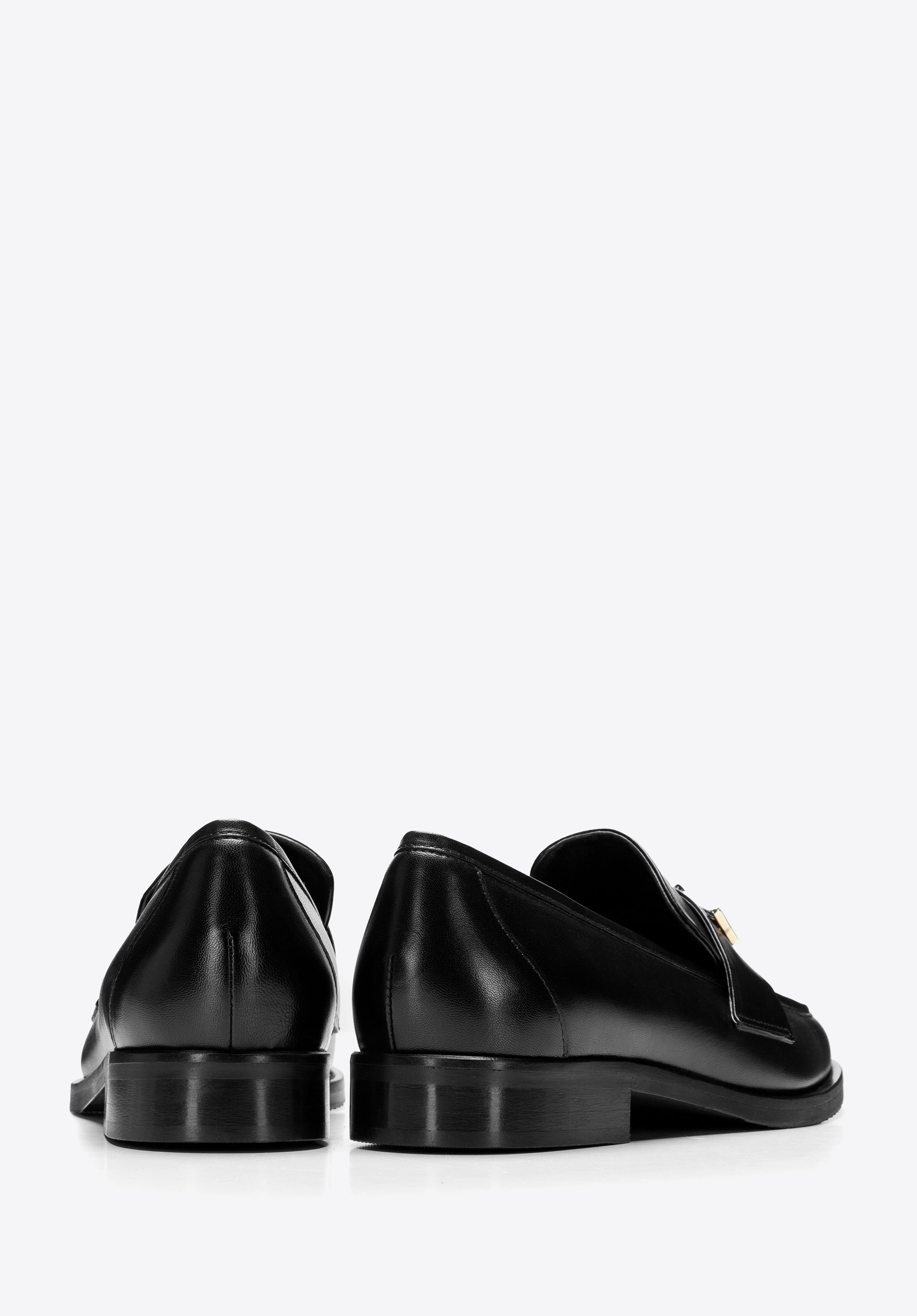 Оберіть елегантність, яка однаково добре поєднується як з офісом, так і з повсякденним одягом. Ці лофери виготовлені з високоякісної натуральної коров'ячої шкіри з ніжним блиском , який м'яко відбиває світло, додаючи вишуканості вашому вбранню. Класичний мигдалеподібний носок видовжує стопу, а декоративна деталь спереду додає шарму, натхненного ювелірними виробами. Внутрішня частина, підкладка як устілки, так і підкладки, з м'якої натуральної шкіри забезпечує комфорт та ідеальну посадку.
