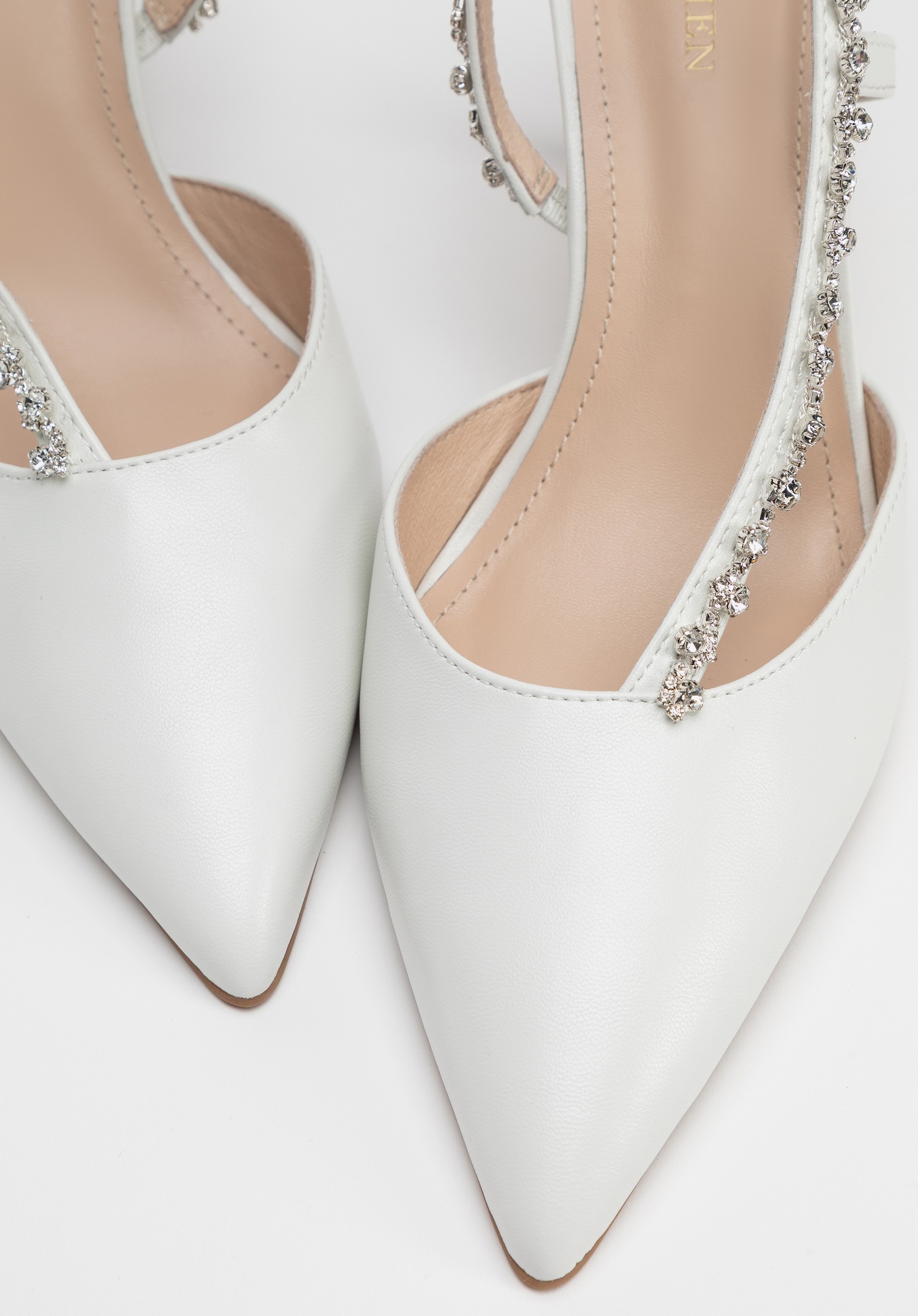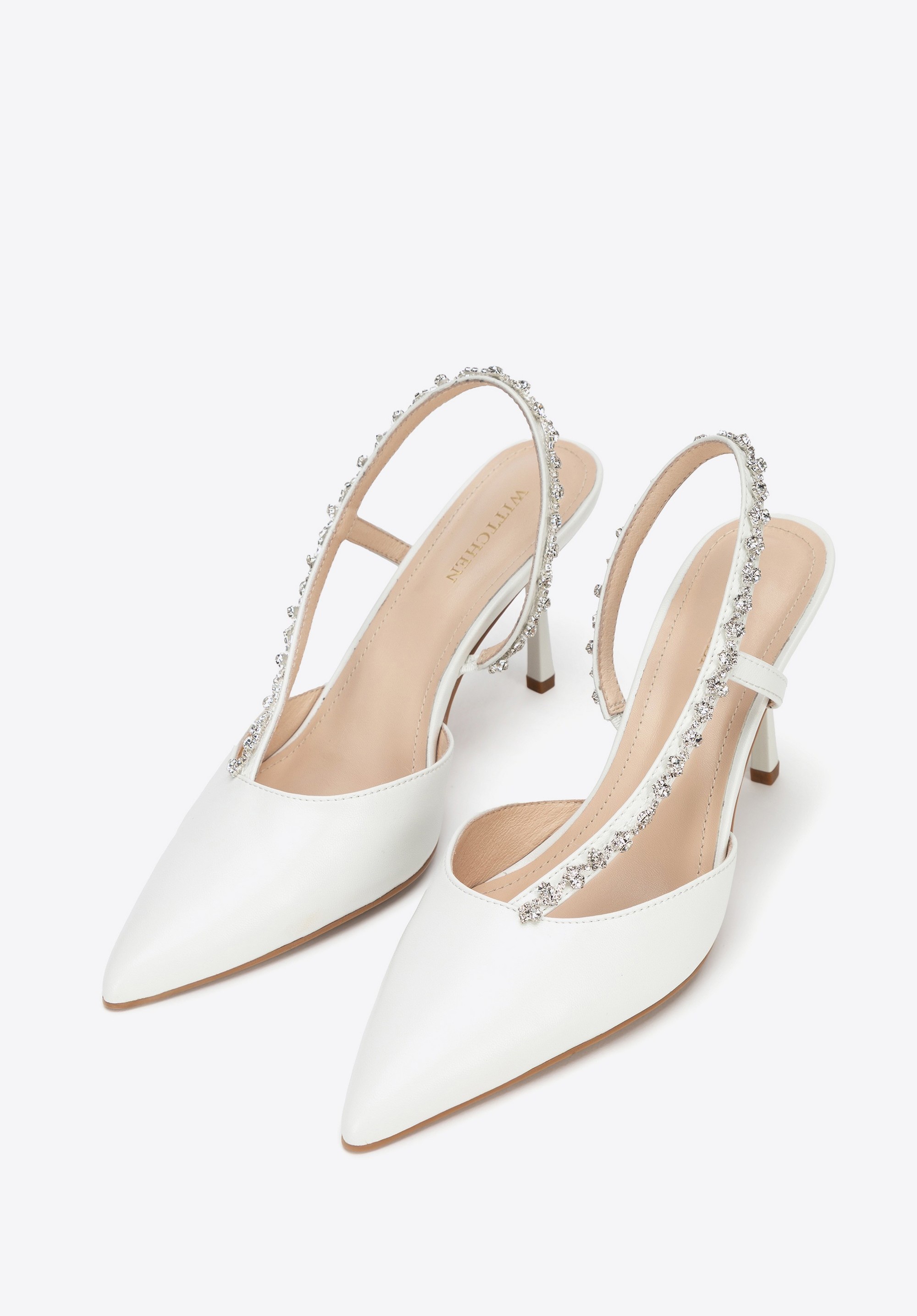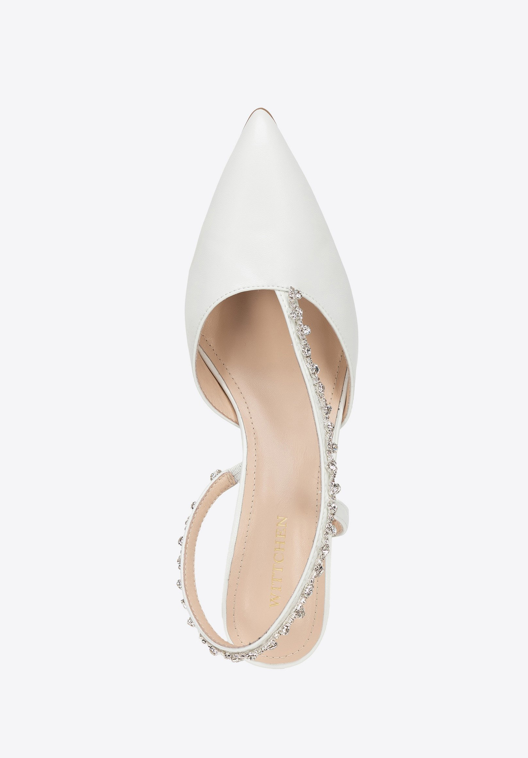 Вічна елегантність поєднується з повсякденним комфортом. Ці шкіряні туфлі повинні бути у кожної жінки, яка цінує вишуканий стиль. Виготовлені з преміальних матеріалів, вони пропонують не тільки вишуканий вигляд, але й комфорт протягом усього дня. Гострий носок і високий каблук на шпильці елегантно подовжують силует, а ремінець на щиколотці з декоративними коштовними каменями додає унікальний і привабливий вигляд.
