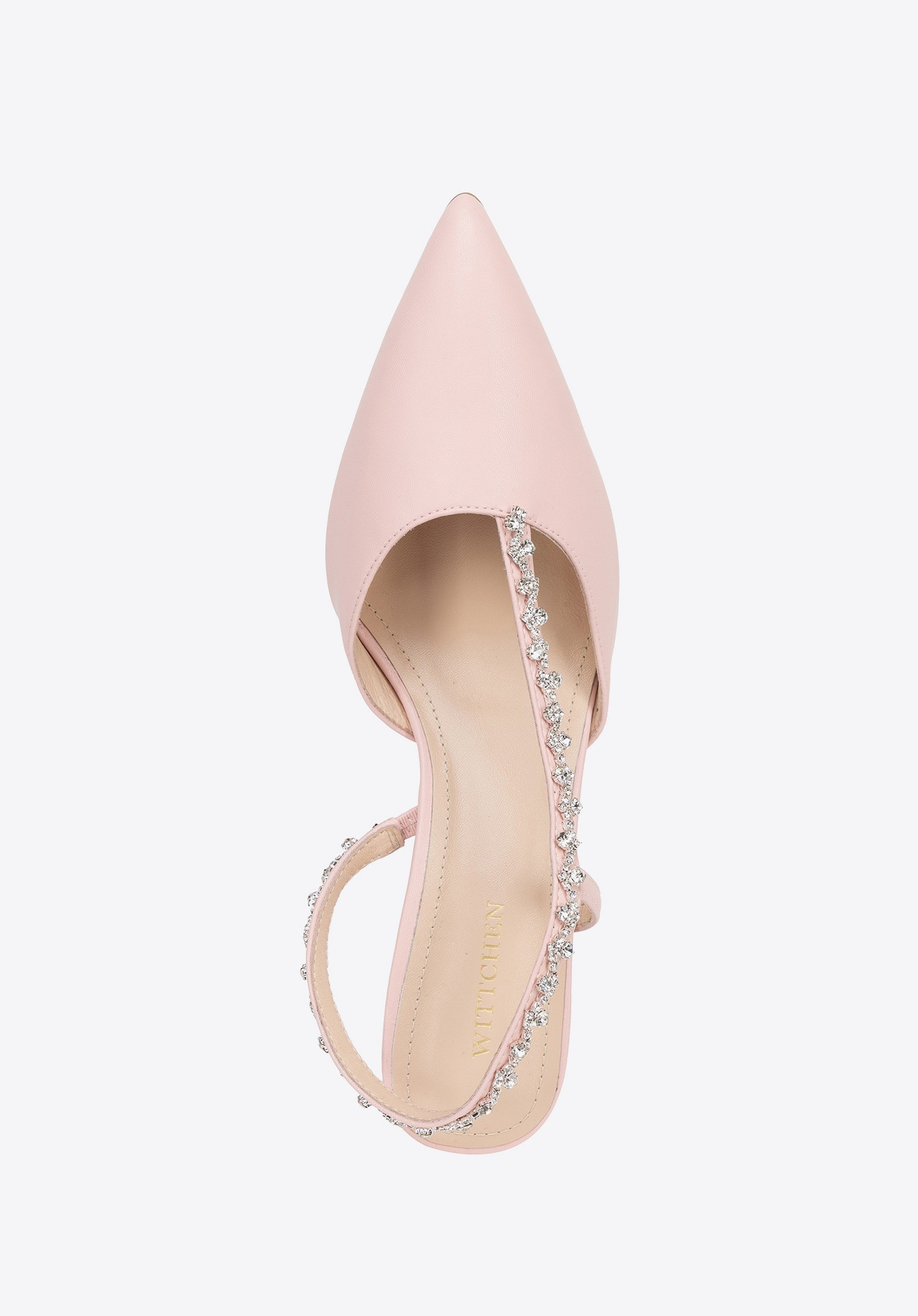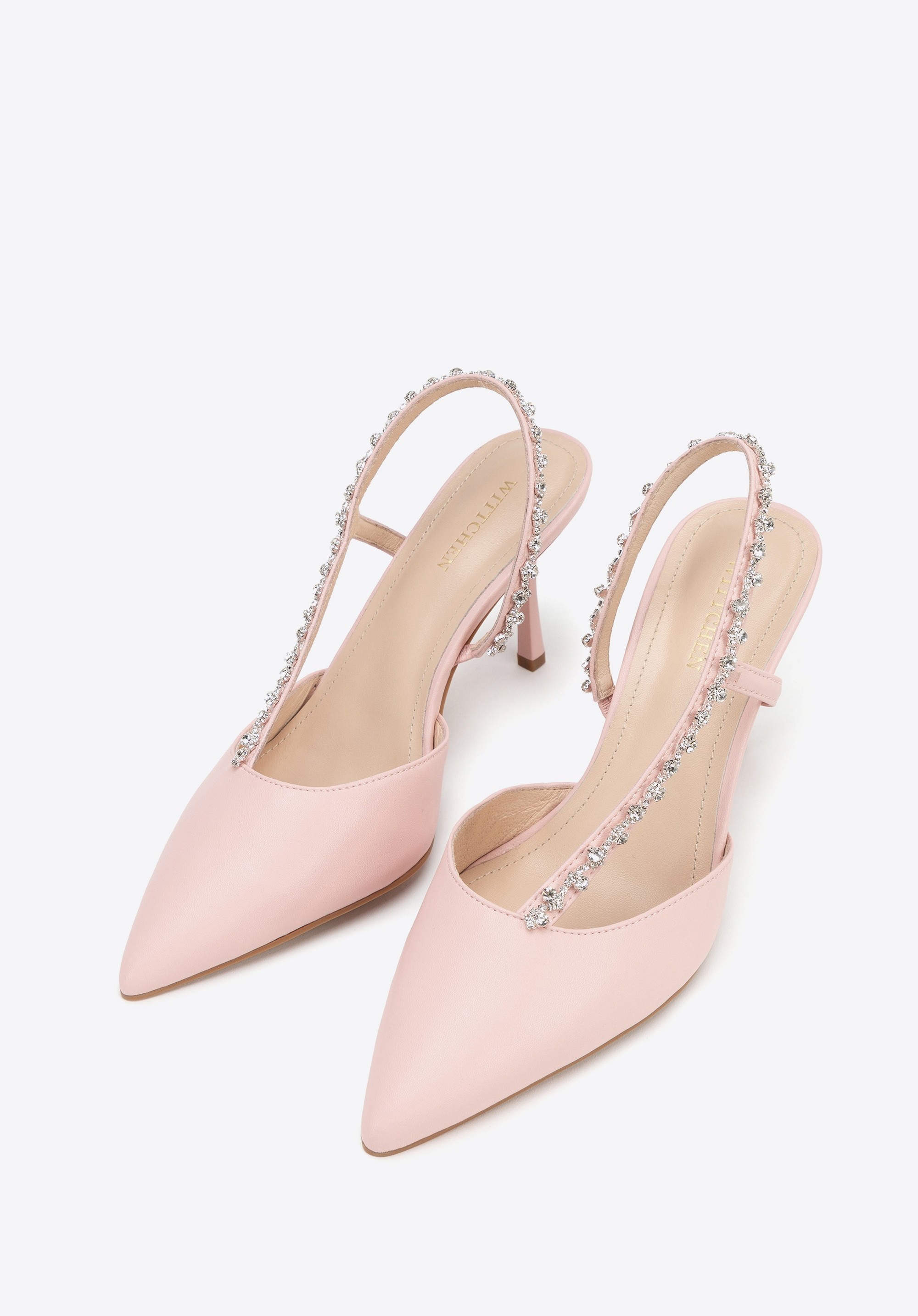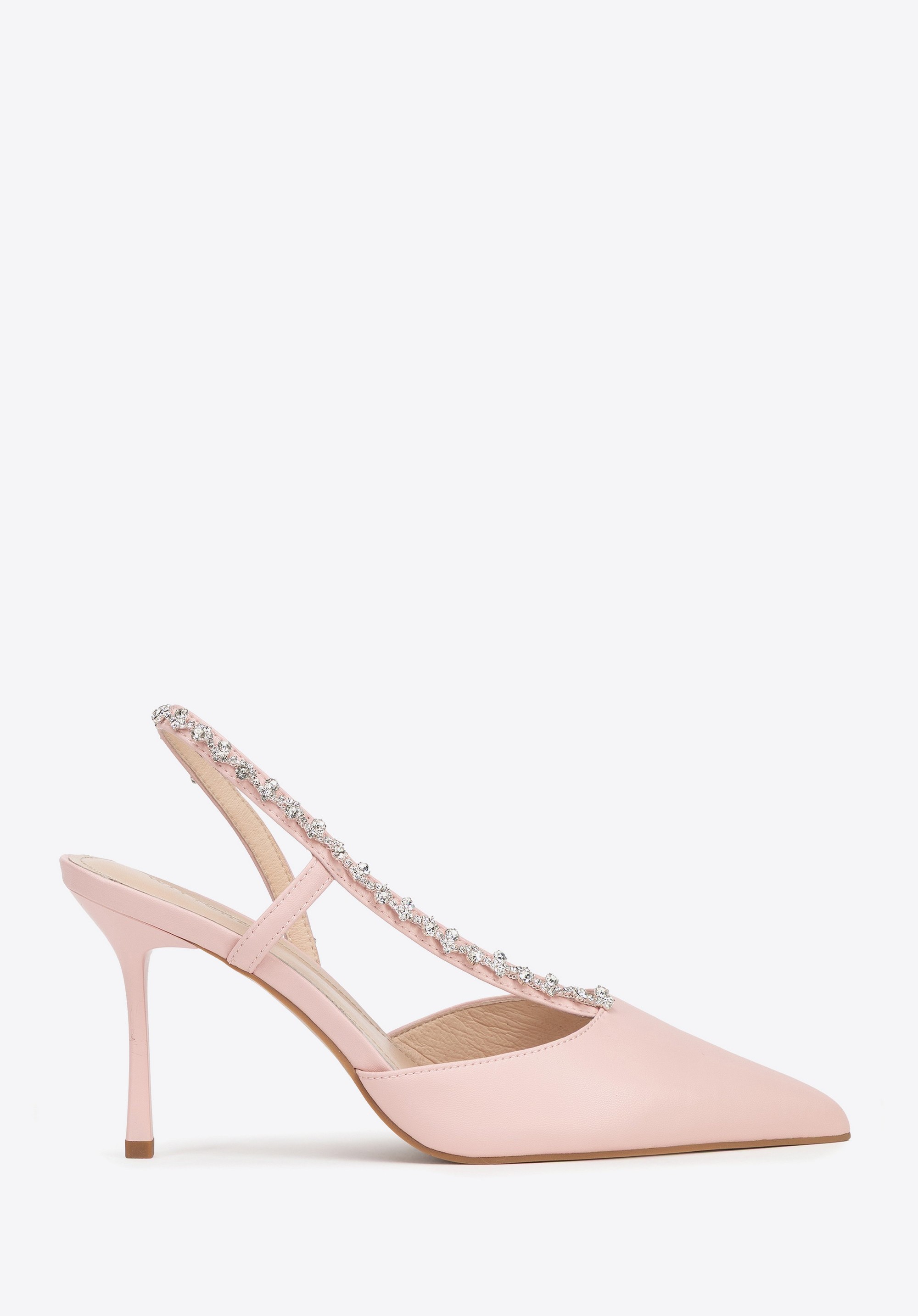 Вічна елегантність поєднується з повсякденним комфортом. Ці шкіряні туфлі повинні бути у кожної жінки, яка цінує вишуканий стиль. Виготовлені з преміальних матеріалів, вони пропонують не тільки вишуканий вигляд, але й комфорт протягом усього дня. Гострий носок і високий каблук на шпильці елегантно подовжують силует, а ремінець на щиколотці з декоративними коштовними каменями додає унікальний і привабливий вигляд.