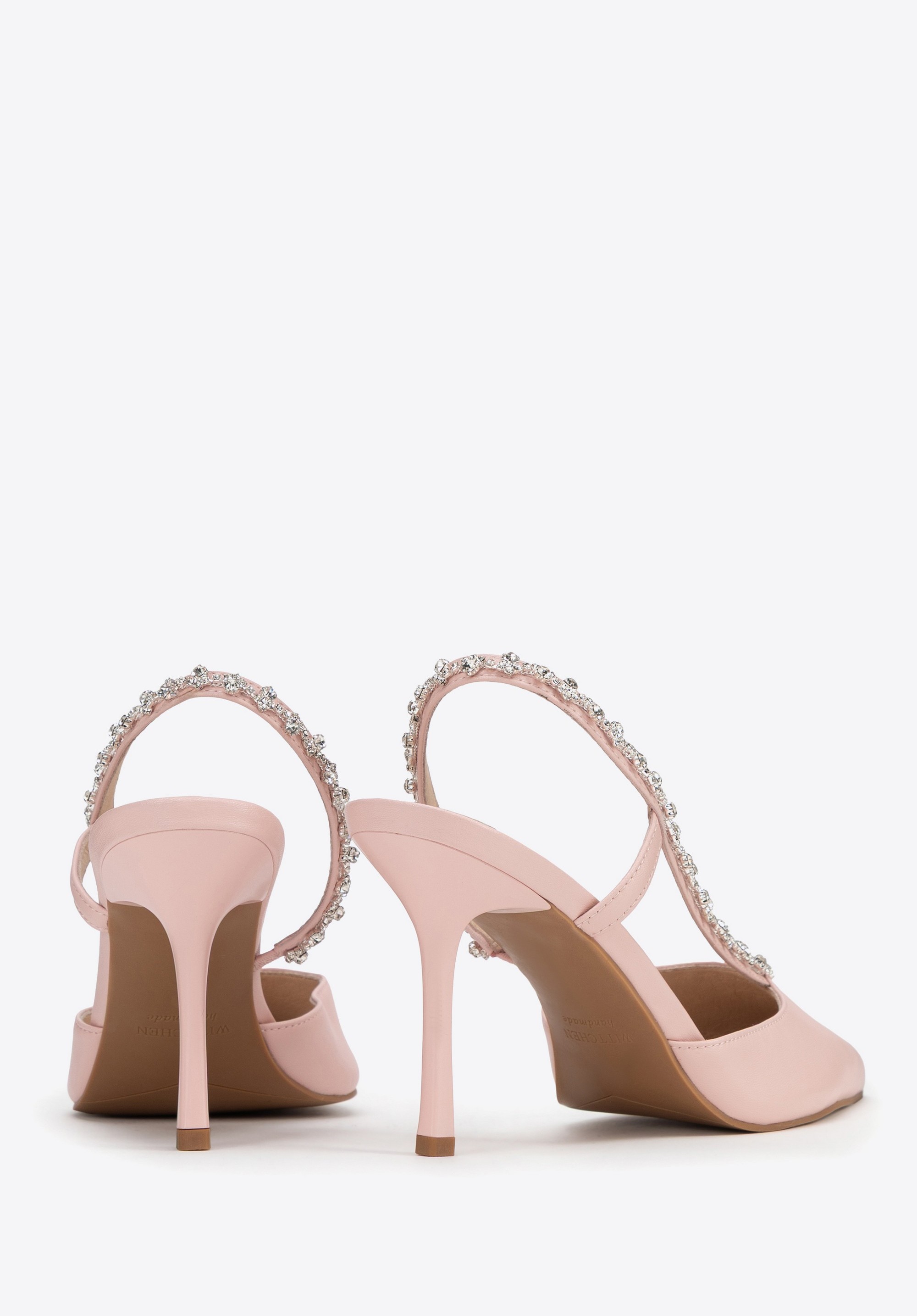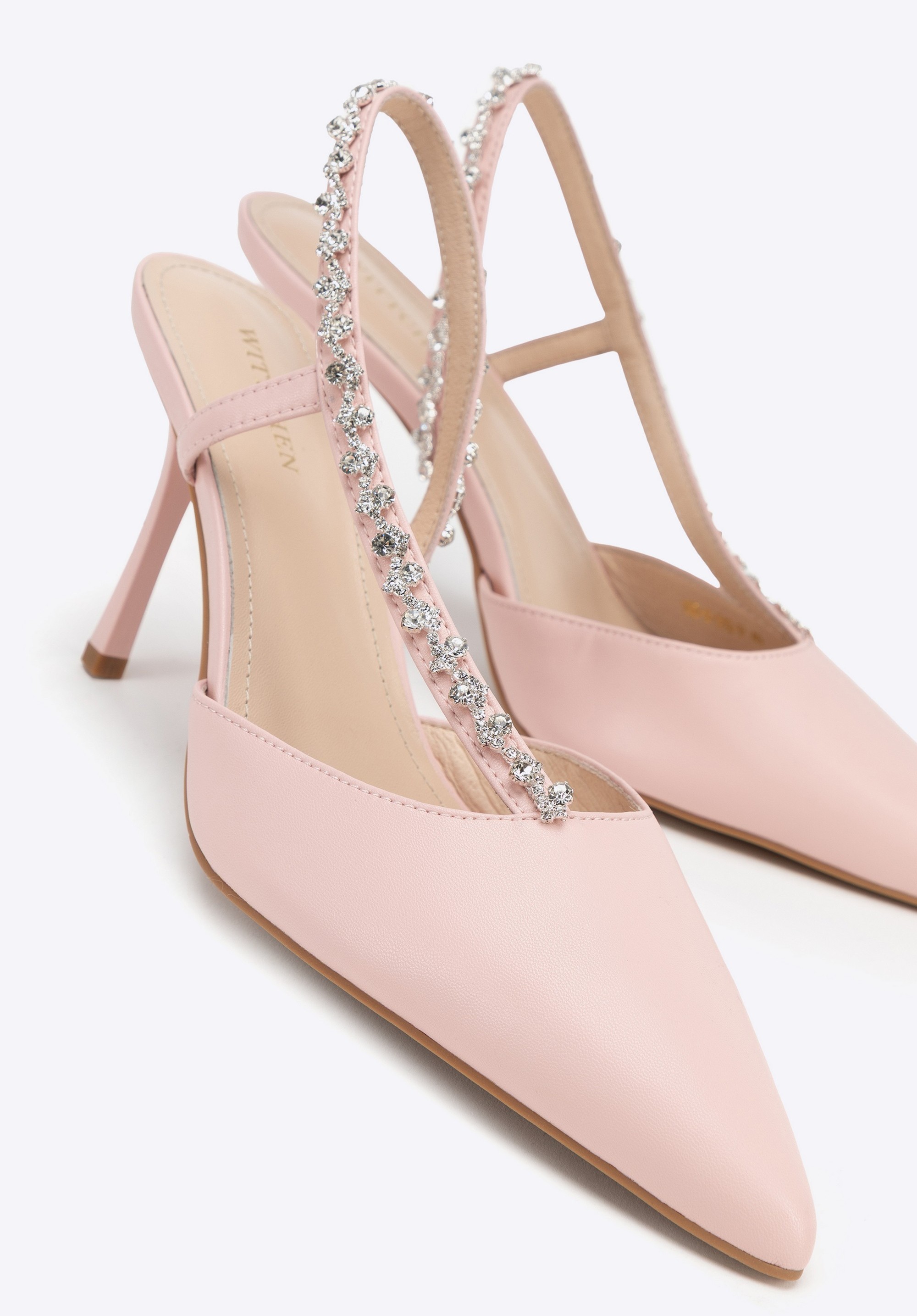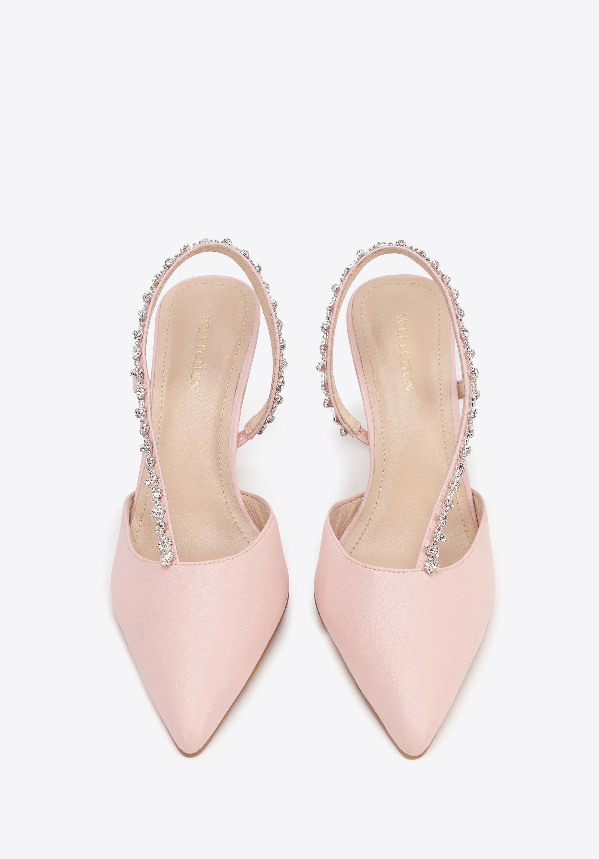 Вічна елегантність поєднується з повсякденним комфортом. Ці шкіряні туфлі повинні бути у кожної жінки, яка цінує вишуканий стиль. Виготовлені з преміальних матеріалів, вони пропонують не тільки вишуканий вигляд, але й комфорт протягом усього дня. Гострий носок і високий каблук на шпильці елегантно подовжують силует, а ремінець на щиколотці з декоративними коштовними каменями додає унікальний і привабливий вигляд.
